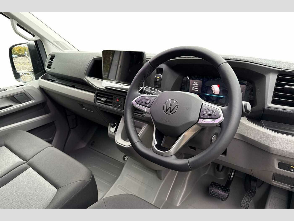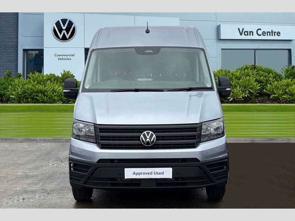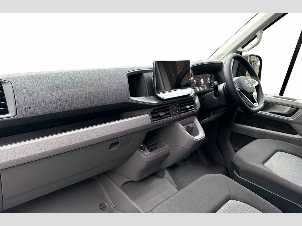 Heated windscreen, Metallic paint, Rear view camera, Front and rear parking sensors, Load floor - wooden cover, 16" black steel wheels, Electric windows, Heat insulating glass, Half painted front bumper, Special identification plate, Unpainted radiator grille, Auto low beam mode, Leaving home function and manual coming home function, Driver seatbelt warning light, Indicators in front door mirrors, ABS, Automatic post collision braking system, EBA, EBD, EDL, ESP, Front disc brakes, HBA, Hill start assist, Parking brake - hill hold control, Start and stop system with regenerative braking, TCS, Convex and wide angle mirror, Electrically heated and adjustable door mirrors, 3 point inertia reel belt on all seats, Automatic hazard light with emergency braking, Crosswind assist, Driver and front passenger airbag with front passenger airbag deactivation, Height adjustable seatbelts for outer cab seats, Bluetooth, E-call + We connect basic preparation, Voice control system, Composition media with 6.5" with we connect plus prep, 4 speaker, multifun display plus, USB, mob interface, app con, "We connect function", DAB Radio, Cab doors, Rear wing doors with 270 degree hinges, Driver alert system, Locking fuel cap, Digital clock, Instrument cluster, Lights on warning buzzer, Multi-function Display Plus, Rev counter, Service indicator, Speedometer, Air recirculation system, Charcoal filter, Climatic air conditioning, Electronically controlled heating system, Ashtray, Centre console storage tray, CFCU preparation, Document holder on centre console, Drinks holders, Electromechanical Servotronic steering, Grab handles on rear entry pillars, Height and reach adjustable steering wheel, Illuminated glove compartment with lockable lid, Jack and tool kit, Preparation for interface for external use with terminal block, Storage compartments in doors and in step, right, Storage tray on dashboard, Two 12V outlets in the cab (in the dashboard), Interior light, including 2 reading lights, Interior light, switchable by door, Without rear side trim panel passenger load compartment, Non-smokers pack - Crafter, Fully adjustable suspension type driver seat, Height adjustable head restraints, 1 rigid key, Anti-theft alarm with interior monitor, back up horn and tow away protect, overhead storage with two 1-DIN, reading light, SAFELOCK with 2 remote keys, Engine immobiliser, One towing eye in front, Hub cap covers