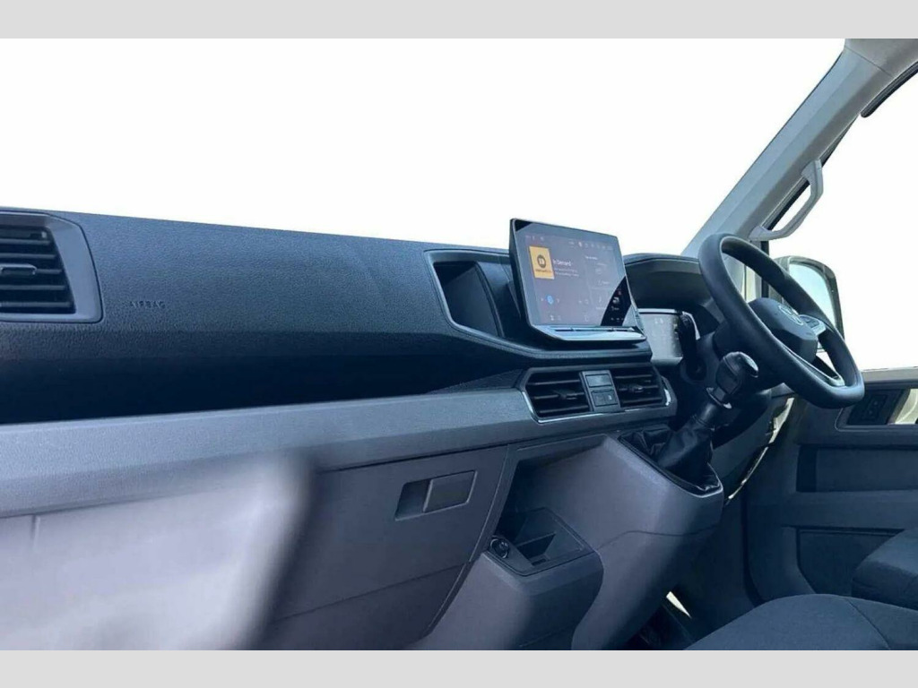 Candy White Solid Paint, Rear view camera, Comfort plus single driver's seat, Rear step in rear bumper full, Wing mirrors: electrically heated and adjustable, Anti-theft alarm system - with interior monitoring, backup horn and tow-away protection, Load floor cover - wooden, Electronic cruise control system, Speed limiter and predictive speed limiter, Wired & Wireless App-Connect, Composition colour radio, 10" touch colour display, Electric windows, Body colour roof, Integral step in front bumper, Driver seatbelt warning light, Indicators in front door mirrors, ABS, Automatic post collision braking system, EBA, EBD, EDL, ESP, HBA, Parking brake - hill hold control, TCS, Cruise control with speed limiter, Front assist including city emergency braking, 3 point inertia reel belt on all seats, Automatic hazard light with emergency braking, Crosswind assist, Height adjustable seatbelts for outer cab seats, Driver alert system, Locking fuel cap, Lights on warning buzzer, Rev counter, Service indicator, Air recirculation system, Charcoal filter, Ashtray, Centre console storage tray, CFCU preparation, Document holder on centre console, Drinks holders, Electromechanical Servotronic steering, Grab handles on rear entry pillars, Height and reach adjustable steering wheel, Illuminated glove compartment with lockable lid, Storage compartments in doors and in step, right, Storage tray on dashboard, Two 12V outlets in the cab (in the dashboard), Interior light, including 2 reading lights, Interior light, switchable by door, Without rear side trim panel passenger load compartment, Fully adjustable suspension type driver seat, Height adjustable head restraints, 1 rigid key, Engine immobiliser, Remote central/dead locking