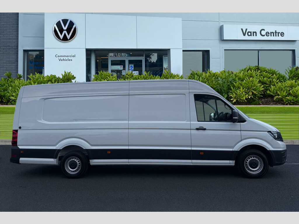 This Volkswagen Crafter CR35 Panel Van Commerce Plus LWB Maxi is finished in Candy White and is powered by a 140 PS 2.0-litre TDI diesel engine paired with an 8-speed automatic transmission, delivering smooth, dependable performance for demanding commercial use.