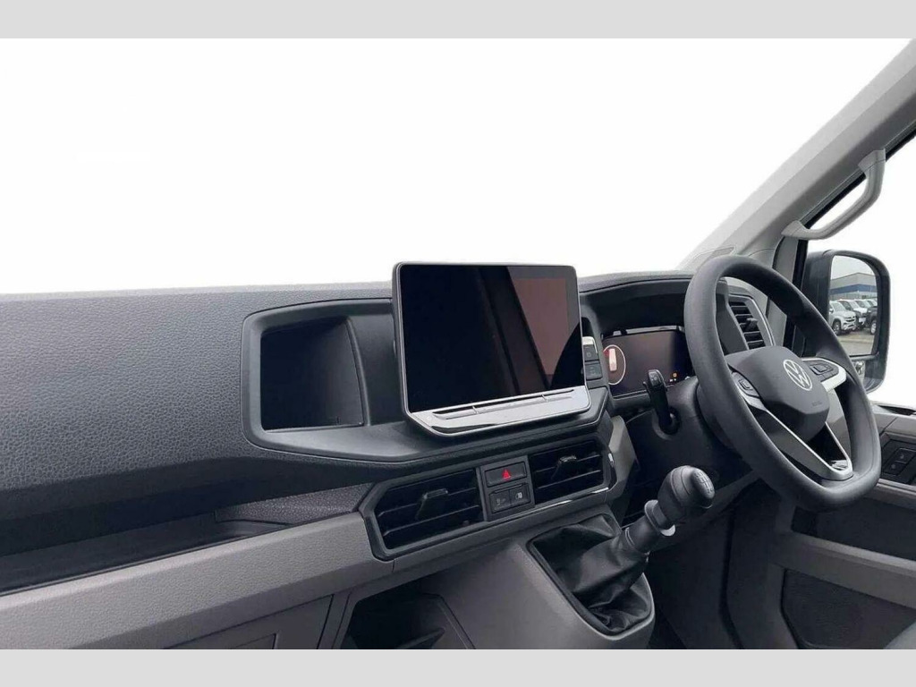 For entertainment and connectivity, the Crafter is equipped with a media system featuring DAB digital radio for crisp audio quality, along with a mobile phone interface and Volkswagen App Connect for seamless smartphone integration. Drivers can also view vehicle information, adjust climate settings, and operate the camera and parking sensor systems directly through the infotainment screen when manoeuvring.
