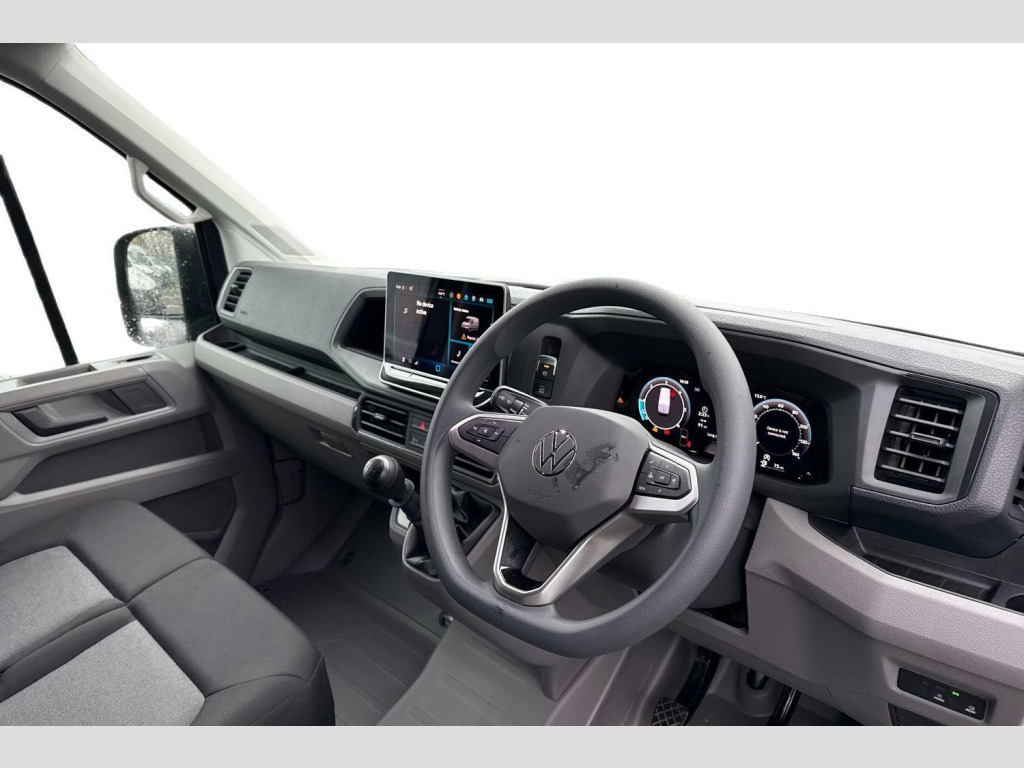 The Crafter Commerce trim level is designed for practicality and efficiency. Its impressive cargo volume of 14400 litres provides ample space for your business needs. Furthermore, its towing weight of 3000 kg demonstrates its capability for heavier loads. These highlights, combined with its Euro 6 emission standard, indicate a vehicle that is both powerful and considerate, making it a superior choice for demanding commercial use. Business Pack, 10.4in Infotainment System, 16in Steel Wheels, 2 Remote Folding Keys, 2x USB-C Ports in Dashboard and 1x USB-C Socket at Top of Windscreen, 4 Speakers, 75 Litre Fuel Tank, ABS - Anti-Lock Braking System, Advanced Driver Attention and Drowsiness Monitor, App-Connect, Automatic Hazard Lights Activation Under Emergency Braking, Basic Single Drivers Seat, Bumpers - Black Unpainted, CFCU Preparation, Central Locking System - Keyless-Go without SAFELOCK, Composition Colour with 6.5in Touch-screen including We Connect Plus Preparation, Crosswind Assist, DAB Digital Radio, Digital Cockpit, Driver and Front Passenger Airbag with Front Passenger Airbag Deactivation, Dual Passenger Seat in Cab with Storage Compartment and Folding Tray in Backrest, Dynamic Road Sign Display, EBA - Electronic Brake Assist, ESP - Electronic Stability Programme - Load Adjusting, Electric Windows - Front, Electromechanical Servotronic Steering, Electronic Handbrake Switch on Dashboard, Emergency Call Service - E-Call, Engine Immobiliser, Front Assist - Autonomous Emergency Braking with Pedestrian and Cycling Monitoring, Full Height Steel Bulkhead without Window, Full Size Steel Spare Wheel, Glove Compartment - Illuminated with Lockable Lid, Halogen Main Headlights with Range Control and Daytime Running Lights, Hill Start Assist, Lane Keeping Assist, Leather Wrapped Multifunction Steering Wheel, Load Lashing Rings, Manual Side Sliding Door - Passenger Side, Overhead Storage Compartment with Two 1-DIN Slot and Reading Light, Parking Brake - Hill Hold Control, Parking Sensors - Front and Rear, Rear Wing Doors Without Windows, Rubber Floor Covering, Seatbelt Warning Light For Driver, Side Marker Lights, Speed Limiter without Cruise Control System, Standard Suspension and Shock Absorbers, Steering Wheel - Reach and Rake Adjustable, Three Point Inertia Reel Seatbelts for all Seats, Tool Kit and Jack, Two 12V Outlets - Dashboard, Wing Mirrors - Manually Adjustable, Wireless Charging, Without Floor Covering in Load Compartment, Without Rear Side Trim Panel Passenger Load Compartment, e-Call and We Connect Basic Preparation