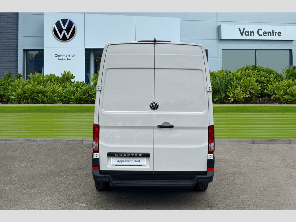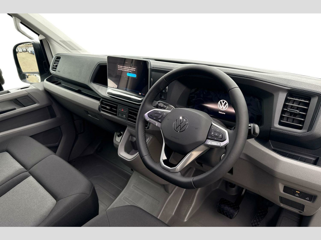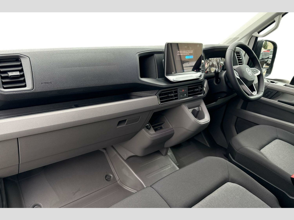 Heated windscreen washer nozzles, Half width rear step in rear bumper, Solid paint, Side marker lights, Anti-theft alarm with interior monitor, back up horn and tow away protect, overhead storage with two 1-DIN, reading light, SAFELOCK with 2 remote keys, 16" black steel wheels, Solid - Candy white, Electric windows, Heat insulating glass, Black unpainted plastic front bumper, Special identification plate, Unpainted radiator grille, Auto low beam mode, Leaving home function and manual coming home function, Driver seatbelt warning light, Indicators in front door mirrors, ABS, Automatic post collision braking system, EBA, EBD, EDL, ESP, Front disc brakes, HBA, Hill start assist, Parking brake - hill hold control, Start and stop system with regenerative braking, TCS, Convex and wide angle mirror, Manually adjustable door mirrors, 3 point inertia reel belt on all seats, Automatic hazard light with emergency braking, Crosswind assist, Driver and front passenger airbag with front passenger airbag deactivation, Height adjustable seatbelts for outer cab seats, Bluetooth, E-call + We connect basic preparation, Voice control system, Composition media with 6.5" with we connect plus prep, 4 speaker, multifun display plus, USB, mob interface, app con, "We connect function", DAB Radio, Cab doors, Driver alert system, Front and rear parking sensors, Lane keeping assist, Locking fuel cap, Digital clock, Instrument cluster, Lights on warning buzzer, Multi-function Display Plus, Rev counter, Service indicator, Speedometer, Air recirculation system, Charcoal filter, Electronically controlled heating system, Ashtray, Centre console storage tray, CFCU preparation, Document holder on centre console, Drinks holders, Electromechanical Servotronic steering, Height and reach adjustable steering wheel, Illuminated glove compartment with lockable lid, Jack and tool kit, Multifunction steering wheel, Preparation for interface for external use with terminal block, Storage compartments in doors and in step, right, Storage tray on dashboard, Two 12V outlets in the cab (in the dashboard), Interior light, including 2 reading lights, Interior light, switchable by door, Without rear side trim panel passenger load compartment, Non-smokers pack - Crafter, Fully adjustable suspension type driver seat, Height adjustable head restraints, 1 rigid key, Engine immobiliser, One towing eye in front, Hub cap covers