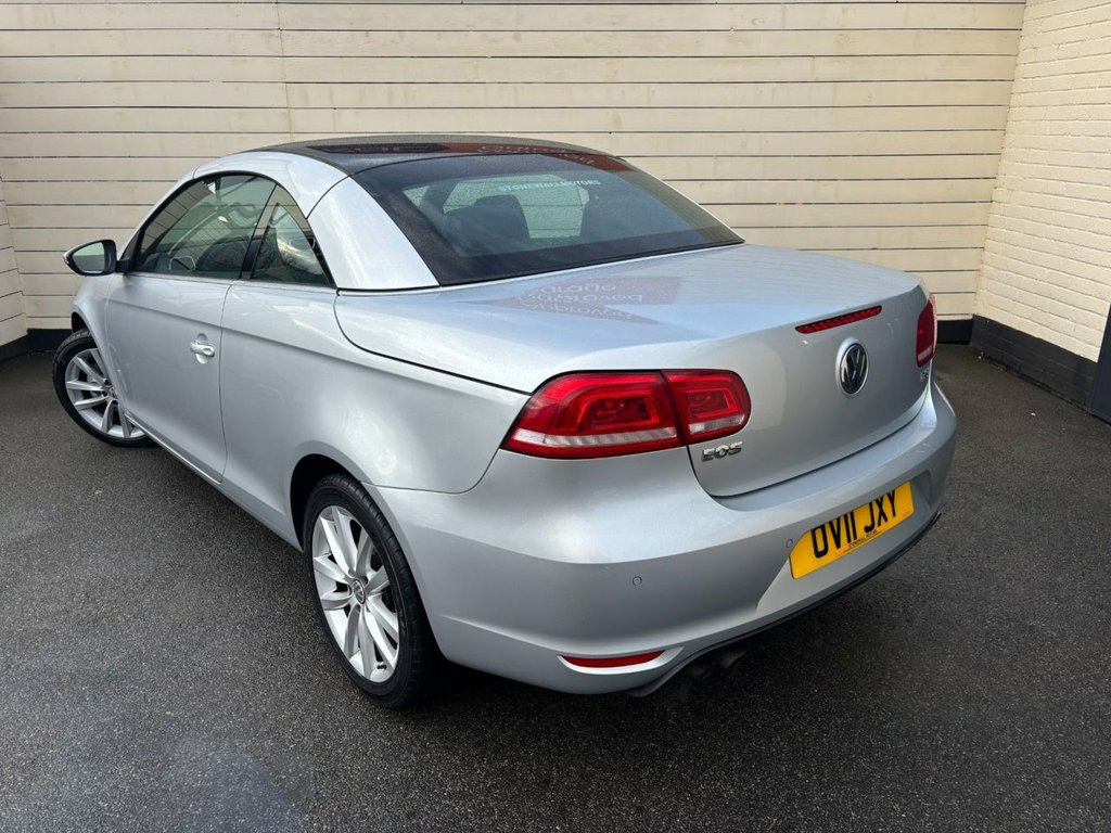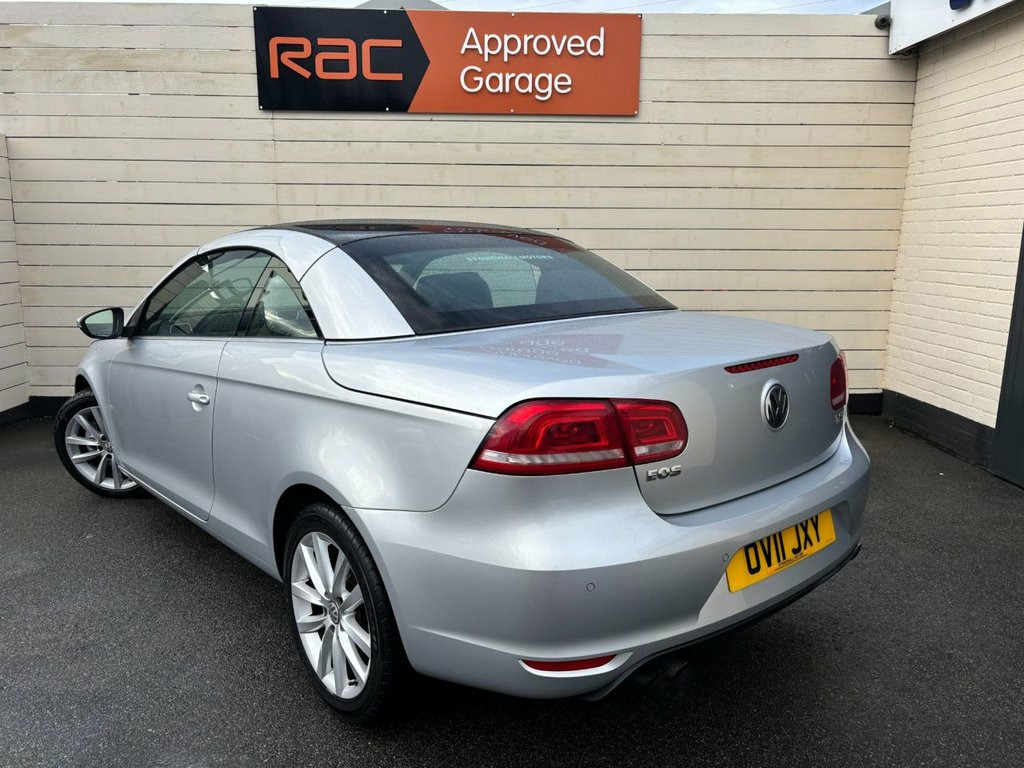 This 2011 Volkswagen Eos TSI SE presents a remarkable opportunity with its exceptionally low mileage of just 40,469 miles and Volkswagen Service History, a clear vehicle history check, and having had only three owners. This well maintained Eos features a 1.4 litre petrol engine and the SE trim level, offering a refined driving experience. Inside, you will find semi automatic air conditioning with climate control, ensuring comfort in all conditions. The standout feature of this Volkswagen Eos is its innovative CSC roof system, a five section folding roof that includes an electric slide and tilt sunroof, allowing you to enjoy open air motoring with ease. This model also benefits from front and rear parking sensors, including parking assistance, making manoeuvring simpler. With a fuel economy of 42 miles per gallon and low CO2 emissions, this Eos offers an economical and environmentally conscious choice compared to many other vehicles in its class. 2 Keys. Buy Online, Click and Collect or Delivered, RAC Approved Garage, HPI Checked and Mileage Verified, Cars go through a RAC Multi Point Health Check and come with a RAC Warranty, Including 12 months Roadside Assistance Cover, Finance available, For any further Information or wish to book a viewing please call on 01782 405251 Reflex Silver, 17in Alloy Wheels - Michigan, 17in Michigan Alloy Wheels, ABS - Anti-Lock Braking System, Active Rollover Protection System, Air Conditioning - Climatic Semi-Automat, Airbags - Curtain-Side Impact System for, Airbags - Driver, Airbags - Front Passenger, Airbags - Front Passenger with Deactivat, Alarm with Interior Protection, Armrest - Front Centre with Storage Comp, Automatic Boot Unlocking, Brake Pad Wear Indicator, CSC Roof System - 5 Section Folding Roof, Central Locking - Remote with 2 Remote K, Cup Holders - Front x2, Door Mirrors - Electrically Adjustable a, Door Side Impact Protection, Drivers Seat Height Adjustment, ESP includes EDL and ASR and Counterstee, Easy entry