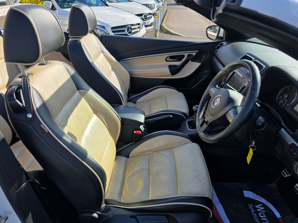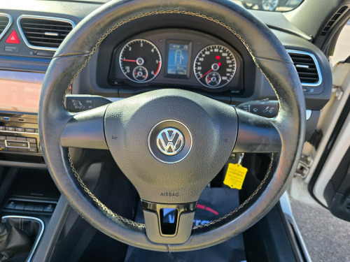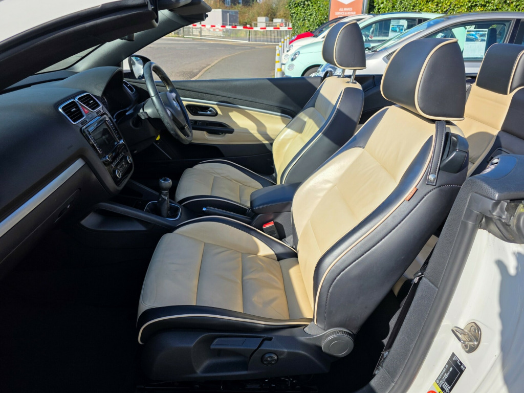 Very rare car and a great specification. Supplied with an award winning warranty and prepared to the highest standards. This 2011 Volkswagen Eos 2.0 TDI BlueMotion Tech Exclusive Cabriolet 2dr Diesel Manual Euro 5 (s/s) (140 ps) is a stunning convertible with a mileage of 96700 miles and a valid MOT until 21/03/2026. With a sleek design and 2 doors, this car seats 4 and runs on diesel, providing excellent fuel efficiency. It comes equipped with features such as 18in Alloy Wheels - Vicenza, CSC Roof System with a 5 Section Folding Roof including Slide and Tilt Sunroof, Electrically Adjustable and Heated Door Mirrors, and Electrically Folding Door Mirrors. The electric windows in the front further enhance the convenience of this stylish vehicle. Perfect for enjoying the open road in style and comfort. in alloy wheels - vicenza, csc roof system - 5 section folding roof including slide and tilt sunroof, door mirrors - electrically adjustable and heated, door mirrors - electrically folding, electric windows - front, electric windows - front and rear, heated windscreen, tyre repair kit, 2 zone electronic climate control with automatic air recirculation, air conditioning - climatic semi-automatic control, armrest - front centre with storage compartment, automatic boot unlocking, automatic dimming rear view mirror, carpet mats - front and rear, cup holders - front x2, drivers seat height adjustment, easy entry slide seats access to rear seats, head restraints - front whiplash optimised, heated front seats, height and reach adjustable steering wheel, luxury pack, multi device interface, multimedia socket for external audio source, rain sensor, seats - easy entry sliding front, seats - front lumbar support, seats - height adjustment - front passenger, steering wheel - leather trimmed & gear knob & handbrake grip, steering wheel - multifunction, abs - anti-lock braking system, active rollover protection system, airbags - curtain-side impact system for front and rear seats, airbags - driver, airbags - front passenger, airbags - front passenger with deactivation switch, alarm with interior protection, central locking - remote with 2 remote keys, door side impact protection, esp includes edl and asr and countersteer support with trailer stabilsation function, hba - hydraulic brake assist, hill hold assist, isofix child seat preparation, rigid safety cell with front and rear crumple zones, brake pad wear indicator, multifunction computer - highline, parking sensors - front and rear, power assisted steering - speed sensitive, suspension - sports - lowered by approx 15mm, front fog lights with cornering lights, headlights - dusk sensor - automatic driving lights, mdi - multi device interface, rcd 310 radio & mp3 single cd player with 8 speakers, rcd 310 radio - mp3 compatible cd player with 8 speakers and aux-in socket
