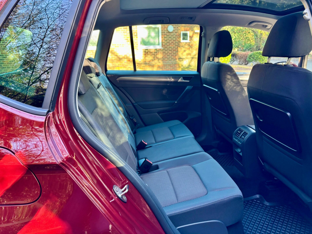 We are pleased to offer this stunning, one owner, Volkswagen Golf SV Match 1.5 EVO TSI 150PS DSG. It is finished in metallic Tornado red complemented with Titan black cloth upholstery. This vehicle is supplied with Volkswagen service history, MOT until 16/11/2026 and two keys. We offer a standard 6 month warranty which can be upgraded to a 24 month comprehensive warranty for only £495+VAT. Specification includes: Panoramic sliding roof, touch screen satellite navigation, heated seats, electric folding door mirrors, DAB radio, air conditioning, bluetooth phone preparation, 16'' woodstock alloy wheels, electric windows, rear view camera, car-net APP Connect, front and rear parking sensors, comfort seats, folding rear tables on back of front seats, rear bench seat, cruise control, 7 speed automatic transmission, alarm system, remote central door locking, park assist, front fog lamp and cornering lamp, multi function steering wheel, driver fatigue detection system, Eco stop/start system, LED daytime running lights, isofix, auto hold, rain sensor. HPI cleared. Euro 6 technology. ULEZ COMPLIANT. NO ADDITIONAL ADMIN FEES. Part exchange welcome. Please read our 5 star Autotrader reviews. WE OPERATE BY APPOINTMENT ONLY. For further information or to arrange an appointment please call us on 07884367167.