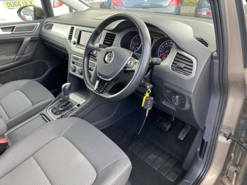 Volkswagen Golf SV 1.6 TDi SE DSG Automatic 5 door Estate in Metallic Gold, 66136 miles with a full service history including a cam belt change, Higher and roomier Golf with a large load area, Specification includes Air conditioning Alloy wheels Electric front and rear windows Cruise control Trip computer Front and rear parking sensors Electric heated mirrors Remote central locking with 2 keys DAB CD Radio with usb and auxiliary ports Bluetooth phone connection Automatic lights Rain sensing windscreen wipers and a long list of driver assistance and safety features , A very well looked after car inside and out, £7295