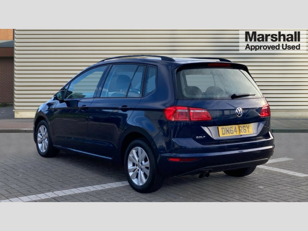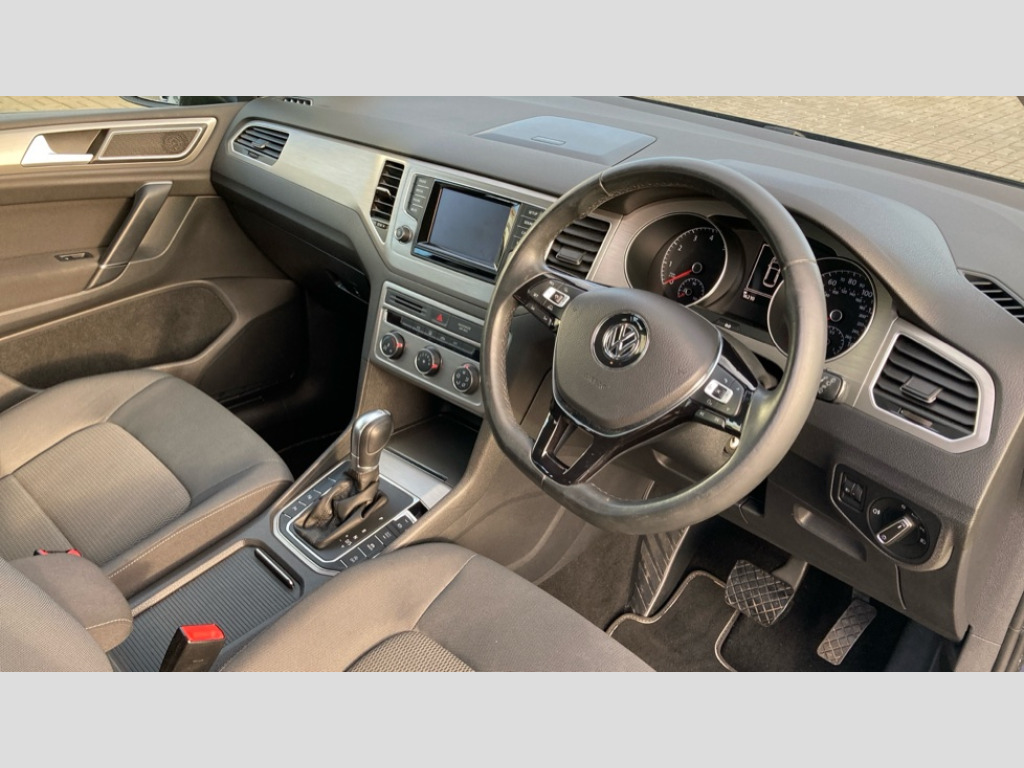Volkswagen Golf SV 1.4 TSI SE 5dr DSG 'Lights On' Reminder warning buzzer, Automatic Distance Control with Front Assist, Bluetooth Telephone preparation, Brake pad wear indicator warning light, Cruise control + speed limiter, Driver alert system, Driver profile selection, Exterior temperature gauge, Multifunction computer, PAS - speed related, Rev counter, TFT display screen, Trip and service interval display, Warning buzzer and light for front seatbelts unfastened, XDS electronic differential lock, 8 Speakers, CD/MP3/WMA, USB and SD card reader, aux-in, DAB Digital radio, MDI with USB/iPod connection cables, Auto dimming rear view mirror, Automatic coming/leaving home lighting function, Black front air intake and radiator grilles, Black roof rails, Body colour bumpers, Body colour door handles, Body colour door mirrors with integral indicators, Chrome louvres in grille, Daytime running lights, Dusk sensor + auto driving lights, Electric front windows, Electric rear windows, Electrically adjustable and heated door mirrors, Heated rear windscreen, Rain sensor, Range adjustable headlights, Rear diffuser, Rear roof spoiler, Rear windscreen washer and wiper with interval delay, Twin exhaust tailpipe, Windscreen wipers/ intermittent wipe + 4 position delay, 12v socket in front centre armrest storage compartment, 3 rear headrests, 3 spoke steering wheel, 40:20:40 split folding rear bench seat, Bag hook in luggage compartment, Boot lashing points, Courtesy light delay, Cover for storage compartment in centre, Driver and front passenger under seat drawer, Dust/pollen filter, Front centre armrest with storage box and rear air vents, Front reading lights, Front seat back storage pockets, Front seatback folding tables, Grab handles, Height/reach adjust steering wheel, Illuminated vanity mirrors, Isofix preparation for 2 rear child seats, Load through provision, Lockable, illuminated, cooled glovebox, Luggage compartment cover, Luggage compartment lighting, Multifunction leather steering wheel with leather gear knob/handbrake grip, Rear centre armrest with 2 cupholders, Rear reading lights, Storage compartment in roof console with cover, Storage compartments in doors, Variable boot floor, height adjustable and removable, White adjustable panel illumination, Convenience Pack - Golf S/Bluemotion, 3 point height adj front seatbelts + pretensioners, 3 rear 3 point seatbelts, ABS, Child locks on rear doors, Door open warning reflectors, Driver/Front Passenger airbags, Driver/Passenger whiplash optimised head restraints, Drivers knee airbag, Electronic parking brake with auto hold, Electronic tyre pressure monitoring, ESP with EDL + ASR, Front and rear curtain airbags, Front passenger airbag deactivation, Front side airbags, Fuel cut off safety device, Hydraulic Brake Assist (HBA), Pre crash system, Warning triangle and first aid kit holder, Alarm with interior protection, Electronic engine immobiliser, Remote central locking with 2 remote folding keys, Chrome-plated light switch surround, Steel space saver spare wheel