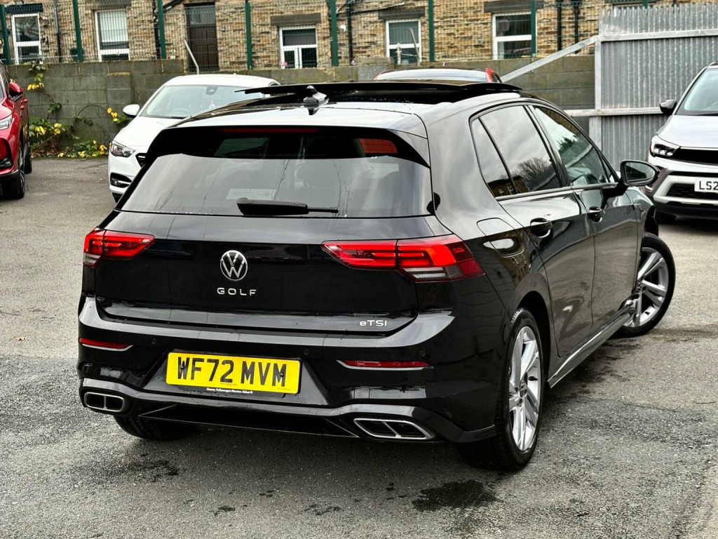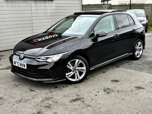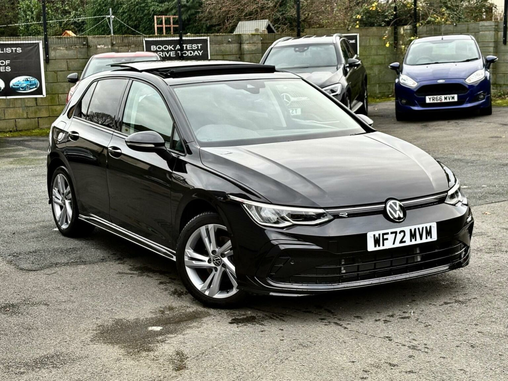 72 REG IN BLACK 20K MILES FSH 5DR HATCHBACK AUTO HYBRID FULL R LINE STYLE SAT NAV DAB RADIO LANE ASSIST ADAPTIVE CRUISE CONTROL PAN ROOF REVERSE CAMERA AMBIENT LIGHTS PRIVACY GLASS ALLOYS DRL LIGHTS MULTIFUNCTIONAL STEERING BUTTON START KEYLESS ENTRY LOOKS DRIVES GREAT CAT S REPAIRED WARRANTY AVAILABLE DELIVERY AVAILABLE , This 2022 Volkswagen Golf eTSI Life presents an exceptional ownership proposition, having been driven only 20,000 miles by a single owner. This Euro 6 compliant model features a 1.0 litre petrol hybrid engine, offering an efficient and modern driving experience. Its Life trim level comes equipped with a range of thoughtful features designed for convenience and safety. These include LED self levelling headlights with integrated daytime running lights, and a dusk sensor that automatically activates the headlights. For seamless connectivity, a premium USB C cable is provided, offering compatibility with both Apple CarPlay and Android Auto. The Golf eTSI Life also boasts practical amenities such as front and rear parking sensors to aid manoeuvrability, and a 1 zone electronic climate control system to ensure a comfortable cabin temperature. The generous boot space is a particular highlight, making this Golf an ideal choice for those who require ample storage for shopping, luggage, or equipment. These combined attributes, including its low mileage and single owner history, position this Volkswagen Golf as a superior option compared to other vehicles in its class.