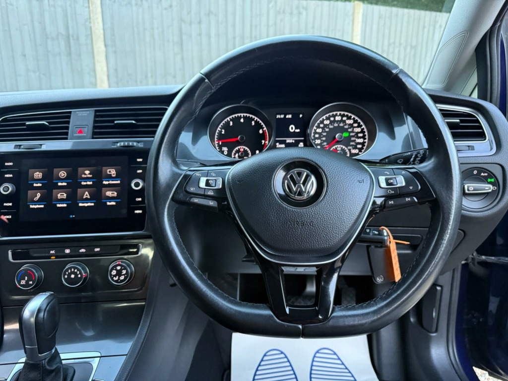 Over £1,600 below market!!! HPI Clear, free 6 months warranty, recent full service carried out & long MOT remaining. Free 30 miles delivery. 2 keys. ULEZ compliant. Just 2 owners from new. Genuine and warranted low mileage car! This amazing car is ready to drive away same day!!!We have for you here an excellent, a very high in demand and popular automatic VW Golf in immaculate condition both inside and out. This exceptionally reliable and well maintained car, drives and feels great. Packed with features and extras. This car is economical to run, insure and maintain, and it is a fantastic car at unbeatable price! Only 2 owners from new! Has 2 keys, service history with a brand new full service, long MOT and the car includes 6 months warranty with options to extend. Full HPI checked and PASSED. HPI certificate provided at NO EXTRA COST. A car that ticks all the boxes! Buy with confidence! Finance options available, contact us for more information.Contact number: 01344926227 Or 07459108076 p-connect, apple carplay, android auto, navigation system, multifunction colour display, front parking sensors, rear parking sensors, 12v socket - luggage compartment, 16in alloy wheels - linas, abs - anti-lock braking system with hba - hydraulic brake assist, adaptive cruise control, air conditioning - manual, airbags, alarm with interior protection, automatic coming-leaving home lighting function, automatic post-collision braking system, bag hooks in the luggage compartment x2, black front air intake and radiator grille with chrome trimmed inserts, body coloured bumpers, body coloured door handles, body-coloured door mirrors with integrated indicators, brake pad wear indicator, brushed dark silver decorative inserts in dash and door panels, car-net app connect, child security locks in the rear doors, chrome plated air vent surrounds, chrome-plated light switch surround, composition media system, convenience pack, cover for storage compartment in centre console, cup holders - front x2, discover navigation touch-screen navigation-radio system with car-net guide and inform, driver alert system, driver personalisation profile, drivers and passengers safety optimised head restraints, dusk sensor - automatic driving lights, dust and pollen filter, esc - electronic stability control including edl - electronic differential lock and asr - traction control with deactivation via infotainment system, electric windows - front and rear, electronic engine immobiliser, electronic parking brake with auto hold function, front assist, front centre armrest with storage compartment and two rear air vents, front comfort seats with height and lumbar adjustment, front seat back storage pockets, galvanised body, glovebox - cooled, grab handles - front x2 rear x2 with coat hooks, halogen clear headlights - range adjustable - led daytime running lights, heated rear windscreen, height-adjustable front three-point seat belts with tensioners, high level 3rd brake light incorporating led technology, isofix child seat preparation for 2 rear seats, instrument lighting - white adjustable panel illumination, interior light delay, lights on warning buzzer, load lashing points x4 in luggage compartment, load-through provision, luggage compartment cover - stowable, luggage compartment light, luggage compartment storage area on left and right, lumbar support for drivers and front passenger seat, mirror pack, multifunction computer, parking sensors - front and rear, polar night black decorative inserts in centre console, power assisted steering - speed-sensitive - electro-mechanical steering rack, pre-crash preventive occupant protection, predictive pedestrian protection, premium usb cable, rain sensor and automatic dimming rear-view mirror, reading lights - front x2 and rear x2, rear centre armrest - folding with cup holders x2, rear diffuser - black, rear lights incorporating led technology, rear number plate lights incorporating led technology, rear screen wash-wipe with intermittent wipe, rear window aerial, reflectors in doors, remote central locking with 2 remote folding keys, remote electrically foldable door mirrors - door mirror puddle lights and reverse activated kerb-view adjustment on passengers door mirrors, speedo and rev counter - electronic odometer - trip - service interval display - exterior temperature gauge and fuel gauge, split folding rear backrests 60-40, steel space saver spare wheel, steering column - height and reach adjustable, steering wheel - multifunction - leather trimmed, storage compartment in centre console, storage compartment in front doors, storage compartment in rear doors, storage compartment in roof console with cover, tailgate with integrated rear roof spoiler, three rear 3-point seat belts, three rear head restraints, tyre pressure loss indicator, vanity mirrors - illuminated, variable boot floor - height adjustable and removable, warning buzzer and light for front seat belts if unfastened, windscreen wiper with intermittent wipe and 4 position delay, xds electronic differential lock for improved traction and handling