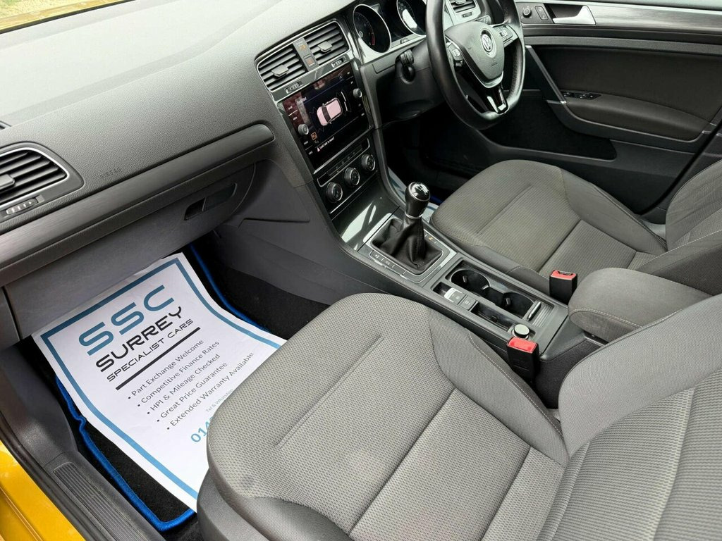 Surrey Specialist Cars are proud to present our lovely Volkswagen Golf 1.4 Golf SE Nav TSI BlueMotion Technology 5dr - a stylish and efficient hatchback that is sure to turn heads on the road. With only 56,436 miles on the clock, this well-maintained vehicle is ready to take you on your next adventure. The car has a Long MOT until October 2026 so it is ready to go. Finished in a vibrant Yellow, this Volkswagen Golf not only looks great but also offers impressive fuel efficiency thanks to its BlueMotion Technology. Whether you're navigating city streets or cruising on the motorway, this car is designed to deliver a smooth and enjoyable driving experience. Equipped with a range of features including a navigation system, the Golf SE Nav TSI ensures that you stay connected and informed on the go. With its spacious interior and comfortable seating, this hatchback is perfect for both daily commutes and weekend getaways. Don't miss out on the opportunity to own this fantastic Volkswagen Golf. Visit our showroom today and experience the quality and performance that this car has to offer. Drive away in style with the Volkswagen Golf 1.4 Golf SE Nav TSI BlueMotion Technology 5dr. 12V Socket - Luggage Compartment, 16in Alloy Wheels - Linas, ABS - Anti-Lock Braking System with HBA , Adaptive Cruise Control, Air Conditioning - Manual, Airbags, Alarm, Auto-Fold Down Lever in Rear Seat Backre, Automatic Coming-Leaving Home Lighting F, Automatic Post-Collision Braking System, Bag Hooks in the Luggage Compartment, Black Front Air Intake and Radiator Gril, Body Coloured Bumpers, Body Coloured Door Handles, Body-Coloured Roof Spoiler - Rear, Brake Pad Wear Indicator, Car-Net App Connect, Centre Console - Polar Night Black, Child Security Locks in the Rear Doors, Chrome Plated Air Vent Surrounds, Chrome-Plated Light Switch Surround, Convenience Pack, Cover for Storage Compartm