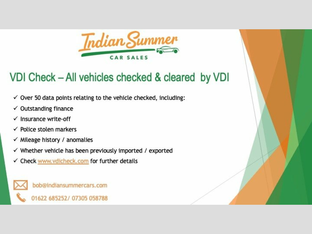 Presented in Reflex Silver with Shetland cloth interior. Only 2 previous owners. MOT passed in June 2025 with no advisories or defects identified. Last Serviced in June 2025, including spark plug change. Low mileage - excellent condition throughout and drives superbly. High level of specification, including adaptive cruise control, front and rear parking sensors and drive mode selection (eco/normal/sport etc) , Only £35 road tax per year, Keys - 2. , Finance available though dealership, including the option to settle finance on your current vehicle. Free 6 Months Warranty, with the option to extend. Nationwide delivery available. Part exchange welcome. , ----------ABOUT US----------We are a quality used car dealership regulated by the Financial Conduct Authority (FCA). Based in the heart of Kent, we have good transport links via the M2 & M20 Motorways and walking distance from mainline train stations. We pride ourselves on the quality of service offered to our customers - Search for Indian Summer Car Sales on Google to see what our customers have been saying about us! Should you have any questions or wish to book a test drive, feel free to contact us on 01622 685 252 or 07305 058 788 - Our lines are open 7 days a week between 7am-7pm. Viewing by appointment only. , ----------FINANCE AND PAYMENT METHODS----------Not sure that you are eligible for car finance? We have a dedicated team of finance experts waiting to help with your enquiry. We have relationships with a number of specialist motoring finance houses, that is why we have helped many of our customers secure the best finance deal for their budget. Our expertise with finance means that even regardless of whether you have either a poor or good credit rating, we can help arrange finance for you. We also accept partial or full payment by Debit or Credit Cards. , ----------WARRANTIES----------Unlike most dealerships, who supply cover through an anonymous third party, the complimentary six month warranty that we offer to customers is our own comprehensive In-house warranty. We can also extend warranties beyond six months for a competitive fee. Please visit our website for full terms and conditions. www.indiansummercars.com