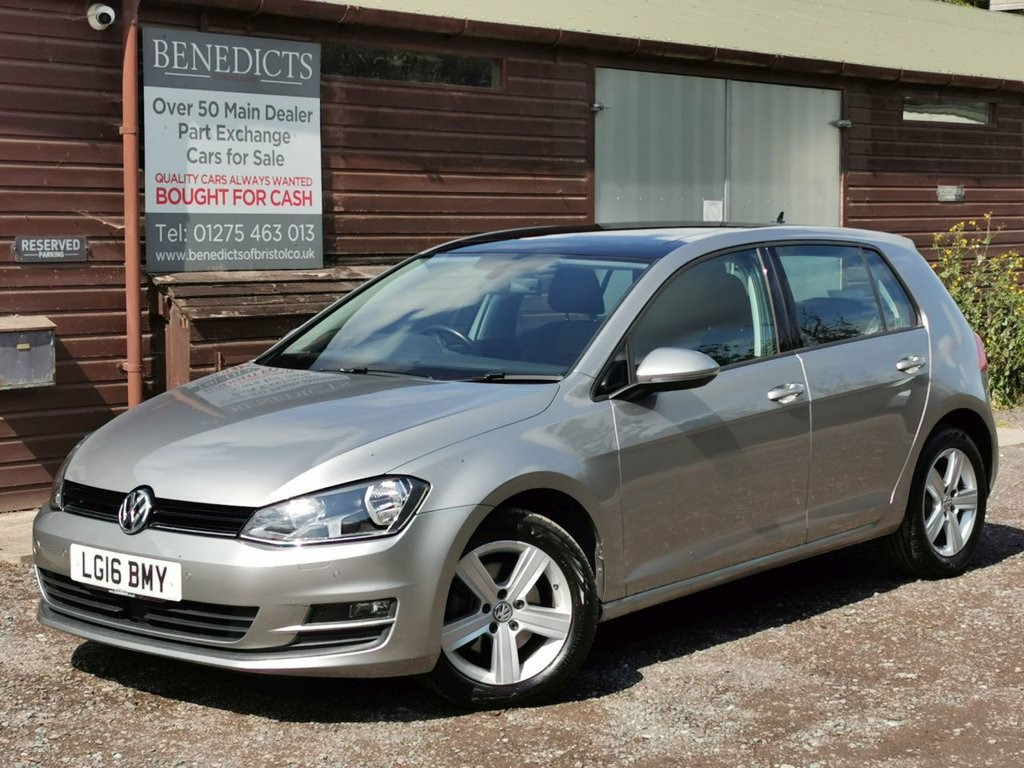 Presented in sophisticated Tungsten Silver Metallic, this superb 2016 Volkswagen Golf Match 1.4 Petrol Automatic is a truly outstanding opportunity. It boasts an incredibly low mileage of just 20,500 miles and has been clearly been cherished throughout its life. This Golf comes with the reassurance of 8 recorded services, all carried out exclusively by a Volkswagen Main Dealership. The most recent service was completed in February 2025 at 20,050 miles, ensuring it's in excellent mechanical order. It also benefits from a lengthy MOT valid until May 2026, providing peace of mind. Importantly, it's fully ULEZ and CAZ compliant, and the annual road tax is a very affordable £35. Being the sought-after Match specification means you enjoy a premium driving experience packed with features. This includes Alloy Wheels, Front & Rear Parking Sensors, a Multi-Function Steering Wheel, a Touchscreen Infotainment System with DAB Radio, Bluetooth Connectivity, and Satellite Navigation. You also get Air Conditioning, Heated Seats, Cruise Control, and Automatic Headlights, plus much more for comfort and convenience. However the WOW factor of this car is that it has the incredibly rare factory option of the a Panoramic Sunroof! We make acquiring this fantastic Golf easy and affordable. We can offer competitive finance packages with rates starting from 9.9% APR. For added protection, we provide comprehensive RAC Extended Warranties: choose a 12-month policy for just £ 12V Socket, 12V Socket - Luggage Compartment, 16in Alloy Wheels - Dover, ABS - Anti-Lock Braking System, Air Conditioning - Manual, Air Vent Surrounds - Chrome Effect, Airbags - Curtain Front, Airbags - Curtain Rear, Airbags - Driver, Airbags - Drivers Knee, Airbags - Front Passenger, Airbags - Front Passenger with Deactivat, Airbags - Front Seat Side Impact, Alarm with Interior Protection, Anti-Theft Wheel Bolts, Armrest - Front Centre with Storage Comp, ASR - Anti Slip Regulation, Automatic Dimming Rear View Mirror, Automatic Post-Collision Braking System, Black Front Air Intake and Radiator Gril, Bluetooth Audio Connection, Bluetooth Telephone Preparation, Body Coloured Bumpers, Body Colo