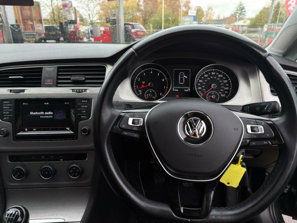 Discover this 2014 Volkswagen Golf TSI Match, boasting exceptionally low mileage for its age at just 49,000 miles. This well maintained petrol model features a 1.4 litre engine and comes equipped with manual air conditioning for your comfort. Driving is made easier with automatic dusk sensing headlights and both front and rear parking sensors to assist you. Stay connected on the go with Bluetooth telephone preparation, all integrated into the practical Match trim.This Volkswagen Golf offers several advantages over similar vehicles. Its 0-62mph acceleration in just 9.3 seconds provides a responsive driving experience. You'll also appreciate the generous boot space, making it ideal for shopping trips or holidays. Furthermore, this Golf sits in a low insurance group, which can help to keep your running costs down, making it a sensible choice for many drivers.. 12V Socket, 12V Socket - Luggage Compartment, 16in Alloy Wheels - Dover, ABS - Anti-Lock Braking System, ASR - Anti Slip Regulation, Air Conditioning - Manual, Air Vent Surrounds - Chrome Effect, Airbags - Curtain Front and Rear, Airbags - Driver, Airbags - Drivers Knee, Airbags - Front Passenger, Airbags - Front Passenger with Deactivation Switch, Airbags - Front Seat Side Impact, Alarm with Interior Protection, Armrest - Front Centre with Ventilation Nozzles x2, Automatic Dimming Rear View Mirror, Automatic Post-Collision Braking System, Aux-In Socket, Black Front Air Intake and Radiator Grille with Chrome Trimmed Inserts, Bluetooth Telephone Preparation, Body Coloured Bumpers and Door Handles, Body-Coloured Door Mirrors with Integrated Indicators, Brake Pad Wear Indicator, Central Locking - Remote with 2 Remote Keys, Child Locks in Rear Doors, Composition Media System, Convenience Pack, Cruise Control, Cup Holders - Front x2, Cup Holders - Rear x2, DAB - Digital Radio Reception, Daytime Running Lights, Decor - Brushed Stainless Steel, Differential Lock - Electronic, Door Mirrors - Electrically Adjustable-Heated and Folding, Door Mirrors - Puddle Lights, Door Mirrors - Reverse Activated Kerb View Adjustment on Passengers, Driver Alert System, Driver Profile Choices, Dust and Pollen Filter, ESP - Electronic Stability Programme, Electric Windows - Front and Rear, Electronic Engine Immobiliser, Electronic Parking Brake with Auto Hold Function, Exhaust Tailpipes - Twin, First-Aid Kit and Warning Triangle - Holder Only, Front Assist including City Emergency Braking, Front Fog Lights with Cornering Lights, Front Seat Back Storage Pockets, Gear Shift Indicator, Glovebox - Illuminated - Cooled - Lockable, Grab Handles - Front x2 Rear x2 with Coat Hooks, HBA - Hydraulic Brake Assist, Head Restraints - Front Whiplash Optimised, Headlights - Coming-Leaving Home Function, Headlights - Dusk Sensor - Automatic Driving Lights, Headlights - Halogen Clear - Range Adjustable, Height and Reach Adjustable Steering Column, High Level 3rd Brake Light - LED, ISOFIX Child Seat Preparation for 2 Rear Seats, Instrument Lighting - White Adjustable Panel Illumination, Interior Lighting Delay, Leather Trimmed Three-Spoke Steering Wheel and Gear Knob, Lighting Dial - Chrome Look, Lights on Warning Buzzer, Load Lashing Points x4 in Luggage Compartment, Load-Through Provision, Luggage Compartment - Hooks, Luggage Compartment Cover, Luggage Compartment Light, Luggage Compartment Storage Area on Right, MDI - Multi Device Interface with USB - iPod Connection Cables, Mirror Pack, Multifunction Computer - 3.5in Display, Multiple Impact Brake Activation, Parking Sensors - Front, Parking Sensors - Rear, Power Assisted Steering - Speed Sensitive, Pre-Crash Preventive Occupant Protection, Radar Sensor Controlled Distance Monitoring System, Radiator Grille - Black with Chrome Louvres, Radio & Single CD Player MP3 Compatible, Radio Aerial Integrated into Rear Windscreen, Rain Sensor, Reading Lights - Front x2 and Rear x2, Rear Centre Armrest, Rear Diffuser - Black, SD Card Reader, Safeguard Against Incorrect Fuel, Seatbelt Reminder, Seats - Front Comfort, Seats - Front Lumbar Support, Seats - Height Adjustment - Front, Seats - Rear Backrest with Automatic Folding, Spare Wheel - Space Saver Steel, Speakers x8, Split Folding Rear Backrests 60-40, Spoiler - Tailgate, Steering Wheel - Audio Controls, Storage - Cover for Area in Roof Console, Storage Compartment in Centre Console Covered, Storage Compartment in Front Doors, Storage Compartment in Rear Doors, Storage Compartment in Roof Console, Sun Visors - Vanity Mirrors and Illuminated, Temperature Display - External, Three Rear Head Restraints, Tyre Pressure Indicator, Under Seat Drawers - Front Passenger, Variable Boot Floor, Windscreen Wipers with Intermittent Wipe and 4 Position Delay, XDS Electronic Differential Lock.