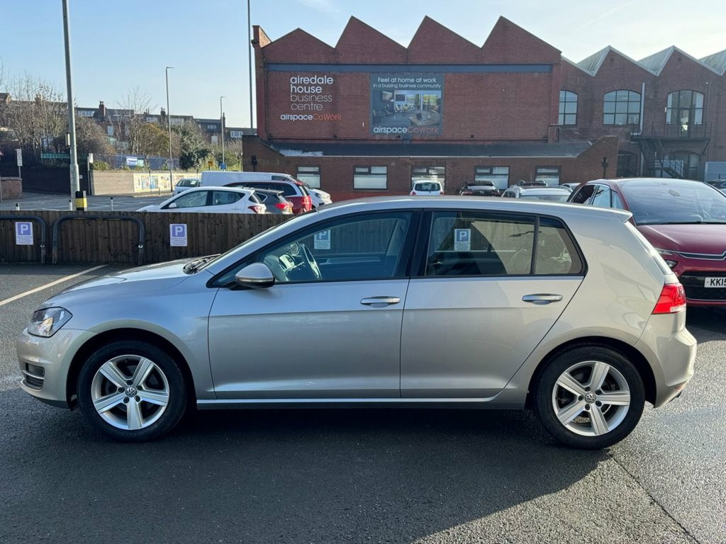 ONLY 2 OWNERS FROM NEW !! Last owner (Christine) for 10 years. GENUINE 34,793 MILES with a FULL SERVICE HISTORY - 10 services to 32,000 miles and cambelt changed at 23,000 miles. Finished in Reflex silver paintwork with 16" silver alloy wheels. Over 55 miles per gallon combined fuel economy and only £35 year road tax. Spec includes adaptive cruise control, Bluetooth, DAB radio, hill-hold, Multi-function steering, front/rear parking sensors, trip computer, auto headlights, air con and much more. We have 7 VW Golf in stock ! Please call 0113 2636003 or visit leedsmotorcompany.co.uk. Reflex Silver, 12V Socket, 12V Socket - Luggage Compartment, 16in Alloy Wheels - Dover, ABS - Anti-Lock Braking System, ASR - Anti Slip Regulation, Air Conditioning - Manual, Air Vent Surrounds - Chrome Effect, Airbags - Curtain Front and Rear, Airbags - Driver, Airbags - Drivers Knee, Airbags - Front Passenger, Airbags - Front Passenger with Deactivat, Airbags - Front Seat Side Impact, Alarm with Interior Protection, Armrest - Front Centre with Ventilation , Automatic Dimming Rear View Mirror, Automatic Post-Collision Braking System, Aux-In Socket, Black Front Air Intake and Radiator Gril, Bluetooth Telephone Preparation, Body Coloured Bumpers and Door Handles, Body-Coloured Door Mirrors wi