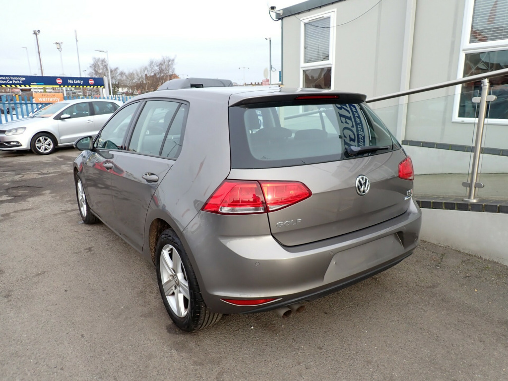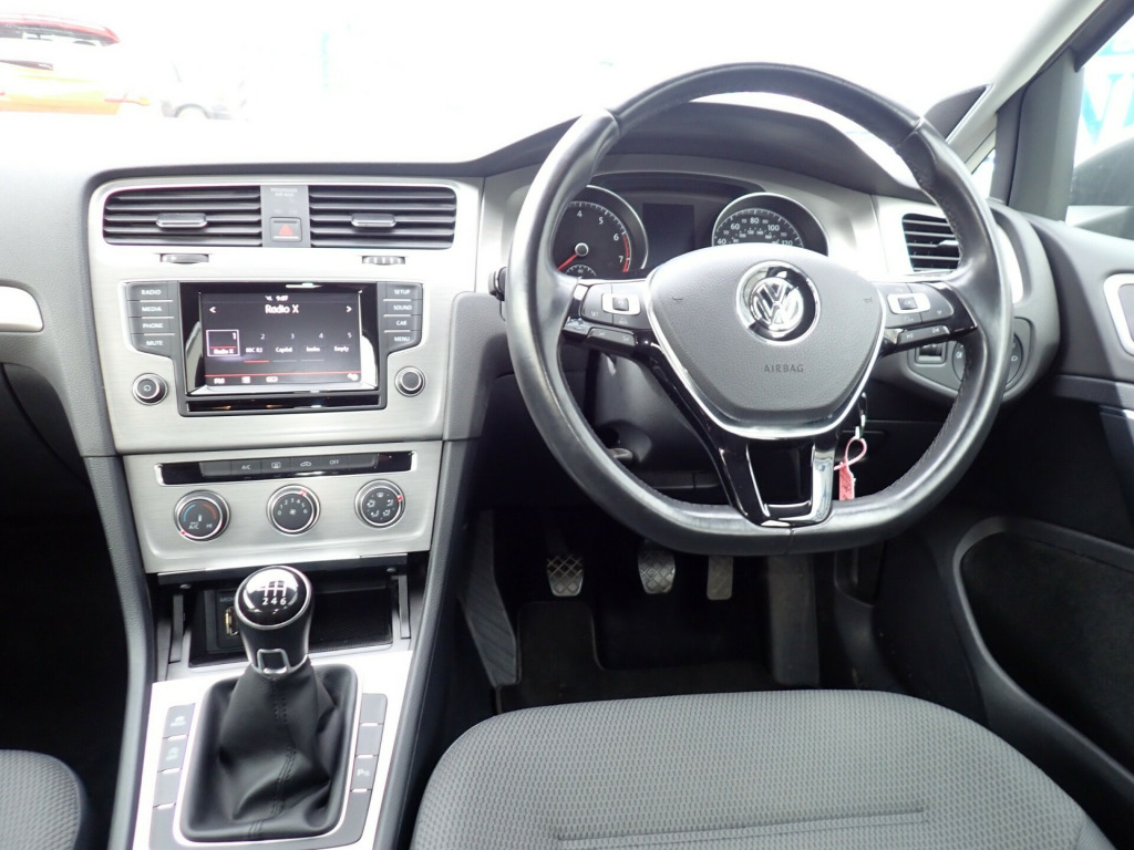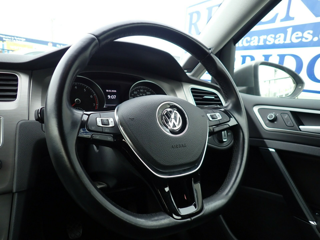 Full Volkswagen service history (11 main dealer stamps), a very well maintained low mileage Golf, well cared for by 1 private owner from brand new, a desirable specification with factory fitted extras to include: Metallic Limestone Grey paintwork, Reversing camera, Dynaudio sound system, spare wheel and carpet mats. v socket, 12v socket - luggage compartment, aux-in socket, bluetooth telephone preparation, composition media system, dab - digital radio reception, mdi - multi device interface with usb - ipod connection cables, radio & single cd player mp3 compatible, radio aerial integrated into rear windscreen, sd card reader, speakers x8, 16in alloy wheels - dover, black front air intake and radiator grille with chrome trimmed inserts, body coloured bumpers and door handles, body-coloured door mirrors with integrated indicators, door mirrors - electrically adjustable-heated and folding, door mirrors - reverse activated kerb view adjustment on passengers, electric windows - front and rear, exhaust tailpipes - twin, mirror pack, radiator grille - black with chrome louvres, rear diffuser - black, spare wheel - space saver steel, spoiler - tailgate, abs - anti-lock braking system, asr - anti slip regulation, airbags - curtain front and rear, airbags - driver, airbags - drivers knee, airbags - front passenger, airbags - front passenger with deactivation switch, airbags - front seat side impact, alarm with interior protection, automatic post-collision braking system, central locking - remote with 2 remote keys, child locks in rear doors, differential lock - electronic, esp - electronic stability programme, electronic engine immobiliser, electronic parking brake with auto hold function, front assist including city emergency braking, hba - hydraulic brake assist, isofix child seat preparation for 2 rear seats, multiple impact brake activation, pre-crash preventive occupant protection, radar sensor controlled distance monitoring system, seatbelt reminder, xds electronic differential lock, air conditioning - manual, air vent surrounds - chrome effect, armrest - front centre with ventilation nozzles x2, automatic dimming rear view mirror, convenience pack, cup holders - front x2, cup holders - rear x2, decor - brushed stainless steel, dust and pollen filter, first-aid kit and warning triangle - holder only, front seat back storage pockets, glovebox - illuminated - cooled - lockable, grab handles - front x2 rear x2 with coat hooks, head restraints - front whiplash optimised, height and reach adjustable steering column, instrument lighting - white adjustable panel illumination, interior lighting delay, leather trimmed three-spoke steering wheel and gear knob, lighting dial - chrome look, load lashing points x4 in luggage compartment, load-through provision, luggage compartment - hooks, luggage compartment cover, luggage compartment light, luggage compartment storage area on right, rain sensor, reading lights - front x2 and rear x2, rear centre armrest, safeguard against incorrect fuel, seats - front comfort, seats - front lumbar support, seats - height adjustment - front, seats - rear backrest with automatic folding, split folding rear backrests 60-40, steering wheel - audio controls, storage - cover for area in roof console, storage compartment in centre console covered, storage compartment in front doors, storage compartment in rear doors, storage compartment in roof console, sun visors - vanity mirrors and illuminated, three rear head restraints, under seat drawers - front passenger, variable boot floor, windscreen wipers with intermittent wipe and 4 position delay, brake pad wear indicator, cruise control, driver alert system, driver profile choices, gear shift indicator, multifunction computer - 3.5in display, parking sensors - front, parking sensors - rear, power assisted steering - speed sensitive, temperature display - external, tyre pressure indicator, daytime running lights, door mirrors - puddle lights, front fog lights with cornering lights, headlights - coming-leaving home function, headlights - dusk sensor - automatic driving lights, headlights - halogen clear - range adjustable, high level 3rd brake light - led, lights on warning buzzer