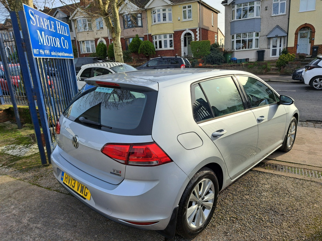 Volkswagen Golf 1.4 TSI BlueMotion Tech SE finished in Silver (Manual), 66638 miles, , This 2013 Volkswagen Golf TSI SE presents a remarkable opportunity with its exceptionally low mileage of just 66,638 miles for its age. The car has a Full Service History with 10 stamps in the service book last service at 65k. This popular hatchback is equipped with a responsive 1.4 litre petrol engine and features the SE trim level. For your convenience and comfort, it includes Bluetooth telephone preparation, adaptive distance control with adaptive cruise control, and automatic dusk sensing headlights. The manual air conditioning ensures a pleasant cabin environment in all conditions. , The Golf TSI SE offers a compelling blend of performance and practicality. Its 0-62mph acceleration in a brisk 9.3 seconds demonstrates its lively performance, making it a joy to drive. Furthermore, the generous boot space provides ample room for shopping, luggage, or sports equipment, highlighting its versatility for everyday use and longer journeys. These attributes, combined with its low mileage, position this Volkswagen Golf as an excellent choice compared to other vehicles in its class. , Only £6,999, , Fantastic low rates of finance available. Includes 3 month comprehensive parts & labour warranty with an option to extend. Part exchange welcome. **Follow us on Facebook and Twitter Staple Hill Motors @Hill Staple ** Please call 0117 9569393 for more information on this vehicle.