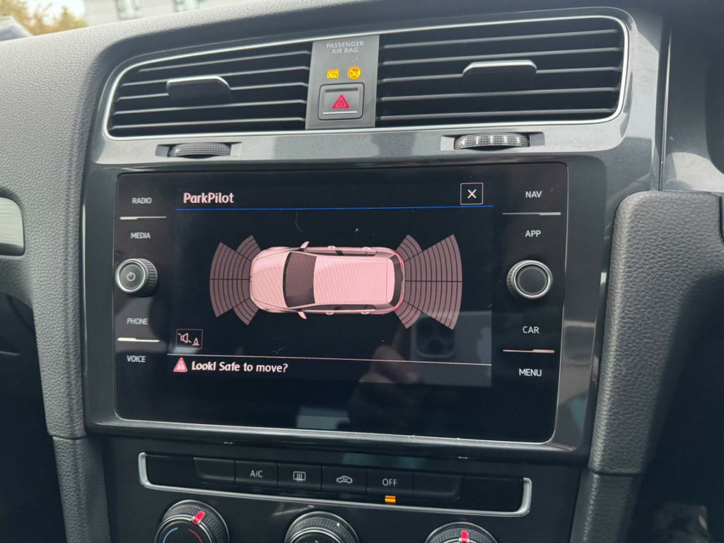 This 2017 Volkswagen Golf TSI SE Nav offers a superb blend of efficiency and technology, making it an excellent choice for any driver. Powered by a 1.4 litre Euro 6 compliant petrol engine, this model benefits from a manual air conditioning system to keep you comfortable in all conditions. The SE Nav trim level includes practical features such as front and rear parking sensors with parking assistance, ensuring manoeuvring is made simple. Additionally, the dusk sensor automatically activates the headlights, providing enhanced visibility and safety.Experience effortless journeys with the adaptive cruise control, which intelligently maintains your speed and distance from the vehicle ahead. The convenience pack further enhances usability, including automatic headlights for added peace of mind. With a swift 0-62mph acceleration time of just 9.1 seconds, this Golf offers responsive performance. Its generous boot space provides ample room for luggage or shopping, demonstrating how this Volkswagen Golf stands out from similar vehicles by offering both dynamic capability and everyday practicality. v socket - luggage compartment, 16in alloy wheels - linas, abs - anti-lock braking system with hba - hydraulic brake assist, adaptive cruise control, air conditioning - manual, airbags, alarm, auto-fold down lever in rear seat backrest, automatic coming-leaving home lighting function, automatic post-collision braking system, bag hooks in the luggage compartment, black front air intake and radiator grille with chrome trimmed inserts, body coloured bumpers, body coloured door handles, body-coloured roof spoiler - rear, brake pad wear indicator, car-net app connect, centre console - polar night black, child security locks in the rear doors, chrome plated air vent surrounds, chrome-plated light switch surround, convenience pack, cover for storage compartment in centre console, cup holder - closable cover in centre console, cup holders - front x2, decor strip on dashboard - decor strip on door side trim, decorative inserts - brushed dark metal, discover navigation touch-screen navigation-radio system with car-net guide and inform, driver alert system, driver profile selection, drivers and passengers safety optimised head restraints, dusk sensor - automatic driving lights, dust and pollen filter with active coal insert, esc - electronic stability control including edl - electronic differential lock and asr - traction control, electric rear windows, electric windows - front, electronic engine immobiliser, electronic parking brake with auto hold function, front centre armrest with storage compartment and two rear air vents, front comfort seats with height and lumbar adjustment, front interior light with delayed switch-off and contact switches - all doors, galvanised body, glovebox - cooled, grab handles - front x2 rear x2 with coat hooks, halogen clear headlights with integrated indicators - range adjustable with led daytime running lights, headlining - pearl grey, heated rear windscreen, height-adjustable front three-point seat belts with tensioners, hidden exhaust tailpipe, isofix child seat preparation for 2 rear seats, lights on warning buzzer, load lashing points x4 in luggage compartment, load-through facility in rear seat bench, load-through provision, luggage compartment cover - stowable, luggage compartment light, luggage compartment storage area on right, lumbar support for drivers and front passenger seat, mirror pack, multifunction computer, overhead storage, parking sensors - front and rear, power steering - electromechanical, pre-crash preventive occupant protection, predictive pedestrian protection, rain sensor and automatic dimming interior rear-view mirror, reading lights - front x2 and rear x2, rear centre armrest - folding with cup holders x2, rear diffuser - black, rear lights incorporating led technology, rear number plate lights incorporating led technology, rear seat bench with 60-40 split, rear window aerial, reflectors in doors, remote central locking with 2 remote folding keys, speedo and rev counter - electronic odometer - trip - service interval display - exterior temperature gauge and fuel gauge, steel space saver spare wheel, steering column - height and reach adjustable, steering wheel - multifunction - leather trimmed, storage compartment in centre console, storage compartment in front doors, storage compartment in rear doors, storage compartment in roof console with cover, three rear 3-point seat belts, three rear head restraints, tinted glass - heat insulating green, tyre pressure loss indicator, vanity mirrors - illuminated, variable boot floor - height adjustable and removable, warning buzzer and light for front seat belts if unfastened, white instrument cluster lighting - dimmable - red night design for switches - location lighting, windscreen wiper front and rear with intermittent wipe function, xds electronic differential lock for improved traction and handling