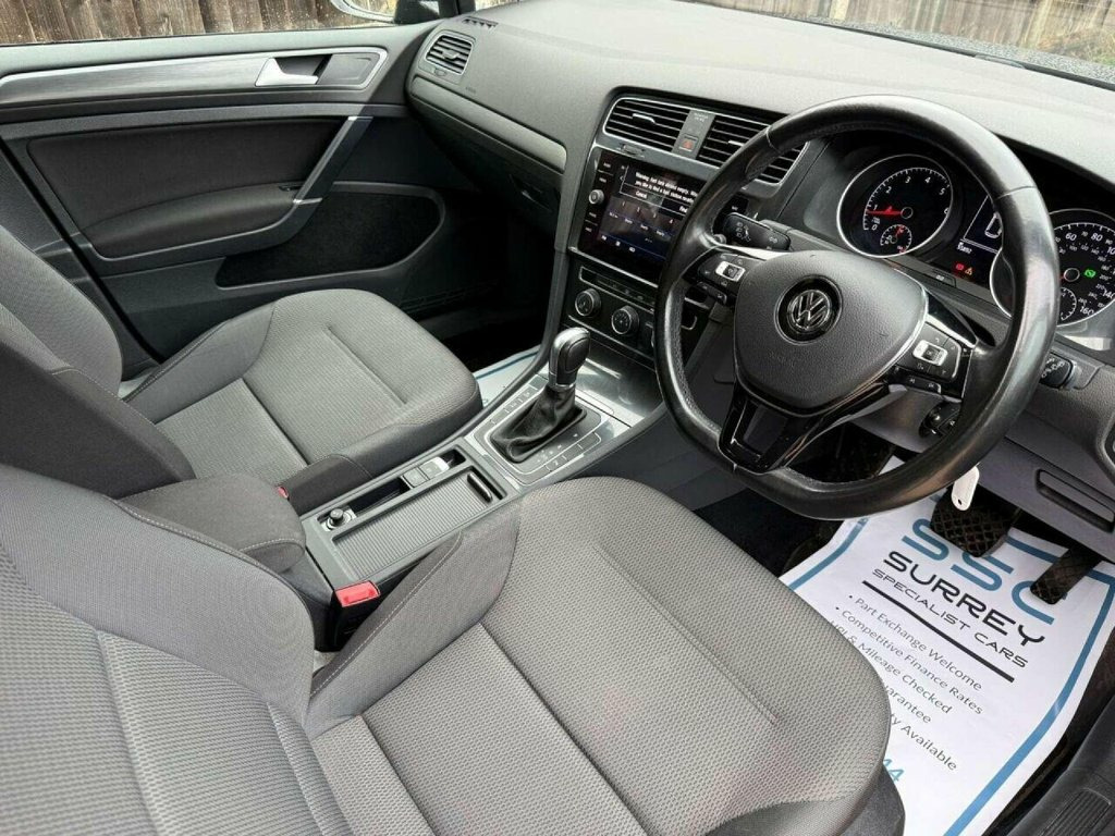 Surrey Specialist Cars are proud to present our lovely Volkswagen Golf SE TSI. This amazing car comes with Full Service History, finished in stunning metallic black with grey contrast interior. The car has a Long MOT until September 2026 so it is ready to go. The 1.4L Petrol engine offers superb economy at over 55 MPG on combined cycle. Features Include Multifunction Steering Wheel, Satellite Navigation,Parking Sensors, Trip Computer, Cruise Control, Stereo/Phone Control, Touch Screen, Apple CarPlay, Android Auto, FM/DAB Radio, CD Player, SD Card, Bluetooth Audio, AUX Input, USB Input, Air Conditioning, Start/Stop System, Drive Mode, Automatic Gearbox, Auto Hold Brake, Electronic Hand Brake, 12V Charging Socket, Cup Holders, 16 Inch Alloy Wheels and two Remote Control Keys to name a few. We are open 7 days a week, and prepare all of our cars to the highest standards. We have a Click & Collect option available, and can also arrange delivery on request. All cars are HPI clear and a full history report is provided with every car. We welcome any inspection and viewing is highly recommended. All cars are available with our AA warranty starting from just ?599 for 12 months. Debit and credit card facilities are available and we offer competitive finance packages. If you have any questions or would like to view any of our cars give us a call or drop us a message on whatsapp 01483 363 144 to arrange an appointment with one of our team. We also offer full bespoke walkaround vide 12V Socket - Luggage Compartment, 16in Alloy Wheels - Linas, ABS - Anti-Lock Braking System with HBA , Adaptive Cruise Control, Air Conditioning - Manual, Airbags, Alarm, Auto-Fold Down Lever in Rear Seat Backre, Automatic Coming-Leaving Home Lighting F, Automatic Post-Collision Braking System, Bag Hooks in the Luggage Compartment, Black Front Air Intake and Radiator Gril, Body Coloured Bumpers, Body Coloured Door Handles, Body-Coloured Roof Spoiler - Rear, Brake Pad Wear Indicator, Car-Net App Connect, Centre Console - Polar Night Black, Child Security Locks in the Rear Doors, Chrome Plated Air Vent Surrounds, Chrome-Plated Light Switch Surround, Convenience Pack, Cover for Storage Compartm