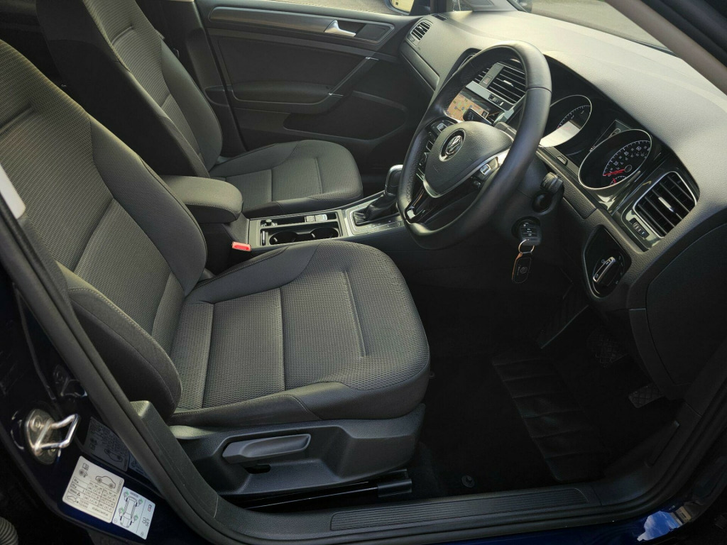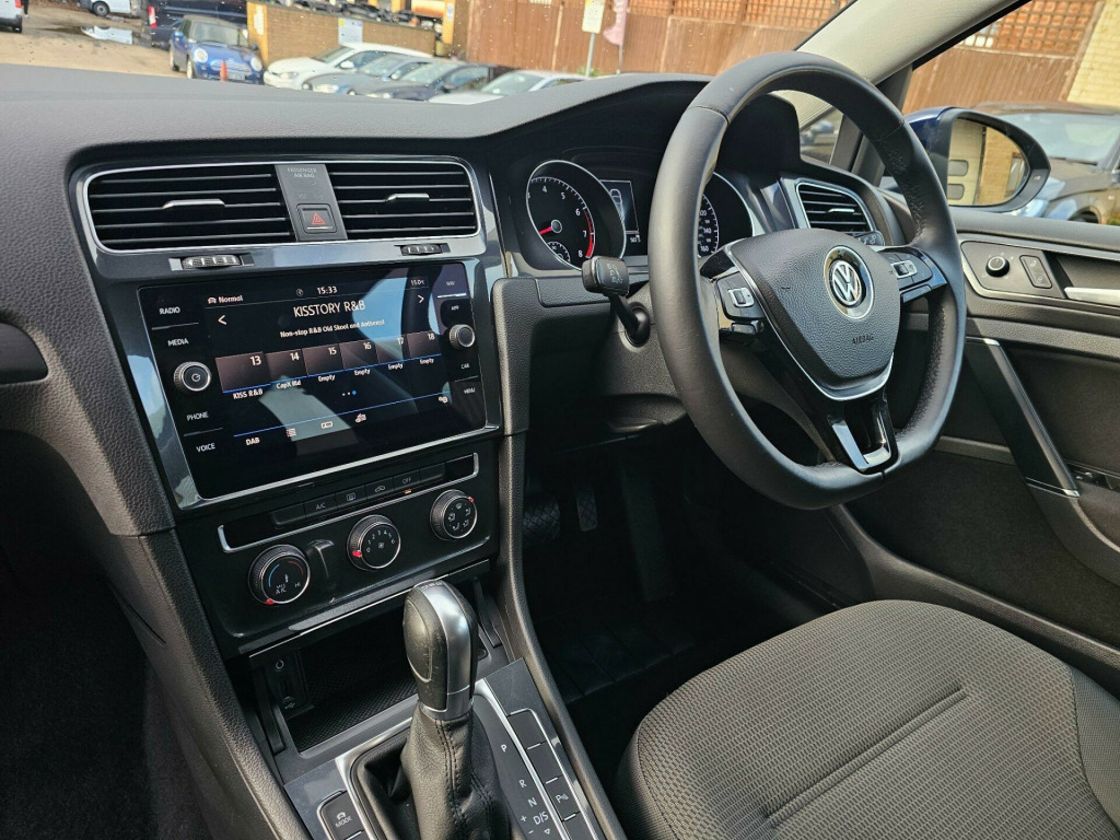 Kingston Cars and Vans present this nice clean Volkswagen Golf 1.4 TSI SE Nav DSG Euro 6 (s/s) 5dr in one of the best colour combo and Good Spec of options ,Genuine Low Mileage and Excellent 1.4l petrol engine, Full Service History with 6 services 5 from Main Dealer ,Last Full Service 50 miles ago including (New Timing Belt Kit Oil ,Oil Filter ,Automatic Gearbox Service,Air Filter , Cabin Filter we present invoices for the parts and for the labour ),MOT until November/2026 , Very stylish Golf 1.4 TSI with wonderful colour , Fantastic Engine and Nice and Smooth 7 Speed Automatic Gearbox. Finished in stunning Atlantic Blue Metallic with Cloth Sports Seats and Piano Black dashboard trim ,Sport spec includes: Unmarked 17'' Alloy wheels with Four Nearly Brand New tyres GOOD YEAR ,Discover Navigation Pro Touch -Screen Navigation DVD Radio System, ACC-Adaptive Cruise control,Multifunction leather steering wheel ,We Sale he Car with NEXTBASE Front Recording Camera,Volkswagen Infotainment & Music Interface,Car Apple Play, Bluetooth connectivity, Parking System Advanced including front and rear parking sensors , Sports front seats with height adjustment, USB connection for playing devices ,Day running Lights , Stability and traction control, Volkswagen anti theft alarm and immobiliser ,Electric windows, Electrically /Adjustable/Folding/ Heated door mirrors, Remote central locking ,Tool kit, Spare Wheel, All documents and User handbooks, Set of 2 remote keys etc. Covered just 74k genuine miles with full Service History ,The vehicle is Completely Original and Unmodified, Excellent exterior condition, very nice and clean non smoking interior, Powerful and economical 1.4l petrol engine with 125 Bhp, Vehicle can return 67 MPG on a long run and drives superbly ,HPI Checked and clear with certificate ,Road tax is £195 per year and can be purchase online,3 months parts and labour Warranty by Autoguard Warranty included in the price, P/X welcome, Viewing by appointment so please call or mail us, for more stock please visit our website-www.kingstoncarsandvans.co.uk v socket - luggage compartment, 16in alloy wheels - linas, abs - anti-lock braking system with hba - hydraulic brake assist, adaptive cruise control, air conditioning - manual, airbags, alarm with interior protection, automatic coming-leaving home lighting function, automatic post-collision braking system, bag hooks in the luggage compartment x2, black front air intake and radiator grille with chrome trimmed inserts, body coloured bumpers, body coloured door handles, body-coloured door mirrors with integrated indicators, brake pad wear indicator, brushed dark silver decorative inserts in dash and door panels, car-net app connect, child security locks in the rear doors, chrome plated air vent surrounds, chrome-plated light switch surround, composition media system, convenience pack, cover for storage compartment in centre console, cup holders - front x2, discover navigation touch-screen navigation-radio system with car-net guide and inform, driver alert system, driver personalisation profile, drivers and passengers safety optimised head restraints, driving mode selection, dusk sensor - automatic driving lights, dust and pollen filter, esc - electronic stability control including edl - electronic differential lock and asr - traction control with deactivation via infotainment system, electric windows - front and rear, electronic engine immobiliser, electronic parking brake with auto hold function, front assist, front centre armrest with storage compartment and two rear air vents, front comfort seats with height and lumbar adjustment, front seat back storage pockets, galvanised body, glovebox - cooled, grab handles - front x2 rear x2 with coat hooks, halogen clear headlights - range adjustable - led daytime running lights, heated rear windscreen, height-adjustable front three-point seat belts with tensioners, high level 3rd brake light incorporating led technology, isofix child seat preparation for 2 rear seats, instrument lighting - white adjustable panel illumination, interior light delay, lights on warning buzzer, load lashing points x4 in luggage compartment, load-through provision, luggage compartment cover - stowable, luggage compartment light, luggage compartment storage area on left and right, lumbar support for drivers and front passenger seat, mirror pack, multifunction computer, parking sensors - front and rear, polar night black decorative inserts in centre console, power assisted steering - speed-sensitive - electro-mechanical steering rack, pre-crash preventive occupant protection, predictive pedestrian protection, premium usb cable, rain sensor and automatic dimming rear-view mirror, reading lights - front x2 and rear x2, rear centre armrest - folding with cup holders x2, rear diffuser - black, rear lights incorporating led technology, rear number plate lights incorporating led technology, rear screen wash-wipe with intermittent wipe, rear window aerial, reflectors in doors, remote central locking with 2 remote folding keys, remote electrically foldable door mirrors - door mirror puddle lights and reverse activated kerb-view adjustment on passengers door mirrors, speedo and rev counter - electronic odometer - trip - service interval display - exterior temperature gauge and fuel gauge, split folding rear backrests 60-40, steel space saver spare wheel, steering column - height and reach adjustable, steering wheel - multifunction - leather trimmed, storage compartment in centre console, storage compartment in front doors, storage compartment in rear doors, storage compartment in roof console with cover, tailgate with integrated rear roof spoiler, three rear 3-point seat belts, three rear head restraints, tyre pressure loss indicator, vanity mirrors - illuminated, variable boot floor - height adjustable and removable, warning buzzer and light for front seat belts if unfastened, windscreen wiper with intermittent wipe and 4 position delay,