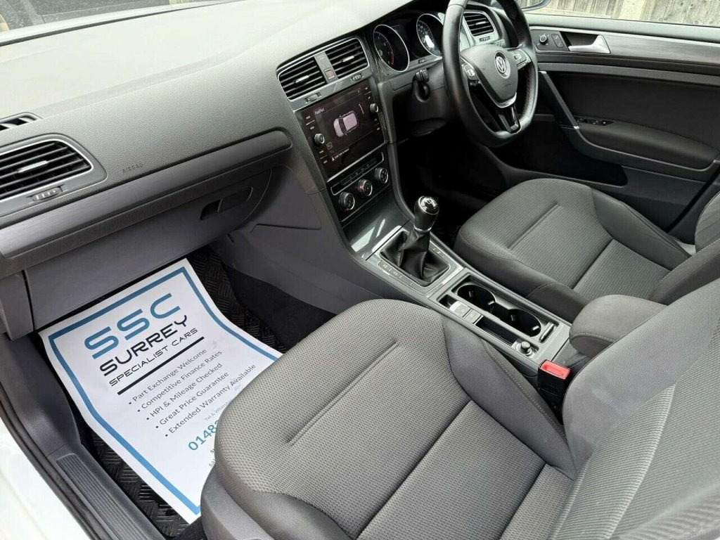 Surrey Specialist Cars are proud to present our lovely Volkswagen Golf SE Evo TSI. This amazing car comes with Service History, finished in stunning metallic white with grey contrast interior. The car has a MOT until October 2025 so it is ready to go. The 1.5L Petrol engine offers superb economy at over 55 MPG on combined cycle. Features Include Multifunction Steering Wheel, Trip Computer, Satellite Navigation, Cruise Control, Speed Limiter, Stereo/Phone Control, Touch Screen, FM/DAB Radio, CD Player, SD Card, Bluetooth Audio, AUX Input, USB Input, Air Conditioning, Start/Stop System, Parking Sensors, Drive Mode, 6 Speed Manual Gearbox, Auto Hold Brake, Electronic Hand Brake, 12V Charging Socket, Cup Holders, 16 Inch Alloy Wheels and two Remote Control Keys to name a few. We prepare all of our cars to the highest standards, which are available by Click & Collect, we can also arrange delivery on request. All cars are HPI clear and a full history report is provided with every car. We welcome any inspection and viewing is highly recommended. All cars are available with our AA warranty starting from just ?150 for 3 months. Debit and credit card facilities are available and we offer competitive finance packages. If you have any questions or would like to view any of our cars give us a call or drop us a message on whatsapp 01483 363 144 to arrange an appointment with one of our team. We also offer full bespoke walkaround videos on request. We are always on the lookout for high qua 12V Socket - Luggage Compartment, 16in Alloy Wheels - Linas, ABS - Anti-Lock Braking System with HBA , Adaptive Cruise Control, Air Conditioning - Manual, Airbags, Alarm with Interior Protection, Automatic Coming-Leaving Home Lighting F, Automatic Post-Collision Braking System, Bag Hooks in the Luggage Compartment x2, Black Front Air Intake and Radiator Gril, Body Coloured Bumpers, Body Coloured Door Handles, Body-Coloured Door Mirrors with Integrat, Brake Pad Wear Indicator, Brushed Dark Silver Decorative Inserts i, Car-Net App Connect, Child Security Locks in the Rear Doors, Chrome Plated Air Vent Surrounds, Chrome-Plated Light Switch Surround, Composition Media System, Convenience Pack, C