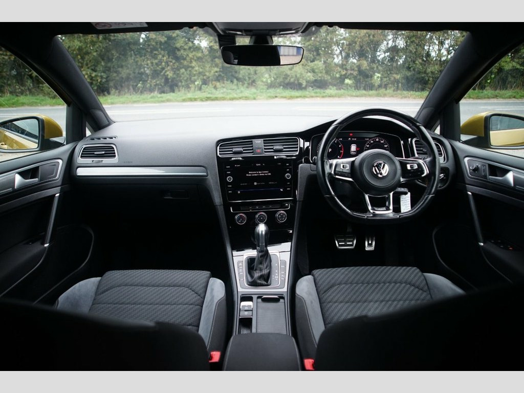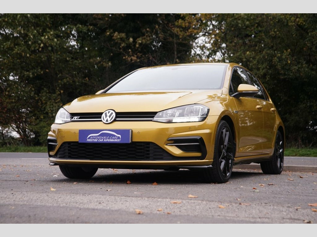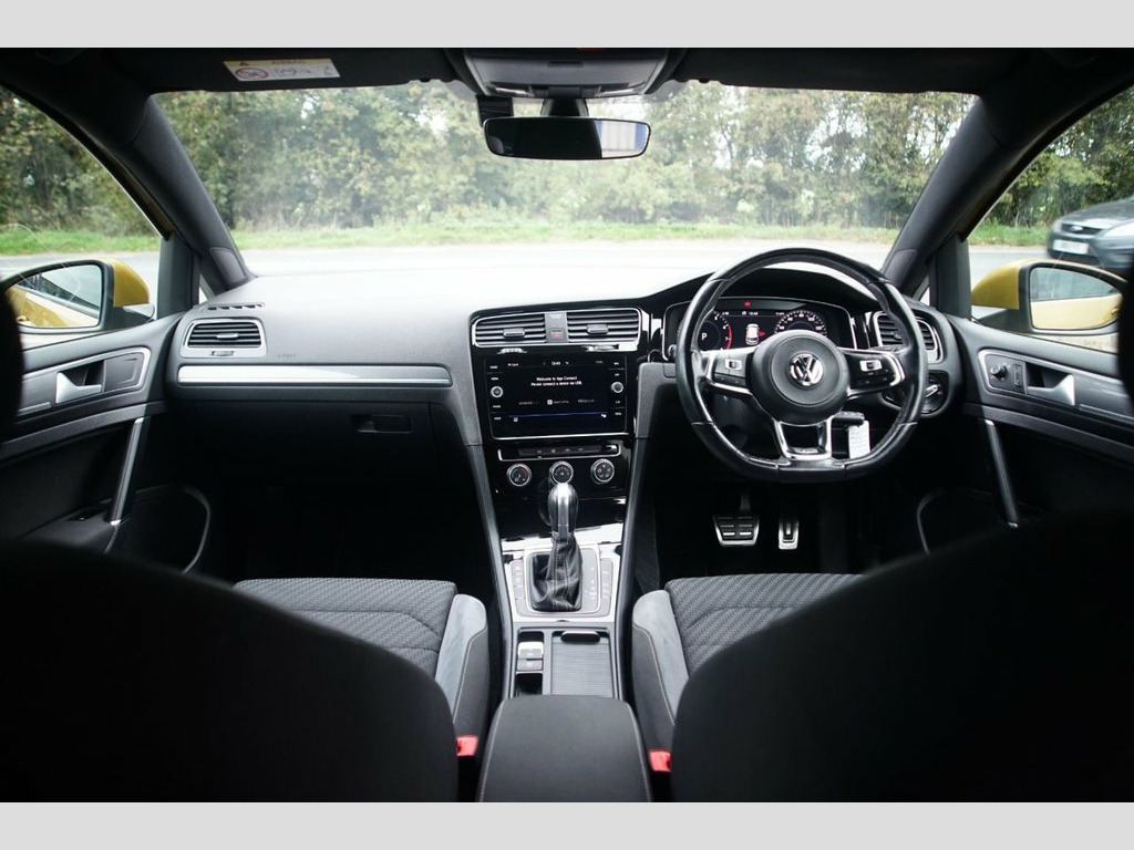 Prestige Car Supermarket in York presents this sporty and highly specified 2019 Volkswagen Golf 1.5 TSI EVO R-Line Hatchback. Finished in eye-catching Tumeric Yellow metallic paintwork and featuring an R-Line Cloth-San Remo Microfibre interior in Titan Black, this automatic petrol hatchback offers a responsive and engaging driving experience. It rides on 17in Singapore alloy wheels and features the R-Line Styling Pack, Lowered Sports Suspension, Black Rooflining, and Rear Tinted Glass. Illumination is provided by Halogen Clear Headlights with LED Daytime Running Lights and LED Rear Lights. Step inside the highly appointed cabin to find Front Sport Seats with R-Line Embossing and Lumbar Adjustment, a Leather-Trimmed Multi-Function Steering Wheel with Paddle Shift, and Ambient Lighting. Technology is comprehensive with the Discover Navigation Touch-Screen Navigation-Radio System, Car-Net App Connect, and DAB Digital Radio. Convenience is a priority with Adaptive Cruise Control, Front and Rear Parking Sensors, the Mirror Pack, which includes Electrically Foldable Door Mirrors with Reverse Activated Kerb-View, and the Convenience Pack, which features a Rain Sensor and Automatic Dimming Rear-View Mirror. Safety and driver assistance systems are extensive, including Front Assist, Predictive Pedestrian Protection, Driver Alert System, and the Automatic Post-Collision Braking System, ensuring a secure and confident drive. R-Line Cloth-San Remo Microfibre - Titan, Tumeric Yellow, 12V Socket - Luggage Compartment, 17in Alloy Wheels - Singapore, ABS - Anti-Lock Braking System with HBA , Adaptive Cruise Control, Air Conditioning - Manual, Airbags, Alarm with Interior Protection, Ambient Lighting, Ambient Lighting Pack, Automatic Coming-Leaving Home Lighting F, Automatic Post-Collision Braking System, Bag Hooks in the Luggage Compartment x2, Black Rooflining, Body Coloured Bumpers, Body Coloured Door Handles, Body-Coloured Door Mirrors with Integrat, Brake Pad Wear Indicator, Car-Net App Connect, Carpet Mats - Front and Rear, Car-Net Security and Service including e, Child Security Locks in the Rear Doors, Chrome