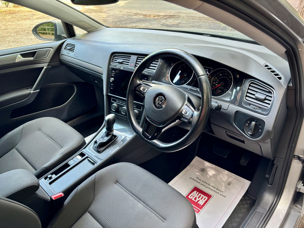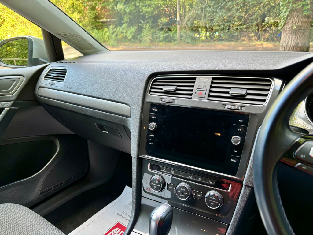 We are pleased to offer this stunning, Volkswagen Golf 1.5 Match Edition TSI EVO DSG. It is finished in metallic tungsten silver complemented with black cloth upholstery. This vehicle is supplied with Volkswagen service history, one years MOT and two keys. We offer a standard 6 month warranty which can be upgraded to a 24 month comprehensive warranty for only £495+VAT. Specification includes: Touch screen satellite navigation, heated front seats, cruise control, Apple carplay, front and rear parking sensors, electric heated door mirrors, 16'' alloy wheels, DAB radio, bluetooth phone preparation, air conditioning, auto headlights, stop/start system, dual cup holder, multi function steering wheel, Aux port, remote central door locking, electric windows, auto hold handbrake, 7 speed DSG transmission. HPI cleared. Euro 6 technology. ULEZ COMPLIANT. NO ADDITIONAL ADMIN FEES. Part exchange welcome. Please read our 5 star Autotrader reviews. WE OPERATE BY APPOINTMENT ONLY. For further information or to arrange an appointment please call us on 07884367167.
