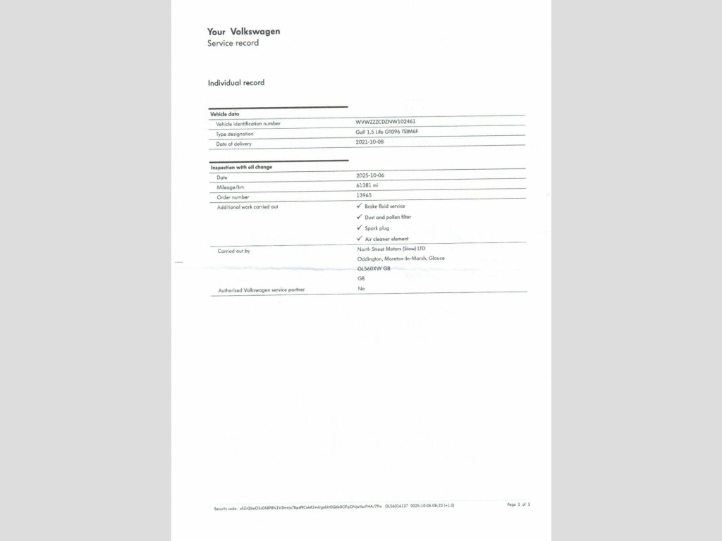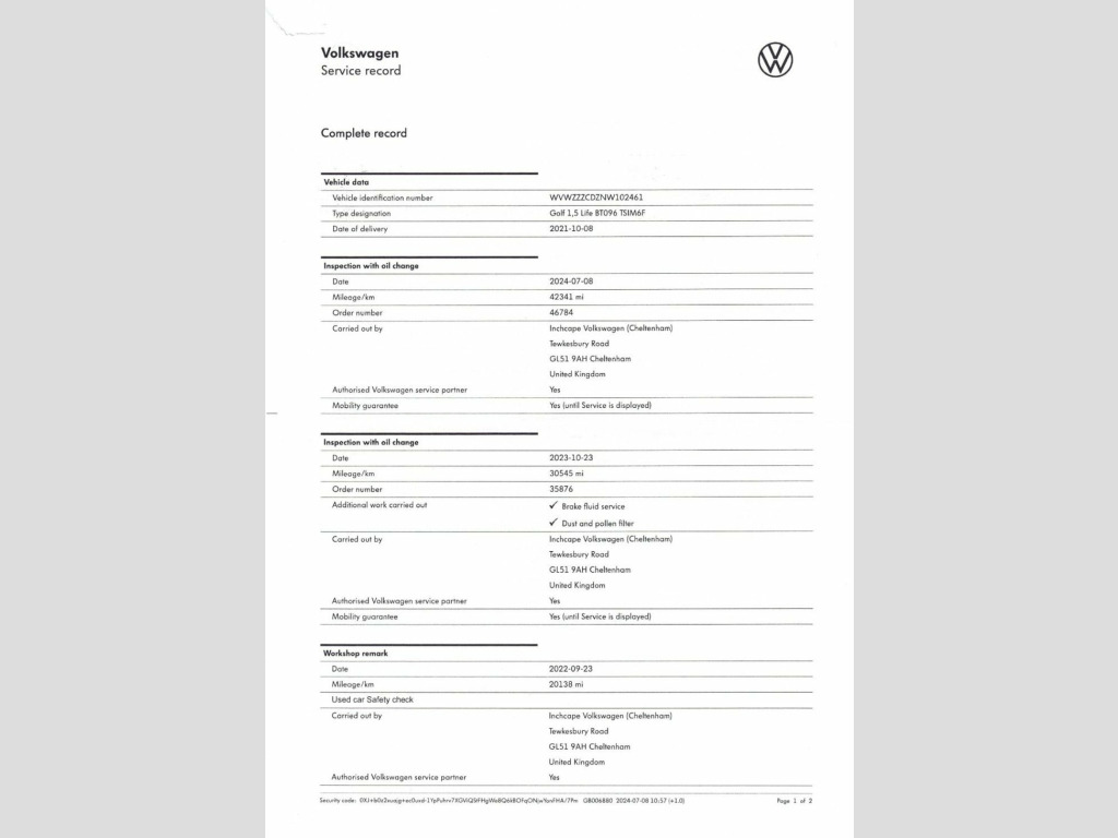 With an MOT valid until October 2026 and a full service history, this 2021 Volkswagen Golf TSI Life offers excellent peace of mind. This Euro 6 compliant model features a 1.5 litre petrol engine and comes equipped with the Discover Navigation Infotainment System, complete with Bluetooth connectivity, and Adaptive Cruise Control for a more relaxed driving experience. The Golf TSI Life demonstrates impressive efficiency, achieving a highlight fuel economy of 52 miles per gallon and boasting low CO2 emissions. Its performance is also noteworthy, with an acceleration of 0 to 60 miles per hour in just 9.2 seconds, indicating a responsive and capable drive compared to other vehicles in its class. Comes with 5 Services recorded with the last service carried out October '25 at 61,381 miles and it has 2 Keys. See below for its full list of features. Book today to view and test drive. Open 7 days a week. All part exchanges welcome. Please ask for details of our finance and extended warranty options, subject to status, T's and C's apply. Discover Navigation Infotainment System, Digital Cockpit Pro, App-Connect with Apple CarPlay + Android, Adaptive Cruise Control, Bluetooth Interface, DAB Digital Radio, 1 Zone Electronic Climate Control, Front and Rear Parking Sensors, 16in Norfolk Alloy Wheels , Premium USB C Cable , Wireless Smartphone Charger, Front Comfort Seats with Height and Lumb, Electric Front and Rear Windows , Leather Trimmed Three-Spoke Multifunctio, Front Centre Armrest with Storage Compar, Front Cup Holders x2, Leather Trimmed Gear Knob, Height and Reach Adjustable Steering Whe, Keyless Start, Height Adjustable and Removable Variable, Folding Rear Centre Armrest with Cup Hol, Rain Sensor and Automatic Dimming R