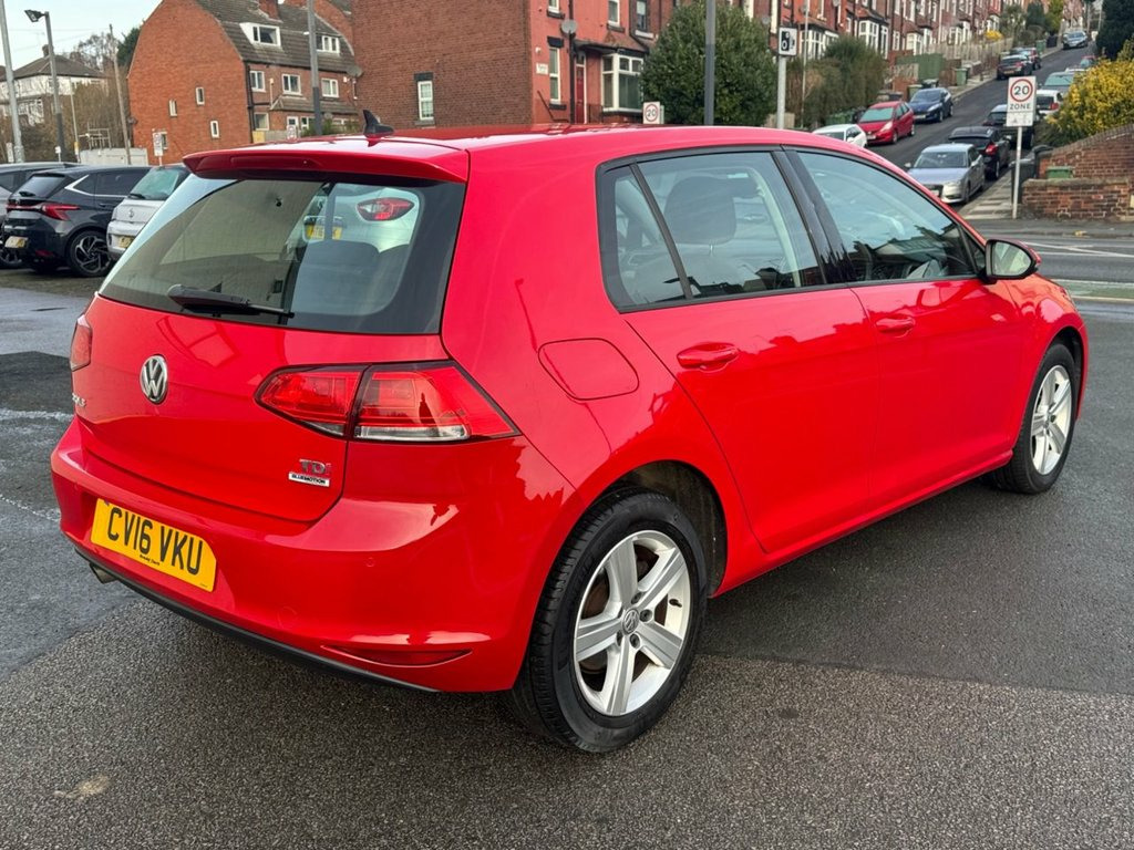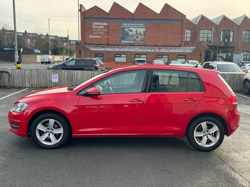 VW GOLF 1.6 TDI GENUINE 47,210 MILES with a FULL SERVICE HISTORY - 7 services to 42,000 miles. Finished in Tornado red paintwork with 16" silver alloy wheels. Over 70 miles per gallon combined fuel economy and only £20 year road tax. Spec includes adaptive cruise control, Bluetooth, DAB radio, hill-hold, SAT NAV, Heated front seats, Multi-function steering, front/rear parking sensors, trip computer, auto headlights, air con and much more. Call 0113 2636003 or visit leedsmotorcompany.co.uk. Tornado Red, 12V Socket - Luggage Compartment, 16in Alloy Wheels - Dover, ABS - Anti-lock Braking System with HBA , Adaptive Cruise Control ACC Including Fr, Air Conditioning - Manual, Airbags, Alarm, Automatic Coming-Leaving Home Lighting F, Automatic Post-Collision Braking System, Bag Hooks in the Luggage Compartment, Black Front Air Intake and Radiator Gril, Body Coloured Bumpers, Body Coloured Door Handles, Body-Coloured Door Mirrors with Integrat, Brake Pad Wear Indicator, Brushed Dark Silver Decorative Inserts i, Child Security Locks in the Rear Doors, Chrome Plated Air Vent Surrounds, Chrome-Plated Light Switch Surround, Composition Media System, Convenience Pack, Cover for Storage Co