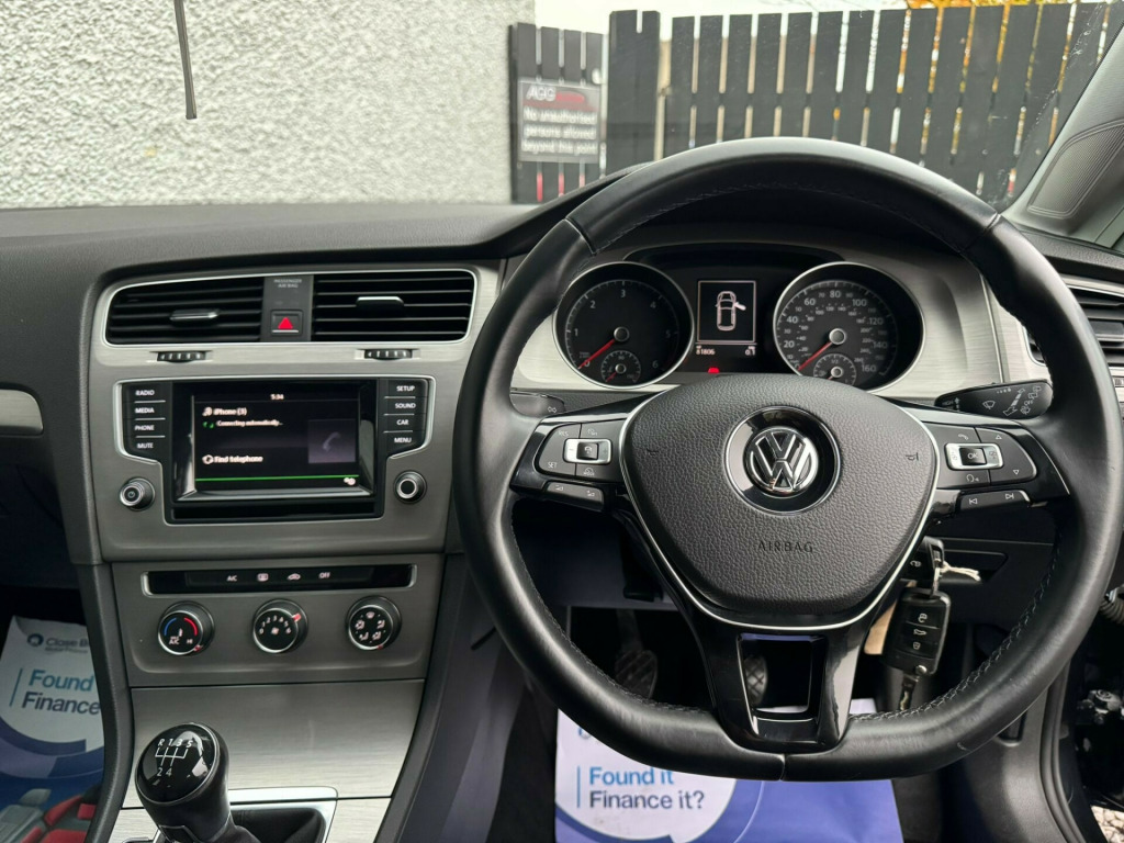 ?MK7 GOLF 1.6 TDI MATCH, £20 TAX, BODYKIT FITTED, 2 KEYS, BLUETOOTH MEDIA? ?Apply for finance https://www.aggautos.co.uk/used/cars/volkswagen-golf-16-tdi-bluemotion-tech-match-hatchback-5dr-diesel-manual-euro-5-ss-105-ps-10030/?81k miles ?First reg - August 2014 ?2 Keys ?Long MOT ?Match model?1.6 diesel?£20 TAX ?Manual ?Brand new lip kit and spoiler fitted?Fully serviced ?T belt replaced ?USB Charging points ?centre armrest ?Multi function steering wheel ?handsfree bluetooth ?Alloys in the pictures are an optional extra on top of the advertised sale price costing you £695 ?View our other stock www.aggautos.co.uk ?All cars come Serviced and Valeted ?Wide range of Finance lenders to suit you -Delivery available to NI and ROI customers ?Call Aaron on 02882160496 / 07793070171 AGG Autos LTD Unit 11 Gortrush Industrial EstateOmagh, Co TyroneBT78 5EJ v socket, 12v socket - luggage compartment, aux-in socket, bluetooth telephone preparation, composition media system, dab - digital radio reception, mdi - multi device interface with usb - ipod connection cables, radio & single cd player mp3 compatible, radio aerial integrated into rear windscreen, sd card reader, speakers x8, 16in alloy wheels - dover, black front air intake and radiator grille with chrome trimmed inserts, body coloured bumpers and door handles, body-coloured door mirrors with integrated indicators, door mirrors - electrically adjustable-heated and folding, door mirrors - reverse activated kerb view adjustment on passengers, electric windows - front and rear, mirror pack, radiator grille - black with chrome louvres, rear diffuser - black, spare wheel - space saver steel, spoiler - tailgate, abs - anti-lock braking system, asr - anti slip regulation, airbags - curtain front and rear, airbags - driver, airbags - drivers knee, airbags - front passenger, airbags - front passenger with deactivation switch, airbags - front seat side impact, alarm with interior protection, automatic post-collision braking system, central locking - remote with 2 remote keys, child locks in rear doors, differential lock - electronic, esp - electronic stability programme, electronic engine immobiliser, electronic parking brake with auto hold function, front assist including city emergency braking, hba - hydraulic brake assist, isofix child seat preparation for 2 rear seats, misfuel prevention device, multiple impact brake activation, pre-crash preventive occupant protection, radar sensor controlled distance monitoring system, seatbelt reminder, xds electronic differential lock, air conditioning - manual, air vent surrounds - chrome effect, armrest - front centre with ventilation nozzles x2, automatic dimming rear view mirror, convenience pack, cup holders - front x2, cup holders - rear x2, decor - brushed stainless steel, dust and pollen filter, first-aid kit and warning triangle - holder only, front seat back storage pockets, glovebox - illuminated - cooled - lockable, grab handles - front x2 rear x2 with coat hooks, head restraints - front whiplash optimised, height and reach adjustable steering column, instrument lighting - white adjustable panel illumination, interior lighting delay, leather trimmed three-spoke steering wheel and gear knob, lighting dial - chrome look, load lashing points x4 in luggage compartment, load-through provision, luggage compartment - hooks, luggage compartment cover, luggage compartment light, luggage compartment storage area on right, rain sensor, reading lights - front x2 and rear x2, rear centre armrest, safeguard against incorrect fuel, seats - front comfort, seats - front lumbar support, seats - height adjustment - front, seats - rear backrest with automatic folding, split folding rear backrests 60-40, steering wheel - audio controls, storage - cover for area in roof console, storage compartment in centre console covered, storage compartment in front doors, storage compartment in rear doors, storage compartment in roof console, sun visors - vanity mirrors and illuminated, three rear head restraints, under seat drawers - front passenger, variable boot floor, windscreen wipers with intermittent wipe and 4 position delay, brake pad wear indicator, cruise control, driver alert system, driver profile choices, gear shift indicator, multifunction computer - 3.5in display, parking sensors - front, parking sensors - rear, power assisted steering - speed sensitive, temperature display - external, tyre pressure indicator, daytime running lights, door mirrors - puddle lights, front fog lights with cornering lights, headlights - coming-leaving home function, headlights - dusk sensor - automatic driving lights, headlights - halogen clear - range adjustable, high level 3rd brake light - led, lights on warning buzzer
