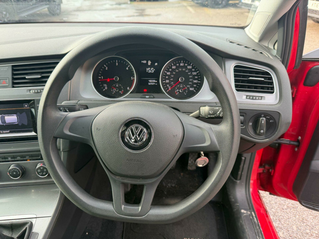 This Volkswagen Golf TDI S from 2014 presents an exceptional ownership proposition with only one owner from new and a remarkably low mileage of 64,000 miles. This well maintained example boasts a clear vehicle history check, ensuring peace of mind for its next owner. Under the bonnet lies an efficient 1.6 litre diesel engine, paired with the S trim level, offering a practical and economical driving experience. Notable features include manual air conditioning for comfort and Bluetooth telephone preparation, allowing for seamless connectivity on the go.The benefits of choosing this Golf TDI S are clear when considering its impressive fuel economy of 74 miles per gallon, making it a very cost effective choice for daily driving. Its low CO2 emissions also contribute to its appeal, while the low insurance group rating further enhances its affordability. Practicality is also a strong suit, with generous boot space making it suitable for families or those needing extra room for luggage. These combined highlights demonstrate how this particular Volkswagen Golf stands out as a sensible and well looked after vehicle. v socket, 15in steel wheels, abs - anti-lock braking system, asr - anti slip regulation, air conditioning - manual, air vent surrounds - chrome effect, airbags - curtain front and rear, airbags - driver, airbags - drivers knee, airbags - front passenger, airbags - front passenger with deactivation switch, airbags - front seat side impact, armrest - front centre with ventilation nozzles x2, automatic post-collision braking system, aux-in socket, bluetooth telephone preparation, body coloured bumpers and door handles, body-coloured door mirrors with integrated indicators, brake pad wear indicator, central locking - remote with 2 remote keys, child locks in rear doors, composition media system, cup holders - front x2, dab - digital radio reception, daytime running lights, decor - dark rhodium fine, differential lock - electronic, door mirrors - electrically adjustable and heated, dust and pollen filter, esp - electronic stability programme, electric windows - front, electronic engine immobiliser, electronic parking brake with auto hold function, first-aid kit and warning triangle - holder only, full size wheel trims, glovebox - illuminated - cooled - lockable, grab handles - front x2 rear x2 with coat hooks, hba - hydraulic brake assist, head restraints - front whiplash optimised, headlights - halogen clear - range adjustable, height and reach adjustable steering column, high level 3rd brake light - led, isofix child seat preparation for 2 rear seats, instrument lighting - white adjustable panel illumination, interior lighting delay, lights on warning buzzer, load lashing points x4 in luggage compartment, luggage compartment - hooks, luggage compartment cover, luggage compartment light, mdi - multi device interface with usb - ipod connection cables, misfuel prevention device, multifunction computer - includes visual gear change recommendation, multiple impact brake activation, power assisted steering - speed sensitive, radiator grille - black, radio & single cd player mp3 compatible, radio aerial integrated into rear windscreen, reading lights - front x2, rear diffuser - black, sd card reader, safeguard against incorrect fuel, seatbelt reminder, seats - height adjustment - front, service interval display, spare wheel - space saver steel, speakers x8, split folding rear backrests 60-40, spoiler - tailgate, storage compartment in centre console covered, storage compartment in front doors, storage compartment in rear doors, storage compartment in roof console, sun visors - vanity mirrors and illuminated, temperature display - external, three rear head restraints, three-spoke steering wheel, tinted glass - heat insulating, tyre pressure indicator, variable boot floor, windscreen wipers with intermittent wipe and 4 position delay, xds electronic differential lock