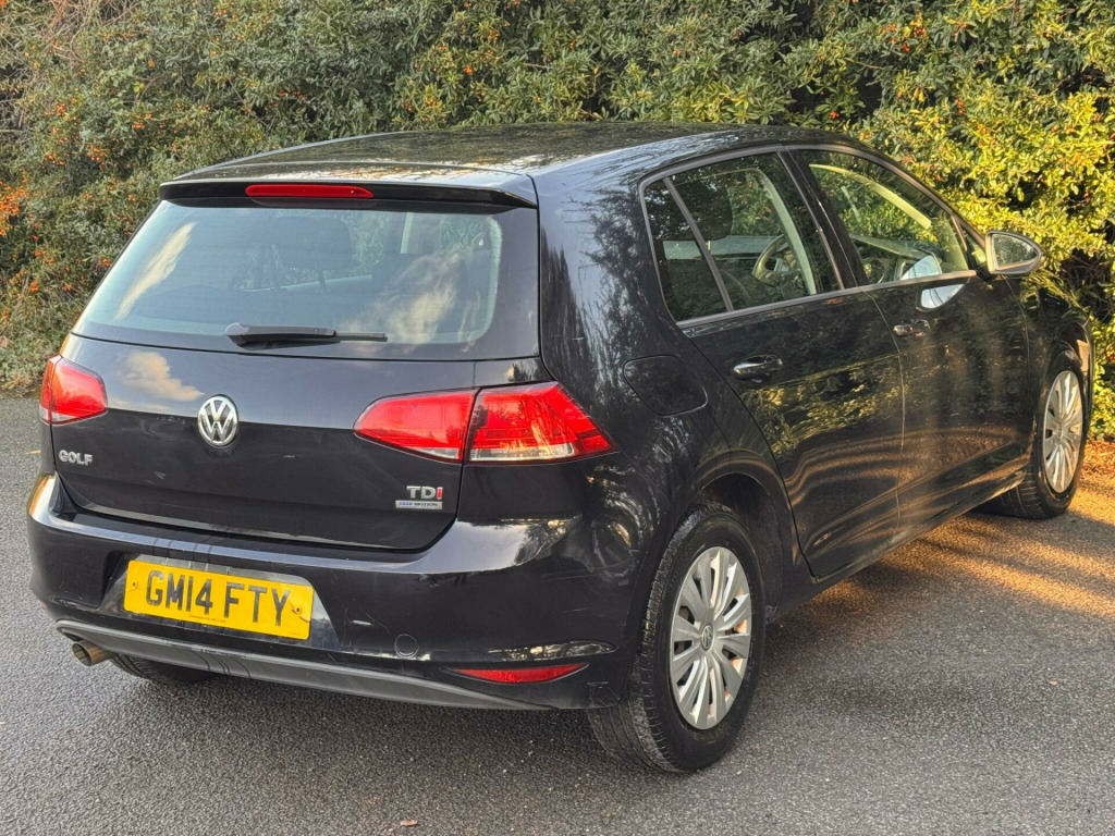 1 FORMER KEEPER FROM NEW - SERVICE HISTORY - HPI CLEAR - 11 MONTHS MOT - FINANCE AVAILABLE - JUST BEEN SERVICED - ALL PART EXCHANGES ARE WELCOME - OVER 200 CARS IN STOCK - CALL FOR MORE INFORMATION This Volkswagen Golf TDI S from 2014 boasts an impressive history, having had only two owners since new. This well maintained example features a 1.6 litre diesel engine and comes in the S trim. You'll find practical additions like the Mirror Pack, a Multifunction Computer with a 3.5 inch display, and convenient cruise control. The car sits on 15 inch Lyon alloy wheels and offers the ease of electric windows for both the front and rear passengers.This Golf TDI S offers several advantages that set it apart. Its exceptional fuel economy of 74 miles per gallon means fewer trips to the petrol station, making it a very economical choice. Furthermore, its low CO2 emissions contribute to a more environmentally friendly drive. The generous boot space provides ample room for shopping or luggage, and its placement in a low insurance group makes it an affordable option to own and run. v socket, 15in steel wheels, abs - anti-lock braking system, asr - anti slip regulation, air conditioning - manual, air vent surrounds - chrome effect, airbags - curtain front and rear, airbags - driver, airbags - drivers knee, airbags - front passenger, airbags - front passenger with deactivation switch, airbags - front seat side impact, armrest - front centre with ventilation nozzles x2, automatic post-collision braking system, aux-in socket, bluetooth telephone preparation, body coloured bumpers and door handles, body-coloured door mirrors with integrated indicators, brake pad wear indicator, central locking - remote with 2 remote keys, child locks in rear doors, composition media system, cup holders - front x2, dab - digital radio reception, daytime running lights, decor - dark rhodium fine, differential lock - electronic, door mirrors - electrically adjustable and heated, dust and pollen filter, esp - electronic stability programme, electric windows - front, electronic engine immobiliser, electronic parking brake with auto hold function, first-aid kit and warning triangle - holder only, full size wheel trims, glovebox - illuminated - cooled - lockable, grab handles - front x2 rear x2 with coat hooks, hba - hydraulic brake assist, head restraints - front whiplash optimised, headlights - halogen clear - range adjustable, height and reach adjustable steering column, high level 3rd brake light - led, isofix child seat preparation for 2 rear seats, instrument lighting - white adjustable panel illumination, interior lighting delay, lights on warning buzzer, load lashing points x4 in luggage compartment, luggage compartment - hooks, luggage compartment cover, luggage compartment light, mdi - multi device interface with usb - ipod connection cables, misfuel prevention device, multifunction computer - includes visual gear change recommendation, multiple impact brake activation, power assisted steering - speed sensitive, radiator grille - black, radio & single cd player mp3 compatible, radio aerial integrated into rear windscreen, reading lights - front x2, rear diffuser - black, sd card reader, safeguard against incorrect fuel, seatbelt reminder, seats - height adjustment - front, service interval display, spare wheel - space saver steel, speakers x8, split folding rear backrests 60-40, spoiler - tailgate, storage compartment in centre console covered, storage compartment in front doors, storage compartment in rear doors, storage compartment in roof console, sun visors - vanity mirrors and illuminated, temperature display - external, three rear head restraints, three-spoke steering wheel, tinted glass - heat insulating, tyre pressure indicator, variable boot floor, windscreen wipers with intermittent wipe and 4 position delay, xds electronic differential lock, cruise control, multifunction computer - 3.5in display, 15in alloy wheels - lyon, mirror pack, electric windows - front and rear