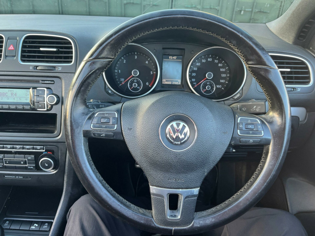 JUST TAKEN THIS CAR IN PART EXCHANGE ITS DONE 128K THOUGH IT IS 15 YEARS OLD GOLF ,THATS ONLY 8500 MILES A YEAR. IT LOOKS A DRIVES GREAT WITH VIENNA SOFT LEATHER HEATED SEATS CLIMATE CONTROL AIR CONDITIONING , CRUISE CONTROL, STEREO CD RADIO WITH DAB. 17 INCH ALLOY WHEELS This Volkswagen Golf TDI SE from 2011 boasts a clear vehicle history and has been owned by only three previous keepers, offering you peace of mind. This well maintained hatchback features a 1.6 litre diesel engine and comes with the SE trim level. Notable features include Bluetooth for handsfree calls and music streaming, front and rear parking sensors to aid manoeuvring, and automatic dusk sensing headlights for convenience. Inside, you'll find 2 zone electronic climate control with automatic air recirculation, ensuring a comfortable cabin temperature for all occupants. This Golf TDI SE is a sensible choice, offering excellent fuel economy of up to 64 miles per gallon, which is significantly better than many other vehicles in its class. Its low CO2 emissions also contribute to lower running costs and environmental impact. Furthermore, its low insurance group rating means that insuring this car is more affordable. Practicality is also a strong point, with generous boot space making it ideal for shopping trips or family holidays.A FULL SET OF BETTER PHOTOS TOMORROW AFTERNOON AFTER A PROFESSIONAL DETAIL VALET rk assist, rcd 510 touch screen radio system, vienna leather - black, bluetooth telephone preparation, dab+ - digital radio reception, 2 zone electronic climate control with automatic air recirculation, 17in alloy wheels - porto, abs - anti-lock braking system, parking sensors - front, asr - anti slip regulation, parking sensors - rear, active rollover protection system, airbags - driver, 12v socket - front centre armrest, airbags - drivers knee, 12v socket - luggage compartment, airbags - front passenger, 12v socket, airbags - front passenger with deactivation switch, airbags - front seat side impact, alarm with interior protection, armrest - front centre, automatic dimming rear view mirror, aux-in socket, body coloured bumpers, body coloured door handles, body-coloured door mirrors with integrated indicators, central locking - remote with 2 remote keys, cruise control, cup holders - front x2, differential lock - electronic, door mirrors - electrically adjustable and heated, dust and pollen filter, esp - electronic stability programme, electric windows - front, electric windows - front and rear, electronic engine immobiliser, exterior temperature gauge, fully automatic electric power hood, glovebox - cooled and lockable, hba - hydraulic brake assist, head restraints - front whiplash optimised, headlights - coming-leaving home function, headlights - dusk sensor - automatic driving lights, heated rear windscreen, height and reach adjustable steering wheel, high beam assist, hill hold assist, isofix child seat preparation, mdi - multi device interface, multifunction computer - highline, power assisted steering - speed sensitive, rcd 310 radio - mp3 compatible cd player, rain sensor, seats - easy entry sliding front, seats - front comfort, seats - height adjustment - front, seats - split folding rear backrests 50-50, spare wheel - space saver steel, speakers x6, start-stop function, steering wheel - 3-spoke - leather trimmed - multifunction, steering wheel - multifunction, tcs - traction control system, tinted glass - heat insulating, wind deflector