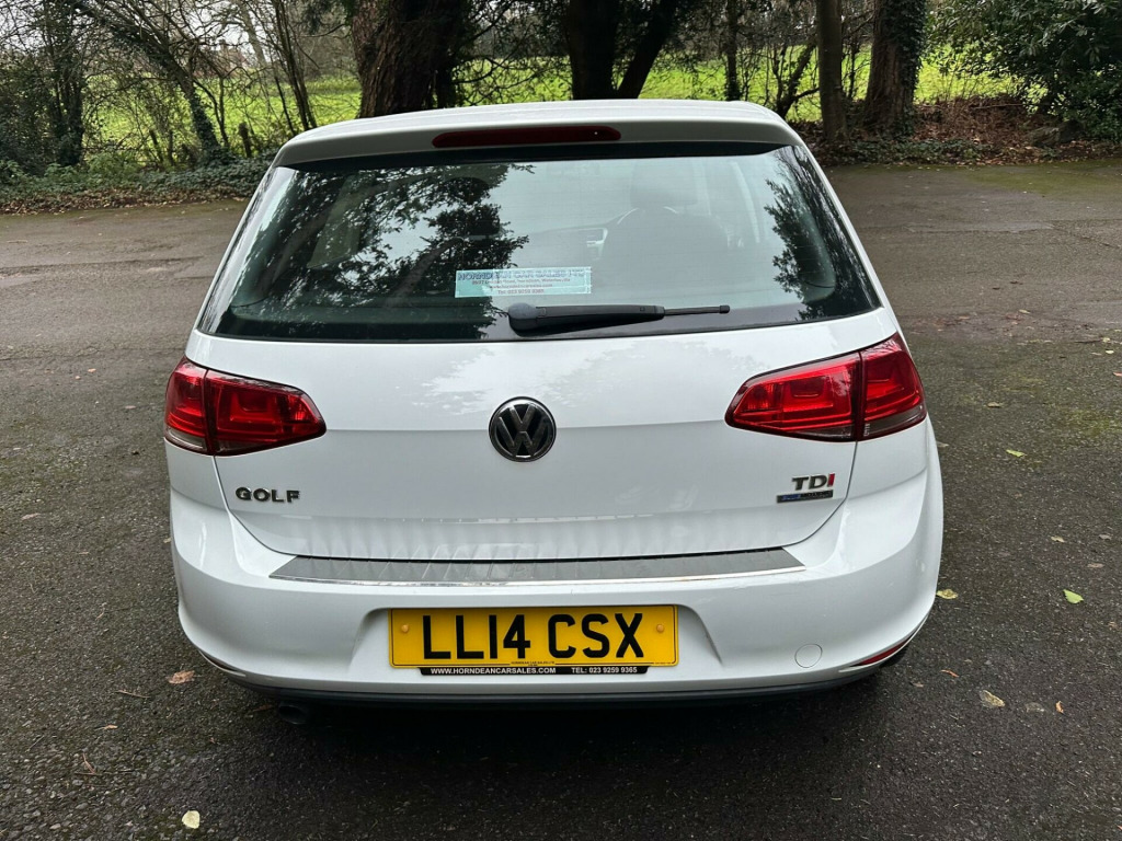 This 2014 Volkswagen Golf 1.6 TDI BlueMotion Tech SE DSG Euro 5 (s/s) 5dr Hatchback is currently available for £6,995 in Hampshire with Diesel engine and Automatic gearbox. For more information or to arrange a viewing, click here to send us an email using form below.