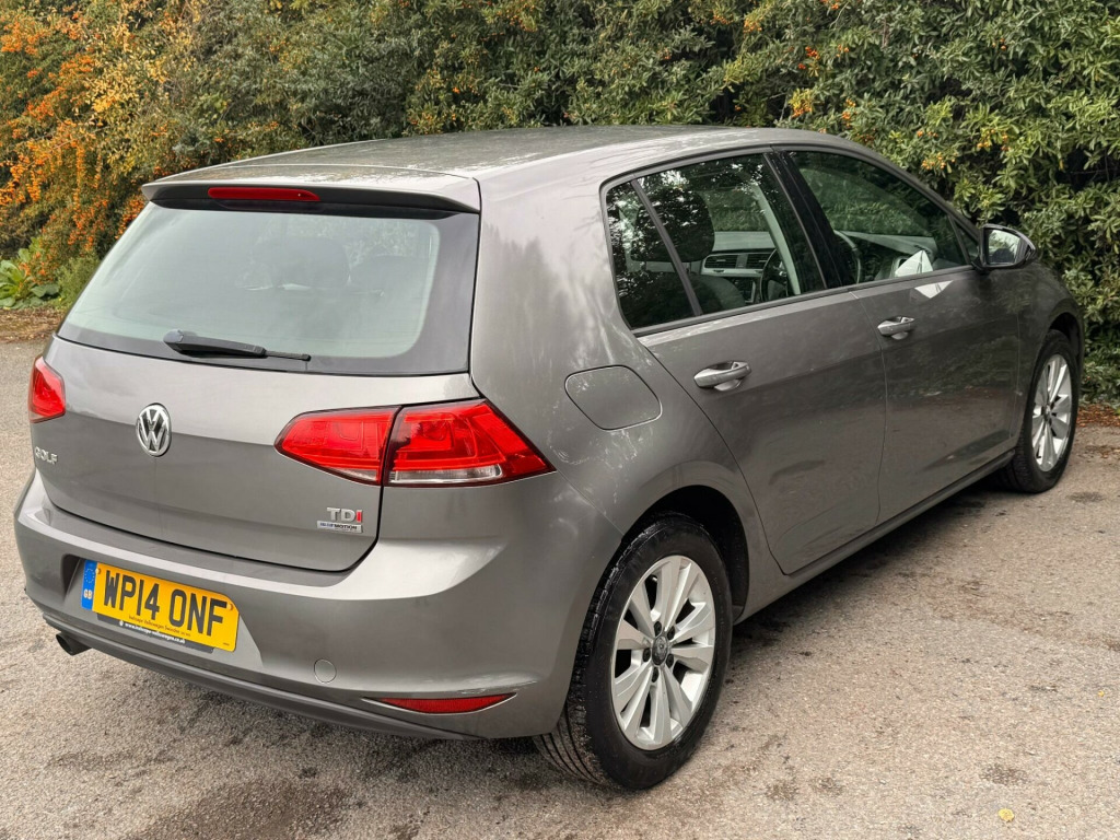 1 FORMER KEEPER FROM NEW - SERVICE HISTORY - HPI CLEAR - 11 MONTHS MOT - FINANCE AVAILABLE - BLUETOOTH - JUST BEEN SERVICED - ALL PART EXCHANGES ARE WELCOME - OVER 200 CARS IN STOCK - CALL FOR MORE INFORMATION This 2014 Volkswagen Golf TDI SE presents an exceptional opportunity with its remarkably low mileage, especially considering its age. This well maintained Golf features a 1.6 litre diesel engine and comes equipped with Automatic Distance Control including adaptive cruise control, Bluetooth telephone preparation, automatic dusk sensing headlights, and manual air conditioning, offering a comfortable and convenient driving experience.You will appreciate the significant savings this Golf offers, with an impressive fuel economy of 74 miles per gallon and low CO2 emissions, placing it in a low insurance group which indicates lower running costs compared to many other vehicles. Furthermore, the generous boot space ensures practicality for everyday needs and longer journeys, making this Golf a sensible and economical choice. v socket, 12v socket - luggage compartment, 16in alloy wheels - toronto, abs - anti-lock braking system, adc - automatic distance control, asr - anti slip regulation, air conditioning - manual, air vent surrounds - chrome effect, airbags - curtain front and rear, airbags - driver, airbags - drivers knee, airbags - front passenger, airbags - front passenger with deactivation switch, airbags - front seat side impact, alarm with interior protection, armrest - front centre with ventilation nozzles x2, automatic dimming rear view mirror, automatic post-collision braking system, aux-in socket, black front air intake and radiator grille with chrome trimmed inserts, bluetooth telephone preparation, body coloured bumpers and door handles, body-coloured door mirrors with integrated indicators, brake pad wear indicator, central locking - remote with 2 remote keys, child locks in rear doors, composition media system, convenience pack, cruise control, cup holders - front x2, cup holders - rear x2, dab - digital radio reception, daytime running lights, decor - brushed stainless steel, differential lock - electronic, door mirrors - electrically adjustable and heated, driver alert system, driver profile choices, dust and pollen filter, esp - electronic stability programme, electric windows - front and rear, electronic engine immobiliser, electronic parking brake with auto hold function, first-aid kit and warning triangle - holder only, front assist including city emergency braking, front seat back storage pockets, glovebox - illuminated - cooled - lockable, grab handles - front x2 rear x2 with coat hooks, hba - hydraulic brake assist, head restraints - front whiplash optimised, headlights - coming-leaving home function, headlights - dusk sensor - automatic driving lights, headlights - halogen clear - range adjustable, height and reach adjustable steering column, high level 3rd brake light - led, isofix child seat preparation for 2 rear seats, instrument lighting - white adjustable panel illumination, interior lighting delay, leather trimmed three-spoke steering wheel and gear knob, lighting dial - chrome look, lights on warning buzzer, load lashing points x4 in luggage compartment, load-through provision, luggage compartment - hooks, luggage compartment cover, luggage compartment light, luggage compartment storage area on right, mdi - multi device interface with usb - ipod connection cables, misfuel prevention device, multifunction computer - 3.5in display, multifunction computer - includes visual gear change recommendation, multiple impact brake activation, power assisted steering - speed sensitive, pre-crash preventive occupant protection, radar sensor controlled distance monitoring system, radiator grille - black with chrome louvres, radio & single cd player mp3 compatible, radio aerial integrated into rear windscreen, rain sensor, reading lights - front x2 and rear x2, rear centre armrest, rear diffuser - black, sd card reader, safeguard against incorrect fuel, seatbelt reminder, seats - front comfort, seats - front lumbar support, seats - height adjustment - front, seats - rear backrest with automatic folding, spare wheel - space saver steel, speakers x8, split folding rear backrests 60-40, spoiler - tailgate, steering wheel - audio controls, storage - cover for area in roof console, storage compartment in centre console covered, storage compartment in front doors, storage compartment in rear doors, storage compartment in roof console, sun visors - vanity mirrors and illuminated, temperature display - external, three rear head restraints, tinted glass - heat insulating, tyre pressure indicator, under seat drawers - front, variable boot floor, windscreen wipers with intermittent wipe and 4 position delay, xds electronic differential lock