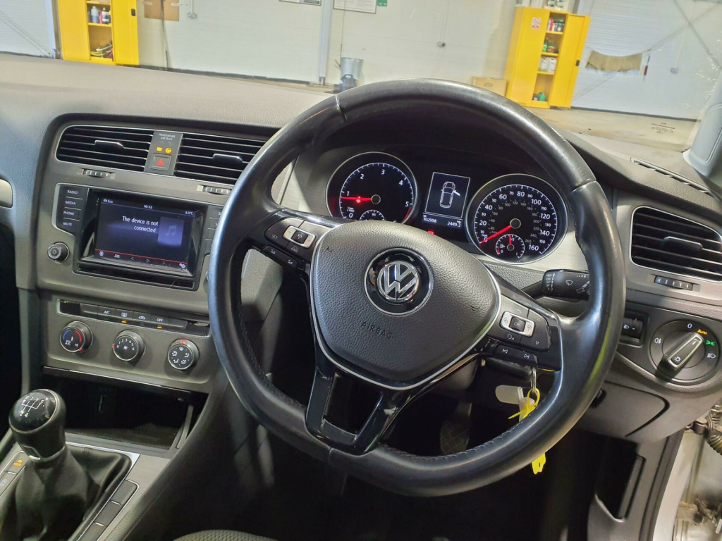 ONE TANK OF DIESSEL WILL DO ABOUT 750 = 800 MILES ----This 2013 Volkswagen Golf TDI SE offers exceptional value with its remarkably low mileage of just 103,000 miles for a vehicle of its age. This particular Golf is equipped with a 1.6 litre diesel engine and features Automatic Distance Control including adaptive cruise control, Bluetooth telephone preparation, manual air conditioning, and automatic dusk sensing headlights.This Golf TDI SE is a sensible choice, boasting a low insurance group and an impressive fuel economy of 74 miles per gallon, which is significantly better than many other vehicles in its class. Furthermore, its low CO2 emissions make it an environmentally conscious option, and you will appreciate the generous boot space for all your luggage needs. v socket, 12v socket - luggage compartment, 16in alloy wheels - toronto, abs - anti-lock braking system, adc - automatic distance control, asr - anti slip regulation, air conditioning - manual, airbags - curtain front and rear, airbags - driver, airbags - drivers knee, airbags - front passenger, airbags - front passenger with deactivation switch, airbags - front seat side impact, alarm with interior protection, armrest - front centre with ventilation nozzles x2, automatic dimming rear view mirror, aux-in socket, bluetooth telephone preparation, body coloured bumpers and door handles, body-coloured door mirrors with integrated indicators, brake pad wear indicator, central locking - remote with 2 remote keys, child locks in rear doors, city emergency braking system, composition media system, convenience pack, cruise control, cup holders - front and rear, dab - digital radio reception, daytime running lights, decor - brushed stainless steel, differential lock - electronic, door mirrors - electrically adjustable and heated, driver alert system, driver profile choices, dust and pollen filter, esp - electronic stability programme, electric windows - front and rear, electronic parking brake with auto hold function, first-aid kit and warning triangle - holder only, front assist including city emergency braking, front seat back storage pockets, full size steel spare wheel, glovebox - illuminated - cooled - lockable, grab handles - front x2 rear x2 with coat hooks, hba - hydraulic brake assist, head restraints - front whiplash optimised, headlights - coming-leaving home function, headlights - dusk sensor - automatic driving lights, headlights - halogen clear - range adjustable, heated rear windscreen, height and reach adjustable steering column, height-adjustable front three-point seat belts with tensioners, high level 3rd brake light - led, isofix child seat preparation for 2 rear seats, instrument lighting - white adjustable panel illumination, leather trimmed three-spoke steering wheel and gear knob, lighting dial - chrome look, lights on warning buzzer, load lashing points x4 in luggage compartment, load-through provision, luggage compartment - hooks, luggage compartment cover, luggage compartment light, luggage compartment storage area on right, mdi - multi device interface, multifunction computer - 3.5in display, multifunction computer - includes visual gear change recommendation, multiple impact brake activation, power assisted steering - speed sensitive, pre-crash preventive occupant protection, push - push tank flap, radar sensor controlled distance monitoring system, radiator grille - black with chrome louvres, radio & single cd player mp3 compatible, rain sensor, reading lights - front x2 and rear x2, rear centre armrest, rear diffuser - black, rear windscreen wiper with intermittent wipe function, sd card reader, safeguard against incorrect fuel, seatbelt reminder, seats - front comfort, seats - front lumbar support, seats - height adjustment - front, seats - rear backrest with automatic folding, spare wheel - space saver, speakers x8, split folding rear backrests 60-40, spoiler - tailgate, steering wheel - audio controls, storage - cover for area in roof console, storage compartment in centre console covered, storage compartment in front doors, storage compartment in rear doors, storage compartment in roof console, sun visors - vanity mirrors and illuminated, temperature display - external, three rear head restraints, tinted glass - heat insulating, tyre pressure monitoring system - electronic, under seat drawers - front, variable boot floor, xds electronic differential lock