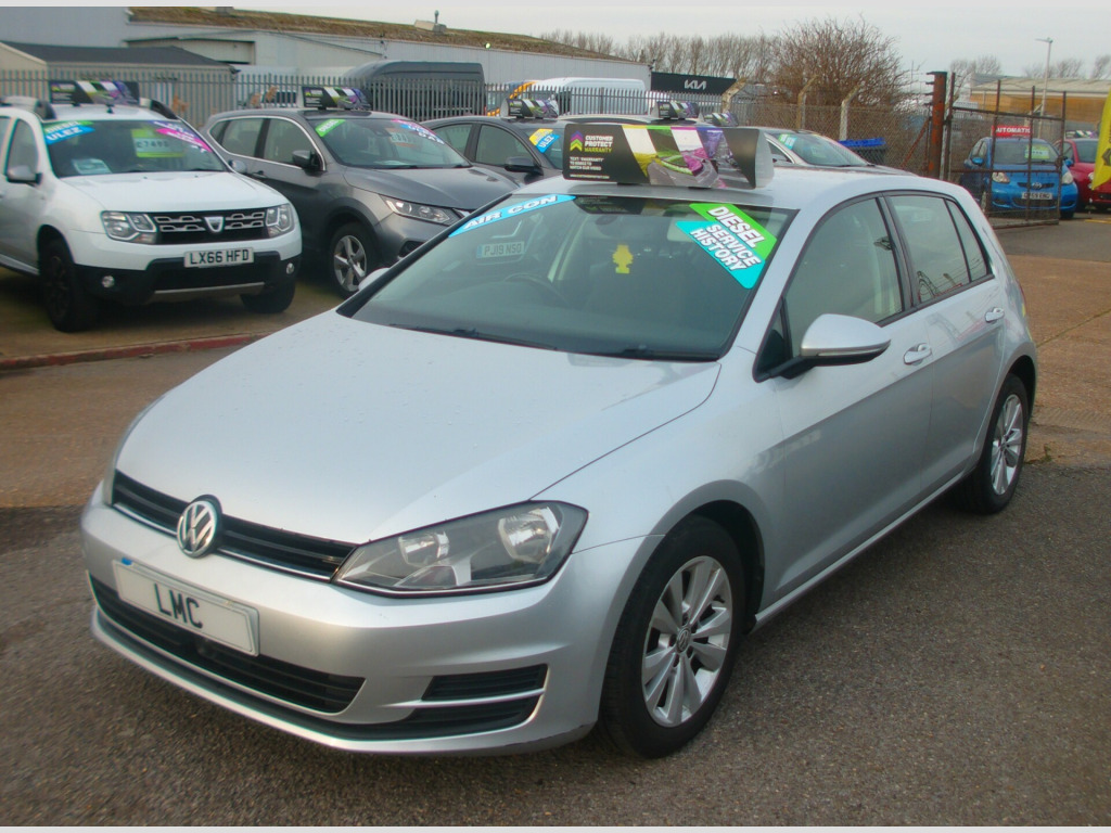 £20 A YEAR ROAD TAX ON THIS 2013 VOLKSWAGEN GOLF 1.6 TDI BLUEMOTION SE 5 DOOR, SILVER, 98333 MILES, 8 STAMP SERVICE HISTORY, DAB RADIO, BLUETOOTH, CD PLAYER, CRUISE CONTROL, AIR CON, HEATED E/MIRRORS, E/WINDOWS, ISOFIX, ABS, C/LOCKING, MULTI AIR BAGS, R/W/WIPE, 16'' ALLOY WHEELS, SUSSEX, EAST SUSSEX, EASTBOURNE, BN23 6PJ, 01323 643326, r conditioning, bluetooth connection, adaptive cruise control, multi-function steering wheel, power steering, traction control, abs, isofix child seat anchor points, multiple airbags, central locking, electric mirrors, electric windows, heated door mirrors, cd player, alloy wheels, colour coded body, rear wash/wipe, dab radio, zero admin charge, £20 a year road tax