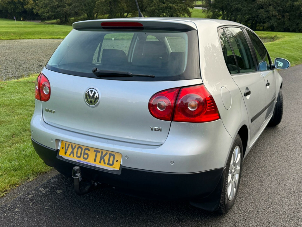 We are pleased to be presenting this 2006 Volkswagen Golf 1.9 TDI SE DSG 5dr, finished in silver and showing just 64,000 miles. This example has had 2 owners, originally an ex-demonstrator at a Volkswagen main dealer before residing with one private keeper since.As part of our pre-sale preparation, we have replaced the cam-belt, water pump, all filters, and the dual mass flywheel.Running costs are sensible with £265 annual road tax, and the proven 1.9 TDI engine paired with the DSG automatic gearbox provides smooth performance and excellent reliability.Being the SE trim, it comes well equipped with cruise control, air conditioning, and full electric windows.Condition is superb inside and out, a genuine low-mileage example that drives perfectly.As with all our vehicles, this Volkswagen has been treated to a multi-stage valet using the best products Auto Glym have to offer. Every car we sell receives, at minimum, a service as part of our pre-sale preparation. Supplied with 12 months MOT without advisory, our complimentary 3-month warranty, 12 months free AA breakdown cover, and 2 keys.Please do not hesitate to get in touch via Text, Call or Email at any time to arrange a viewing and test drive. Viewing available by appointment only. To find out more about us, head to our website at WWW.QWERTY-AUTOMOTIVE.CO.UK. Whilst every effort has been made to ensure the accuracy of the above information, sometimes errors may occurplease check with a salesperson. r-conditioning - 2zone climate control, electric rear windows (5 door only), parking sensor - rear, 10 speakers, 12v socket in luggage compartment, abs (anti - lock braking system) with hba (hydraulic brake assist), additional storage compartment in roof console, air conditioning, climatic semi - automatic control, alarm with interior protection, alloy wheels, four 6.5j x 15in misano with 195/65 r15 tyres and anti-theft wheel bolts, anthracite interior trim, automatic dimming interior rear-view mirror, body - coloured bumpers, centre rear seat belt, cruise control, cup holder, front x 2 and rear x 1, drivers airbag, dusk sensor, automatic driving lights, edl (electronic differential lock), esp (electronic stabilisation programme), electric windows, front, electrically heated and adjustable door mirrors, electronic engine immobiliser, front comfort seats with height adjustment, front footwell illumination, reading lights fr. and rear, front passengers airbag with deactivation switch, front seat side impact airbags and curtain airbag system for front and rear passengers, front seats with lumbar adjustment, head restraints - front x2 active/rear x 3, heat insulating tinted glass, height and reach adjustable steering wheel, isofix child seat preparation (for 2 rear child seats), power-assisted steering, speed-sensitive, radio/cd player, rain sensor, rear screen wash/wipe, remote central locking with 2 remote folding keys, split folding rear seats, steel space saver spare wheel, third brake light, upholstery - opera loop velour