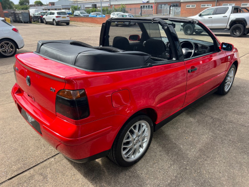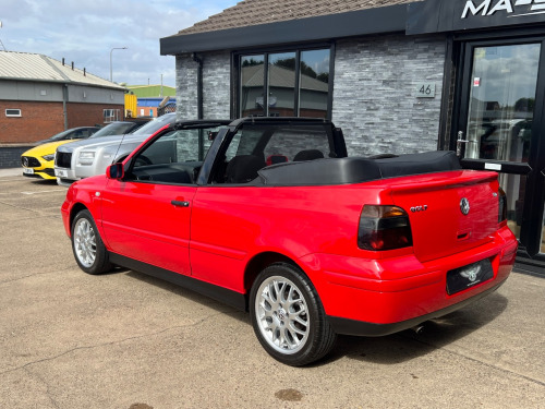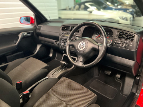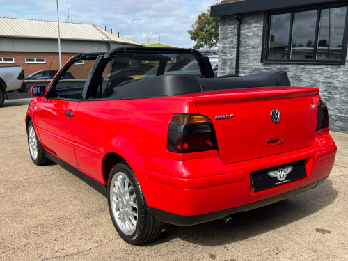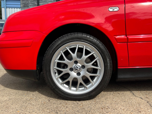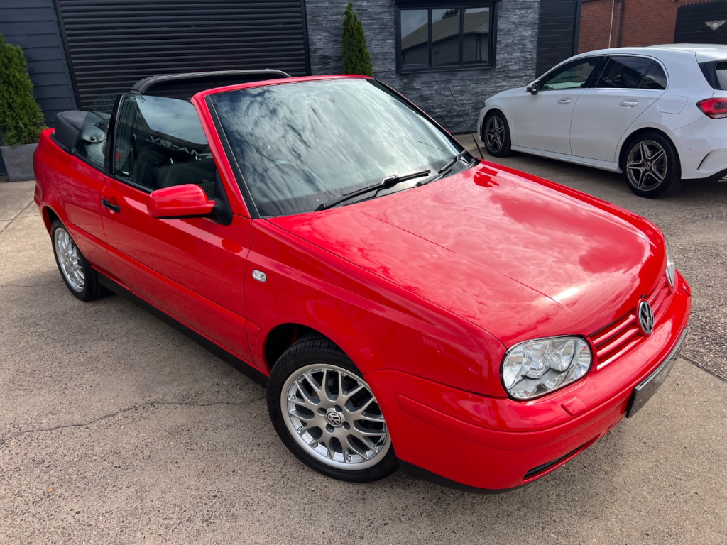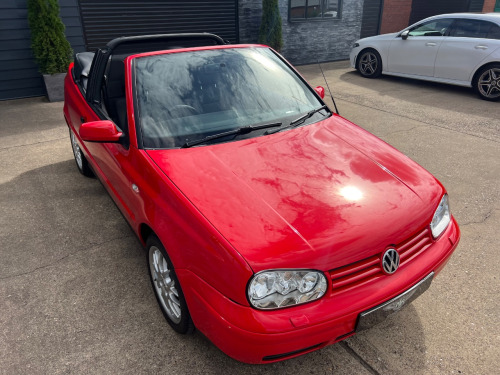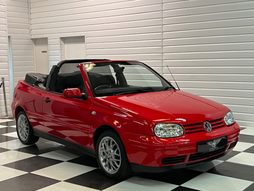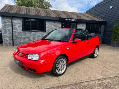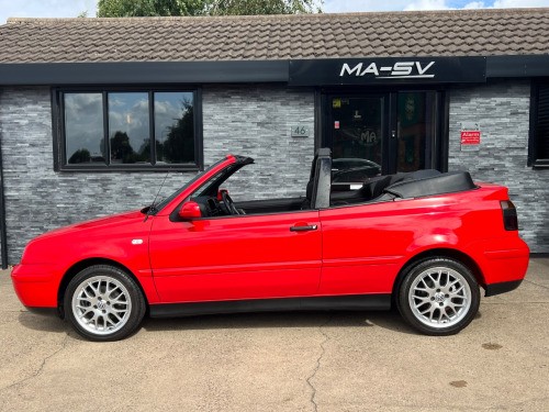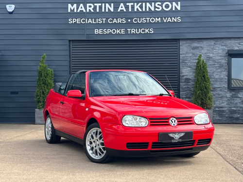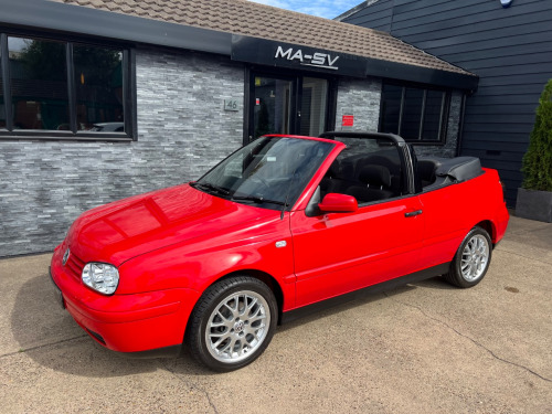 Registered new on the 1st of March 2001 by Volkswagen Group UK, Bicester, Oxford as a VW owned car, the car has been cherished from new with only two keepers, the last keeper kept the car for 21 years, in the history file, we have the original purchase invoice from the last owner, who purchased from Whites Volkswagen LTD on the 27/12/2004, at only 1,100 miles, at 3 years old. The history file contains the original book pack, service book and even the original sales brochure. A large hardback folder of receipts and invoicing showing two cambelt changes, once at VW with receipts, and most recently in 2021 at 23,289 miles, at VAS Works, an independent Volkswagen specialist - who have maintained the vehicle with servicing also, every receipt for MOT’s, tyres, and other general service itemsThe bodywork is in fantastic order, with a deep gloss shine to the Flash red paintwork. All recent tyres, the black mohair hood looks as new as it was back in 2001, and electrically folds at the touch of a button, the roofs tonneau cover is also present. Inside the Golf you’ll find the original VW Gamma radio and cassette player, 6 CD changer located In the boot, fully electric windows front and rear, electric mirrors, unworn black and graphite sport seats, and carpet over mats. This 2001 Golf Cabriolet has most certainly been dry stored garaged, and pampered all its life. The nicest example you will find of this retro modern appreciating classic. Supplied with 12 Months MOT, 2 keys.Please watch our YouTube walk around video on this pristine Golf, located through our website.Please call Harvey on 0777 111 20 40 to enquire. Part Exchange welcome.www.Martinatkinsoncars.co.uk
