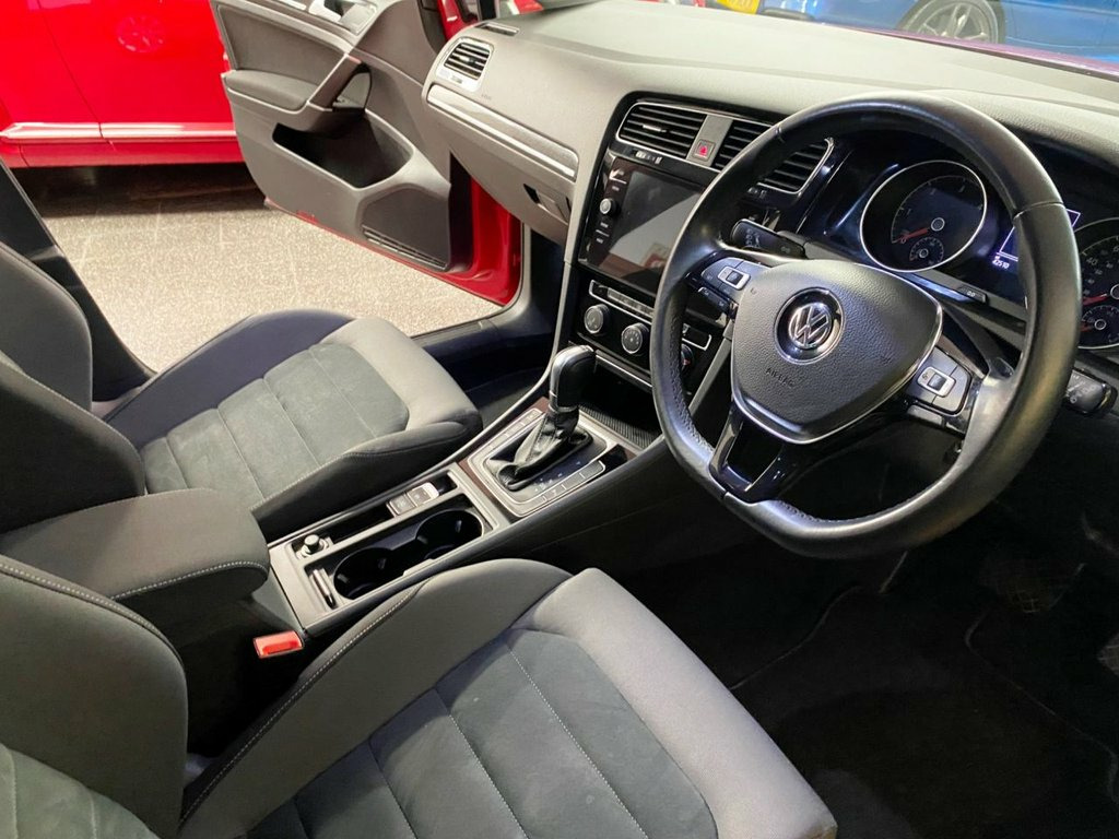 New Front Brake Pads - All wheels just refurbished to Gloss Black! This ULEZ Compliant Diesel Automatic is finished in Tornado Red with grey cloth and suede trim. It is fitted with power steering, Satellite Navigation, remote locking, electric windows and heated power mirrors with power fold, air conditioning, cruise control , front and rear parking sensors, auto lights, flat bottomed steering wheel, Hill Assist, Bluetooth, 10 Spoke Newly Refurbed Gloss Black Alloy wheels, tinted glass, App Connect, Apple Play/Android DAB Stereo with Aux & USB port and more. It has had 3 owners from new, and is complete with an excellent service history at VW and independently DONE AT 9124/11142/28423/38663/41482/53646/67000 miles. The current MOT is until April. We will supply it with 12 months and a service if required, along with 6 months RAC warranty and 12 months breakdown cover. Finance available from 9.9% APR and extended warranties are available, which can be paid for monthly. In red with contrasting Gloss Black wheels, this Golf is superb throughout, providing performance and is also very economical to run. 12V Socket - Luggage Compartment, 17in Alloy Wheels - Dijon, ABS - Anti-Lock Braking System with HBA , Adaptive Cruise Control, Air Conditioning - Manual, Airbags, Alarm with Interior Protection, Ambient Lighting Pack, Automatic Coming-Leaving Home Lighting F, Automatic Post-Collision Braking System, Bag Hooks in the Luggage Compartment x2, Black Front Air Intake and Radiator Gril, Body Coloured Bumpers, Body Coloured Door Handles, Body-Coloured Door Mirrors with Integrat, Brake Pad Wear Indicator, Car-Net App Connect, Carpet Mats - Front and Rear, Child Security Locks in the Rear Doors, Chrome Plated Air Vent Surrounds, Chrome Plated Electric Mirror Adjustment, Chrome Plated Electric Window