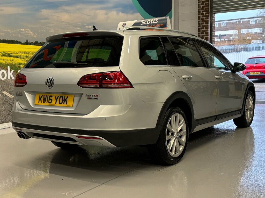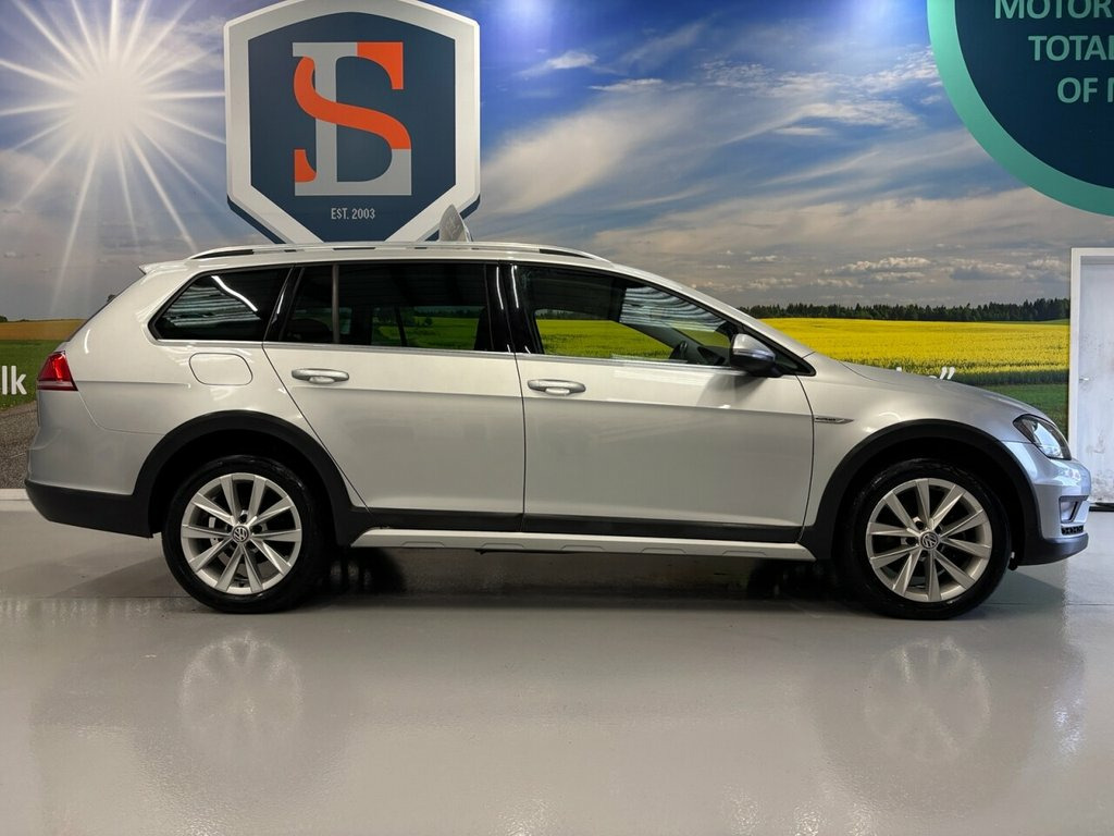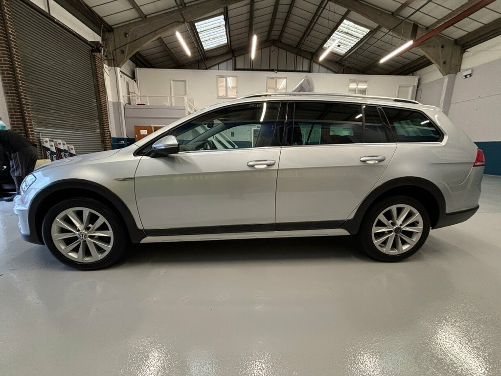 Scott's of Leeds used Car Sales are pleased to offer this VOLKSWAGEN GOLF 2.0 TDI BlueMotion Tech Alltrack Estate 5 Door Diesel Automatic DSG in Silver. The car is in good condition throughout, in a lovely colour combination and a great specification including Satellite navigation, Bluetooth, Cruise control, Front & rear parking sensors, DAB digital radio, Voice command, USB point, Aux point, Automatic lights, Privacy glass, CD player, Electric folding mirrors, Electric windows, Drivers armrest, Isofix, Alloy wheels and much much more. The car will be supplied with an up to date service record including 9 services having just been serviced in our Workshop, an MOT until January 2027 and 2 Keys ready to drive away. The car has also had a HALDEX service in 2022. 3 MONTH NATIONWIDE WARRANTY provided with all vehicles. NATIONWIDE DELIVERY also available. A guaranteed 12 Months MOT can be added for an extra £100. DISCLAIMER: The above specification is true and correct. Any other specification listed elsewhere can sometimes be incorrect. Please check with Sales Executive to clarify this if needed prior to purchase. 12V Socket - Luggage Compartment, 17in Alloy Wheels - Valley, ABS Plus - Anti-Lock Braking System with, Adaptive Cruise Control ACC Including Fr, Airbags, Alarm, Alltrack Styling Pack, Ambient Lighting, Automatic Coming-Leaving Home Lighting F, Automatic Post-Collision Braking System, Bag Hooks in the Luggage Compartment, Black Front Air Intake and Radiator Gril, Body Coloured Bumpers, Body Coloured Door Handles, Body-Coloured Door Mirrors with Integrat, Body-Coloured Roof Spoiler - Rear, Brake Pad Wear Indicator, Carpet Mats, Cherry Red Rear Light Clusters, Child Security Locks in the Rear Doors, Chrome Plated Air Vent Surrounds, Chrome Plated Electric Mirror Adjustment, Chrome Plated Elect
