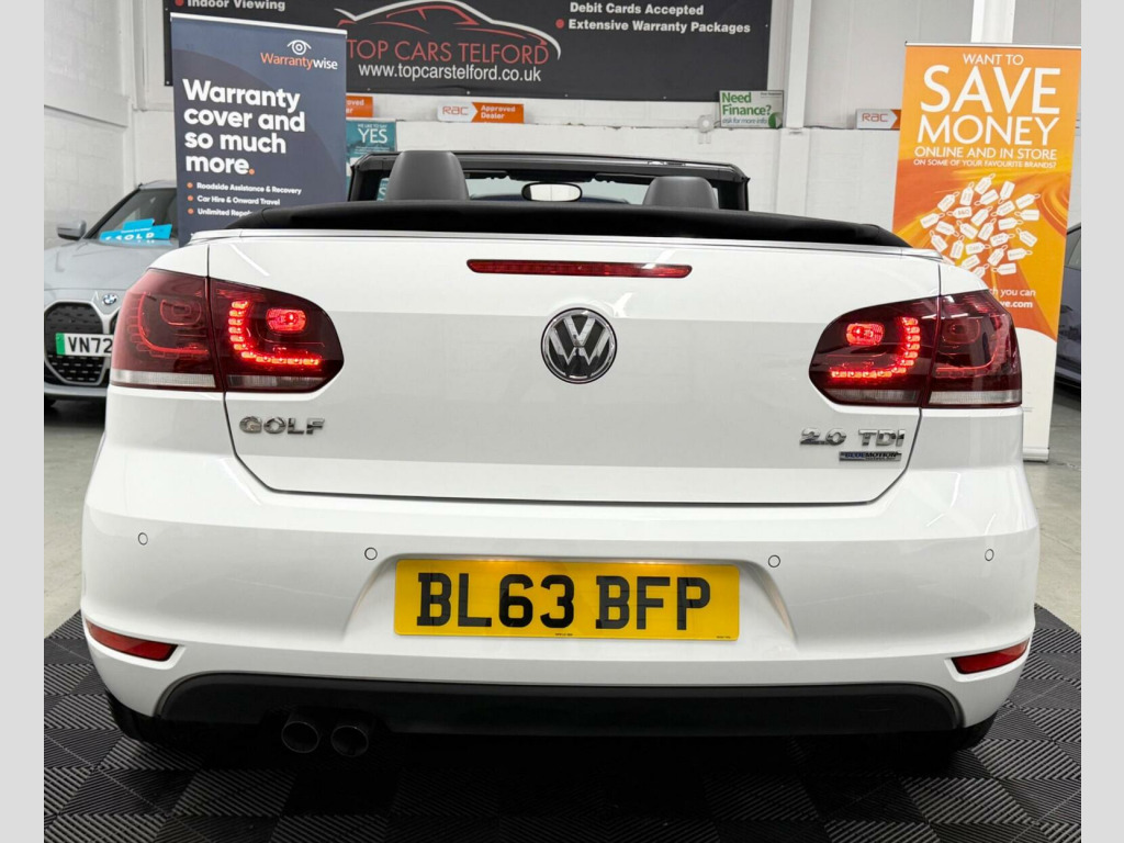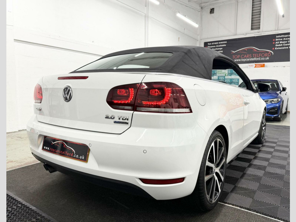 JUST ARRIVED PLEASE CALL TO REGISTER YOUR INTREST OR RESERVE ONLINE £99 DEPOSIT FULLY REFUNDABLE SUBJECT TO VIEW, IMMACULATE LOW MILEAGE VOLKSWAGEN GOLF 2.0 TDI BLUEMOTION GT EDITION CABRIOLET DSG AUTO IN ARGUABLY THE MOST DESIRABLE COLOUR PURE WHITE BARGAIN NOT TO NE MISSED OUT ON POSSIBLY THE CHEAPEST IN THE COUNTRY PRICE MATCH PROMISE, FULL SERVICE HISTORY RECENT SERVICE INCLUDING THE ALL IMPORTANT CAMBELT CHANGE, PRE DELIVERY INSPECTION TO BE COMPLETED PRIOR TO SALE INCLUDING NEW MOT FOR TOTAL PEACE OF MIND, HPI CLEAR NATIONWIDE WARRANTY £0 DEPOSIT LOW RATE FINANCE DRIVE AWAY TODAY FROM £40P/ WEEK SUBJECT TO STATUS,FINANCE SPECIALISTS HP/PCP AVAILABLE FROM AS LITTLE AS %8.9%APR, CLICK AND COLLECT BUY ONLINE PLUS NATIONWIDE DELIVERY FREE FOR THE FIRST 100 MILES WITHIN 48 HOURS T&C APPLY, DRIVE AWAY IN ONE HOUR ON SITE, TRULY IN OUTSTANDING CONDITION WELL MAINTAINED CREDIT TO ITS PREVIOUS MATURE OWNER INTERIOR PLUS ROOF IN IMMACULATE CONDITION HIGHLY POPULAR AND ATTRACTIVE SUPERB PERFORMANCE DRIVES LIKE A DREAM STUNNING LOOKS, VIEWING ESSENTIAL DO NOT MISS OUT ON THIS BEAUTIFUL GT GOLF BRILLIANT SPEC, COMES COMPLETE WITH ALL ITS PAPERWORK TO HAND 2 KEYS, Truly a Unique Opportunity At Exceptional Value At TopCarsTelford We Pride Ourselves in Only Selling Top Quality Cars That Are Fully inspected HPI Checked CLEAR with report providing you with complete peace of mind viewing highly recommended you will not be disappointed, EXTENDED WARRANTY AVAILABLE, 5 DAY DRIVE AWAY INSURANCE, ALL MAJOR DEBIT/CREDIT CARDS ACCEPTED indoor viewing available by appointment for any online enquires Please visit our website WWW.TOPCARSTELFORD.CO.UK for more info BUY WITH COMPLETE CONFIDENCE AND AFTERCARE