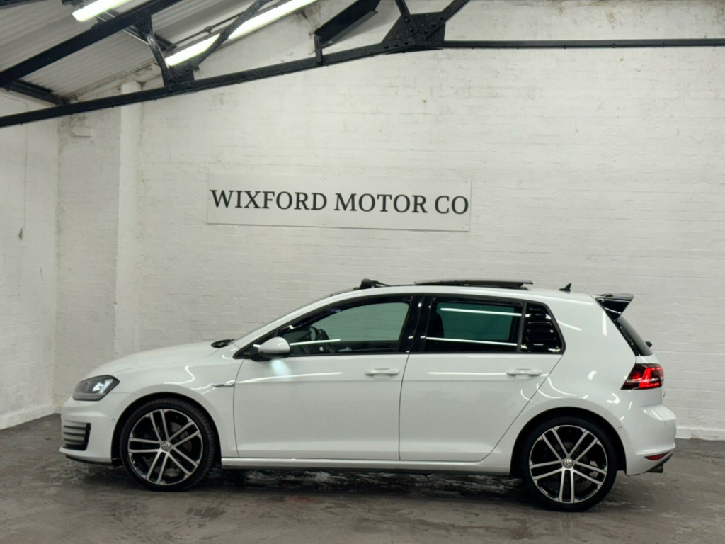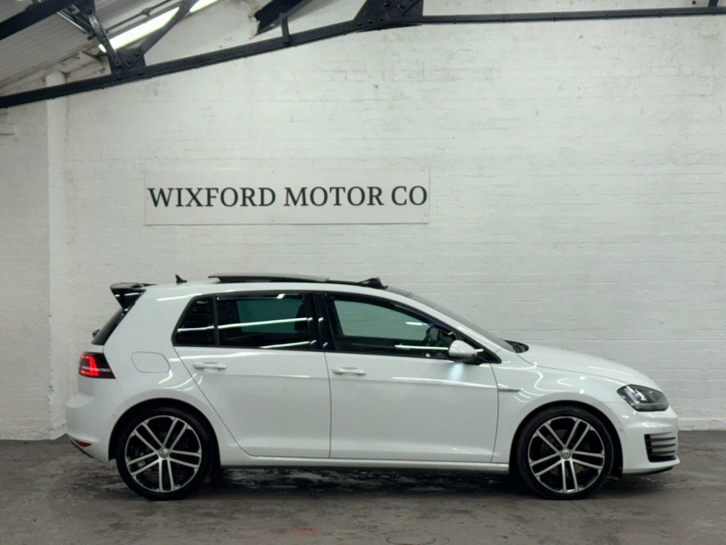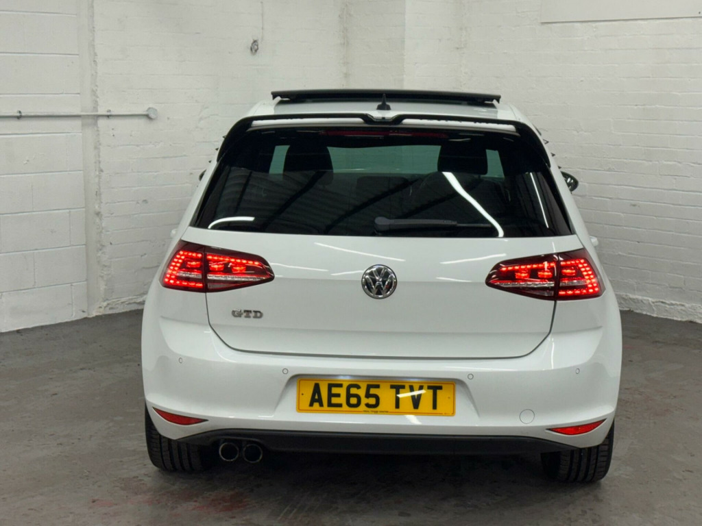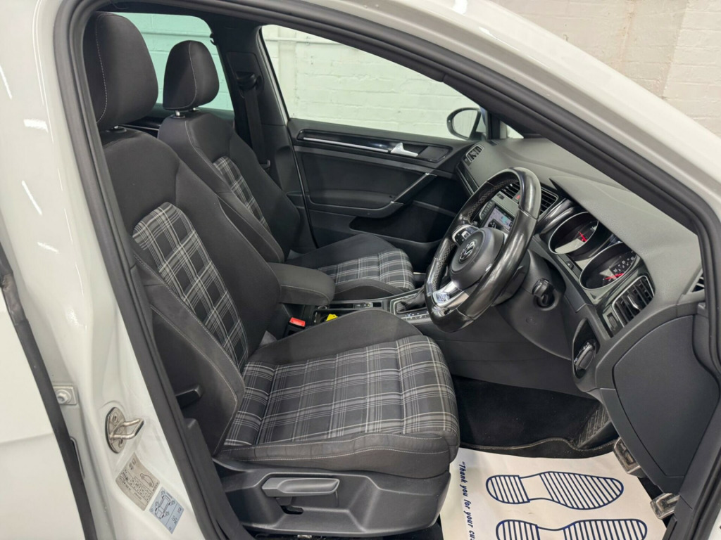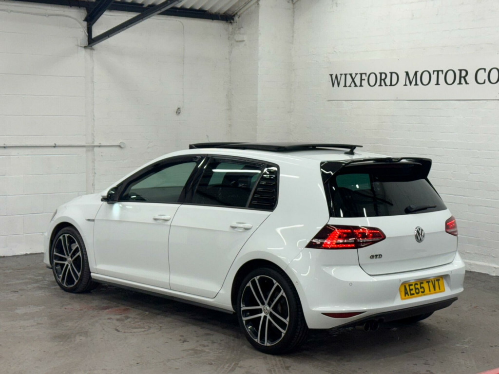Stunning superb spec Golf GTD finished in Metallic White. Full service history including gearbox service twice, supplied with two keys.Spec includes apple car play, sat nav, adaptive cruise control, panoramic glass sunroof, park assist, heated seats, auto xenon headlightsThis 2015 Volkswagen Golf TDI GTD presents a clear vehicle history, offering peace of mind alongside its impressive performance. Powered by a 2.0 litre diesel engine, this Euro 6 compliant model combines efficiency with a brisk 0-62mph acceleration in just 7.5 seconds. The GTD trim boasts desirable features including a panoramic sunroof, a parking pack for effortless manoeuvring, and stylish 18 inch Serron alloy wheels. Further enhancing comfort and privacy, it includes heat insulating tinted glass from the B pillar backwards, absorbing 90% of light. Connectivity is also a strong point with Car-Net App Connect.The generous boot space ensures practicality for everyday needs and longer journeys. The inclusion of the panoramic sunroof, a parking pack, and the desirable 18 inch alloy wheels are features that elevate this Golf GTD above many others in its class. These additions contribute to a more enjoyable and convenient driving experience, making this Volkswagen Golf a compelling choice for those seeking a well equipped and capable hatchback. vanced telephone connection, car-net app connect, park assist, parking pack, 18in alloy wheels - serron, panoramic sunroof, tinted glass - heat insulating rear 90% light absorbing from b pillar backwards, 12v socket, 12v socket - luggage compartment, 18in alloy wheels - nogaro, 2 zone electronic climate control with automatic air recirculation, abs - anti-lock braking system, asr - anti slip regulation, air vent surrounds - chrome effect, airbags - curtain front and rear, airbags - driver, airbags - drivers knee, airbags - front passenger, airbags - front passenger with deactivation switch, airbags - front seat side impact, alarm with interior protection, ambient lighting, anti-theft wheel bolts, anti-tramp function for esp, armrest - front centre with ventilation nozzles x2, automatic dimming rear view mirror, automatic post-collision braking system, aux-in socket, bluetooth telephone preparation, body coloured bumpers and door handles, body coloured side sills, body-coloured door mirrors with integrated indicators, brake calipers - grey, brake pad wear indicator, bumpers - front and rear - uniquely shaped, carpet mats - front and rear, central locking - remote with 2 remote keys, child locks in rear doors, chrome air inlets, chrome trimmed front air intake grille surround, city emergency braking system, composition media system, convenience pack, cruise control, cup holders - front and rear, cup holders - front x2, cup holders - rear x2, dab - digital radio reception, dashboard - gloss black panel, daytime running lights - led, differential lock - electronic, door mirrors - electrically adjustable-heated and folding, door mirrors - puddle lights, door mirrors - reverse activated kerb view adjustment on passengers, door panels - cyclone decorative inserts, door sill protectors - illuminated, driver alert system, driver profile choices, dust and pollen filter, esp - electronic stability programme, electric windows - front and rear, electronic engine immobiliser, electronic parking brake with auto hold function, exhaust tailpipes - twin, extended sill strips - flared, first-aid kit and warning triangle - holder only, footwell illumination - front, front assist including city emergency braking, front fog lights - led, front seat back storage pockets, glovebox - illuminated - cooled - lockable, grab handles - front x2 rear x2 with coat hooks, hba - hydraulic brake assist, head restraints - front whiplash optimised, headlight washer system, headlights - bi-xenon - gas discharged, headlights - coming-leaving home function, headlights - dusk sensor - automatic driving lights, headlining - black, height and reach adjustable steering column, high level 3rd brake light - led, isofix child seat preparation for 2 rear seats, instrument lighting - white adjustable panel illumination, interior lighting delay, led rear number plate lights, leather trimmed handbrake grip, lighting dial - chrome look, lights on warning buzzer, load lashing points x4 in luggage compartment, load-through provision, luggage compartment - hooks, luggage compartment cover, luggage compartment light, luggage compartment storage area on right, mdi - multi device interface with usb - ipod connection cables, mirror pack, misfuel prevention device, multifunction computer - colour, multiple impact brake activation, optical parking display via vehicles audio system, parking sensors - front, parking sensors - rear, pedals - stainless steel, power assisted steering - speed sensitive, pre-crash preventive occupant protection, radar sensor controlled distance monitoring system, radiator grille - black with chrome louvres, radiator grille - chrome outline around the logo, radio & single cd player mp3 compatible, radio aerial integrated into rear windscreen, rain sensor, reading lights front x2 and rear x2 - led, rear centre armrest, rear diffuser - black, rear lights incorporating led technology, rear tail lights - led, roof lining - black, sd card reader, safeguard against incorrect fuel, seatbelt reminder, seats - front lumbar support, seats - front sports, seats - height adjustment - front, seats - rear backrest with automatic folding, service interval display, smoked rear light clusters, spare wheel - space saver steel, speakers x8, specific aluminium inlay, split folding rear backrests 60-40, spoiler - tailgate, static cornering function, steering wheel - 3-spoke - leather trimmed - multifunction with grey stitching, steering wheel - audio controls, steering wheel - paddle shift, storage - cover for area in roof console, storage compartment in centre console covered, storage compartment in front doors, storage compartment in rea