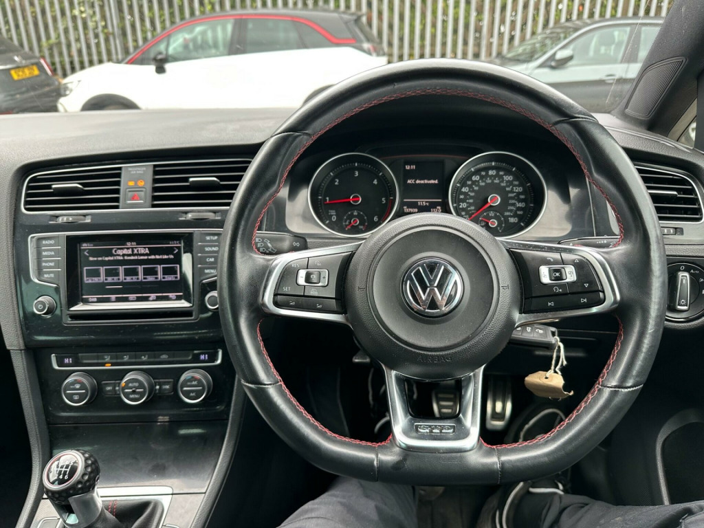 This 2014 Volkswagen Golf TDI GTD offers a compelling blend of performance and practicality.  Powered by a robust 2.0 litre diesel engine, this Euro 6 compliant model delivers an impressive 0-62mph acceleration in just 7.5 seconds, showcasing its dynamic capabilities.  The GTD trim level ensures a well appointed interior, featuring convenient Bluetooth telephone preparation for seamless connectivity and a 2 zone electronic climate control system for personalised comfort.  Navigating tight spaces is made easier with the inclusion of rear parking sensors, while the adaptive cruise control, known as Automatic Distance Control, enhances the driving experience on longer journeys.  Furthermore, the Golf boasts a generously sized boot, providing ample space for luggage or shopping.The Bi-Xenon headlights not only provide excellent illumination but also contribute to the Golf's sophisticated appearance, setting it apart from other vehicles in its class. The combination of its brisk acceleration, advanced driver aids like adaptive cruise control and rear parking sensors, and the practical large boot space makes this Volkswagen Golf TDI GTD a well rounded choice for those seeking a capable and comfortable hatchback. v socket, 12v socket - luggage compartment, 18in alloy wheels - nogaro, 2 zone electronic climate control with automatic air recirculation, abs - anti-lock braking system, adc - automatic distance control, asr - anti slip regulation, air vent surrounds - chrome effect, airbags - curtain front and rear, airbags - driver, airbags - drivers knee, airbags - front passenger, airbags - front passenger with deactivation switch, airbags - front seat side impact, alarm with interior protection, ambient lighting, anti-theft wheel bolts, anti-tramp function for esp, armrest - front centre with ventilation nozzles x2, automatic dimming rear view mirror, automatic post-collision braking system, aux-in socket, bluetooth telephone preparation, body coloured bumpers and door handles, body coloured side sills, body-coloured door mirrors with integrated indicators, brake calipers - grey, brake pad wear indicator, bumpers - front and rear - uniquely shaped, carpet mats - front and rear, central locking - remote with 2 remote keys, child locks in rear doors, chrome air inlets, chrome trimmed front air intake grille surround, city emergency braking system, composition media system, convenience pack, cruise control, cup holders - front and rear, cup holders - front x2, cup holders - rear x2, dab - digital radio reception, dashboard - gloss black panel, daytime running lights - led, differential lock - electronic, door mirrors - electrically adjustable-heated and folding, door mirrors - puddle lights, door mirrors - reverse activated kerb view adjustment on passengers, door panels - cyclone decorative inserts, door sill protectors - illuminated, driver alert system, driver profile choices, dust and pollen filter, esp - electronic stability programme, electric windows - front and rear, electronic engine immobiliser, electronic parking brake with auto hold function, exhaust tailpipes - twin, extended sill strips - flared, first-aid kit and warning triangle - holder only, footwell illumination - front, front assist including city emergency braking, front fog lights - led, front seat back storage pockets, glovebox - illuminated - cooled - lockable, grab handles - front x2 rear x2 with coat hooks, hba - hydraulic brake assist, head restraints - front whiplash optimised, headlight washer system, headlights - bi-xenon - gas discharged, headlights - coming-leaving home function, headlights - dusk sensor - automatic driving lights, headlining - black, height and reach adjustable steering column, high level 3rd brake light - led, isofix child seat preparation for 2 rear seats, instrument lighting - white adjustable panel illumination, interior lighting delay, led rear number plate lights, leather trimmed handbrake grip, lighting dial - chrome look, lights on warning buzzer, load lashing points x4 in luggage compartment, load-through provision, luggage compartment - hooks, luggage compartment cover, luggage compartment light, luggage compartment storage area on right, mdi - multi device interface with usb - ipod connection cables, mirror pack, misfuel prevention device, multifunction colour display, multifunction computer - 3.5in display, multifunction computer - includes visual gear change recommendation, multiple impact brake activation, optical parking display via vehicles audio system, parking sensors - front, parking sensors - rear, pedals - stainless steel, power assisted steering - speed sensitive, pre-crash preventive occupant protection, radar sensor controlled distance monitoring system, radiator grille - black with chrome louvres, radiator grille - chrome outline around the logo, radio & single cd player mp3 compatible, radio aerial integrated into rear windscreen, rain sensor, reading lights - front x2 and rear x2, reading lights front x2 and rear x2 - led, rear centre armrest, rear diffuser - black, rear lights incorporating led technology, rear tail lights - led, roof lining - black, sd card reader, safeguard against incorrect fuel, seatbelt reminder, seats - front lumbar support, seats - front sports, seats - height adjustment - front, seats - rear backrest with automatic folding, service interval display, smoked rear light clusters, spare wheel - space saver steel, speakers x8, specific aluminium inlay, split folding rear backrests 60-40, spoiler - tailgate, static cornering function, steering wheel - 3-spoke - leather trimmed - multifunction with grey stitching, steering wheel - audio controls, storage - cover for area in roof console, storage compartment in centre console covered, storage compartment in front doors, storage compartment in rear doors, storage compartment in roof console, styling pack for gtd, sun visors - vanity mirrors and illuminated, suspension - sports - lowered by approx 15mm, tem