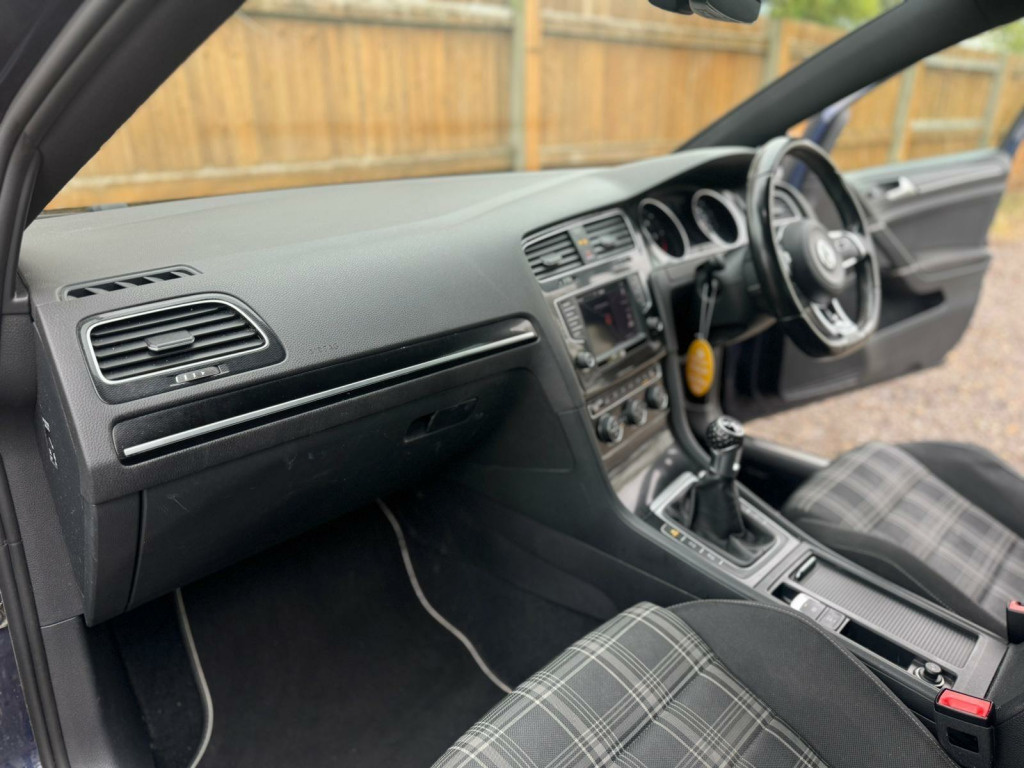 This 2017 Volkswagen Golf TDI GTD offers an impressive blend of performance and practicality. Powered by a 2.0 litre Euro 6 diesel engine, this GTD variant boasts a swift 0-62mph acceleration time of just 7.5 seconds. Keyless entry with a start-stop button provides convenient access and ignition, while front and rear parking sensors, along with Bi-Xenon dipped and main beam headlights featuring LED daytime running lights, enhance both safety and visibility. The inclusion of Bluetooth telephone preparation ensures seamless connectivity on the go.Beyond its dynamic capabilities, this Golf TDI GTD provides ample space for your luggage, thanks to its large boot. The combination of its efficient diesel engine, responsive acceleration, and advanced parking assistance systems demonstrates how this vehicle stands out from others in its class, offering a superior driving experience for everyday journeys and longer trips alike. v socket, 12v socket - luggage compartment, 18in alloy wheels - nogaro, 2 zone electronic climate control with automatic air recirculation, abs - anti-lock braking system, asr - anti slip regulation, air vent surrounds - chrome effect, airbags - curtain front, airbags - curtain rear, airbags - driver, airbags - drivers knee, airbags - front passenger, airbags - front passenger with deactivation switch, airbags - front seat side impact, alarm with interior protection, ambient lighting - white, ambient lighting pack, anti-theft wheel bolts, anti-tramp function for esp, armrest - front centre with storage compartment, automatic dimming rear view mirror, automatic post-collision braking system, bluetooth audio connection, bluetooth telephone preparation, body coloured bumpers, body coloured door handles, body-coloured door mirrors with integrated indicators, brake calipers - grey, brake pad wear indicator, branded points of interest for sat nav, bumpers - unique gtd, car information display, car-net guide and inform (3 year subscription from new), carpet - black, carpet mats - front and rear, central locking - remote with 2 remote keys, centre console - cyclone decorative inserts, child locks in rear doors, chrome plated electric mirror adjustment switch surround, chrome plated electric window button surrounds, chrome trimmed front air intake grille surround, chrome-plated light switch surround, colour touch screen - 6.5in, composition media system, convenience pack, cruise control - adaptive, cup holders - front x2, cup holders - rear armrest x2, dab - digital radio reception, dashboard - cyclone decorative inserts, daytime running lights - led, differential lock - electronic - xdsplus, discover navigation touch-screen navigation radio system, door mirrors - electrically adjustable-heated and folding, door mirrors - puddle lights, door mirrors - reverse activated kerb view adjustment on passengers, door panels - cyclone decorative inserts, door sill protectors - illuminated, driver alert system, driver profile selection, dust and pollen filter, dynamic curve lighting, esp - electronic stability programme, electric windows - front and rear, electronic engine immobiliser, electronic parking brake with auto hold function, european mapping data, exhaust tailpipes - chrome twin, extended sill strips - flared, first-aid kit and warning triangle - holder only, footwell illumination - front x2, front air intake - black honeycomb, front assist including city emergency braking, front fog lights - led, front seat back storage pockets, gtd exterior badge, gas discharge - bi-xenon dipped and main beam headlights with led daytime running lights, gear knob gaiter - gtd logo and grey stitching, gear shift indicator, glovebox - illuminated - cooled - lockable, grab handles - front x2 rear x2 with coat hooks, hba - hydraulic brake assist, head restraints - front whiplash optimised, headlight washer system, headlights - automatic range adjustment, headlights - coming-leaving home function, headlights - dusk sensor - automatic driving lights, heated front seats, heated rear windscreen, heated windscreen washer jets, height and reach adjustable steering column, height-adjustable front three-point seat belts with tensioners, high level 3rd brake light - led, isofix child seat preparation for 2 rear seats, instrument lighting - white adjustable panel illumination, interior lighting delay, keyless entry - with start-stop button, keys - folding x 2, led rear number plate lights, leather gaiter on gear lever, leather trimmed gear knob, leather trimmed three-spoke steering wheel and gear knob, light strips below trim in front doors, lights in front door armrests, lights on warning buzzer, load lashing points x4 in luggage compartment, load-through provision, load-through provision converts to table function, low washer fluid warning light, luggage compartment - hooks, luggage compartment cover, luggage compartment light, luggage compartment storage area on right, mdi - multi device interface with usb - ipod connection cables, map view - 2d and 3d, mirror pack, misfuel prevention device, multifunction computer - colour, optical parking display via vehicles audio system, parking sensors - front and rear, parking sensors - rear, pedals - stainless steel, pre-crash preventive occupant protection, progressive steering, radar sensor controlled distance monitoring system, radiator grille - honeycomb with chrome stripe, radio aerial integrated into rear windscreen, rain sensor, reading lights front x2 and rear x2 - led, rear centre armrest, rear diffuser - black, rear lights incorporating led technology, reflectors in doors, roof lining - black, route options for sat nav - fast-short-eco, sd card reader, sms functionality - read - compose and send sms messages using touch screen display - android compatible smartphones only, seats - front lumbar support, seats - front sports, seats - height adjustment - front, service interval display, simultaneous pairing of 2 compatible mobile devices, single cd player, smoke
