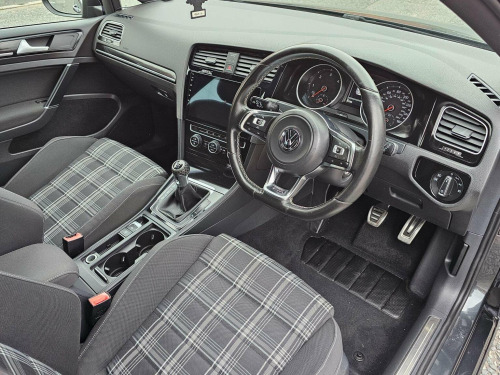THIS GOLF GTD COMES WITH A FULL HISTORY AND CAMBELT DONE @77K MILES. THE CAR IS PRESENTED IN METALLIC GREY WITH GLOSS & SATIN BLACK ACCENTS WITH EXCLUSIVE GTD BUMPERS COMPLEMENTED BY DIAMOND CUT AND BLACK 18 INCH ALLOY WHEELS. THE TRIED AND TESTED 2.0 TDI ENGINE IS RELIABLE, POWERFUL AND ECONOMICAL (68 MPG COMBINED) PLUS BEING CONNECTED TO A MANUAL GEARBOX MAKES THIS AN EASY AND FUN DRIVE AROUND TOWN , ON THE B ROADS AND MAKES FOR RELAXING MOTORWAY CRUISING. THE INTERIOR IS AN UPDATED TAKE ON THE CLASSIC GTI, WITH SPORTY, SUPPORTIVE CLOTH SEATS IN GREY WITH THE GTI PATTERN TO THE SEAT BASES AND BACKRESTS. THE DASHBOARD AND DOORS BENEFIT FROM GREY, GLOSS BLACK AND CHROME HIGHLIGHTS COMPLEMENTED BY THE AMBIENT LIGHTING . FURTHER EQUIPMENT INCLUDES; AUTO DIMMING REAR VIEW MIRROR, LEATHER-TRIMMED MULTI-FUNCTION STEERING WHEEL, A 6.5 COLOUR TOUCH SCREEN COMPOSITION MEDIA SYSTEM GIVING ACCESS TO THE DAB RADIO, SAT NAV, BLUETOOTH AUDIO AND TELEPHONE, MEDIA STREAMING AND MORE. THERE IS ALSO ADAPTIVE CRUISE CONTROL AND BI-XENON GAS DISCHARGE MAIN BEAM HEADLIGHTS WITH LED DAYTIME RUNNING LIGHTS, FRONT & REAR PARKING SENSORS, ILLUMINATED DOOR SILL PROTECTORS AND EVEN MORE YET TO BE DISCOVERED. WE HAVE FULLY INSPECTED AND SERVICED THIS CAR, SO THE ONLY ISSUE FOR ITS NEW OWNER WILL BE WHERE THE NEXT TRIP SHOULD BE. PLEASE CALL 0161 761 3452 (OPTION 2) TO ARRANGE A VIEWING, TO RESERVE THE CAR OR FOR MORE INFORMATION. WHILST EVERY EFFORT HAS BEEN MADE TO ENSURE THAT THE STATED SPECIFICATION IS ACCURATE, PLEASE CHECK WITH A MEMBER OF THE SALES TEAM IF A PARTICULAR SPECIFICATION/FEATURE IS IMPORTANT TO YOU.