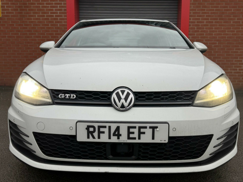 This Volkswagen Golf TDI GTD from 2014 offers a remarkable ownership history, having been looked after by only two owners. It features a powerful 2.0 litre diesel engine, meeting the Euro 6 emission standards. This GTD trim level comes equipped with a range of advanced features designed for comfort and convenience, including Automatic Distance Control with adaptive cruise control, and a two zone electronic climate control system with automatic air recirculation. For enhanced visibility and safety, it boasts Bi-Xenon headlights that automatically activate with the dusk sensor, and front parking sensors to assist with manoeuvring.The performance of this Golf is a key highlight, with an impressive 0-62mph acceleration time of just 7.5 seconds, demonstrating its dynamic capability. Furthermore, the generous boot space ensures practicality for everyday use and longer journeys. These attributes, combined with its well maintained provenance and desirable GTD specification, set this Volkswagen Golf apart from other vehicles in its class., v socket, 12v socket - luggage compartment, 18in alloy wheels - nogaro, 2 zone electronic climate control with automatic air recirculation, abs - anti-lock braking system, adc - automatic distance control, asr - anti slip regulation, air vent surrounds - chrome effect, airbags - curtain front and rear, airbags - driver, airbags - drivers knee, airbags - front passenger, airbags - front passenger with deactivation switch, airbags - front seat side impact, alarm with interior protection, ambient lighting, anti-theft wheel bolts, anti-tramp function for esp, armrest - front centre with ventilation nozzles x2, automatic dimming rear view mirror, automatic post-collision braking system, aux-in socket, bluetooth telephone preparation, body coloured bumpers and door handles, body coloured side sills, body-coloured door mirrors with integrated indicators, brake calipers - grey, brake pad wear indicator, bumpers - front and rear - uniquely shaped, carpet mats - front and rear, central locking - remote with 2 remote keys, child locks in rear doors, chrome air inlets, chrome trimmed front air intake grille surround, city emergency braking system, composition media system, convenience pack, cruise control, cup holders - front and rear, cup holders - front x2, cup holders - rear x2, dab - digital radio reception, dashboard - gloss black panel, daytime running lights - led, differential lock - electronic, door mirrors - electrically adjustable-heated and folding, door mirrors - puddle lights, door mirrors - reverse activated kerb view adjustment on passengers, door panels - cyclone decorative inserts, door sill protectors - illuminated, driver alert system, driver profile choices, dust and pollen filter, esp - electronic stability programme, electric windows - front and rear, electronic engine immobiliser, electronic parking brake with auto hold function, exhaust tailpipes - twin, extended sill strips - flared, first-aid kit and warning triangle - holder only, footwell illumination - front, front assist including city emergency braking, front fog lights - led, front seat back storage pockets, glovebox - illuminated - cooled - lockable, grab handles - front x2 rear x2 with coat hooks, hba - hydraulic brake assist, head restraints - front whiplash optimised, headlight washer system, headlights - bi-xenon - gas discharged, headlights - coming-leaving home function, headlights - dusk sensor - automatic driving lights, headlining - black, height and reach adjustable steering column, high level 3rd brake light - led, isofix child seat preparation for 2 rear seats, instrument lighting - white adjustable panel illumination, interior lighting delay, led rear number plate lights, leather trimmed handbrake grip, lighting dial - chrome look, lights on warning buzzer, load lashing points x4 in luggage compartment, load-through provision, luggage compartment - hooks, luggage compartment cover, luggage compartment light, luggage compartment storage area on right, mdi - multi device interface with usb - ipod connection cables, mirror pack, misfuel prevention device, multifunction colour display, multifunction computer - 3.5in display, multifunction computer - includes visual gear change recommendation, multiple impact brake activation, optical parking display via vehicles audio system, parking sensors - front, parking sensors - rear, pedals - stainless steel, power assisted steering - speed sensitive, pre-crash preventive occupant protection, radar sensor controlled distance monitoring system, radiator grille - black with chrome louvres, radiator grille - chrome outline around the logo, radio & single cd player mp3 compatible, radio aerial integrated into rear windscreen, rain sensor, reading lights - front x2 and rear x2, reading lights front x2 and rear x2 - led, rear centre armrest, rear diffuser - black, rear lights incorporating led technology, rear tail lights - led, roof lining - black, sd card reader, safeguard against incorrect fuel, seatbelt reminder, seats - front lumbar support, seats - front sports, seats - height adjustment - front, seats - rear backrest with automatic folding, service interval display, smoked rear light clusters, spare wheel - space saver steel, speakers x8, specific aluminium inlay, split folding rear backrests 60-40, spoiler - tailgate, static cornering function, steering wheel - 3-spoke - leather trimmed - multifunction with grey stitching, steering wheel - audio controls, storage - cover for area in roof console, storage compartment in centre console covered, storage compartment in front doors, storage compartment in rear doors, storage compartment in roof console, styling pack for gtd, sun visors - vanity mirrors and illuminated, suspension - sports - lowered by approx 15mm, temperature display - external, three rear head restraints, tinted glass - heat insulating rear 65 percent light absorbing from b pillar backwards, traffic sign recognition, tyre pre