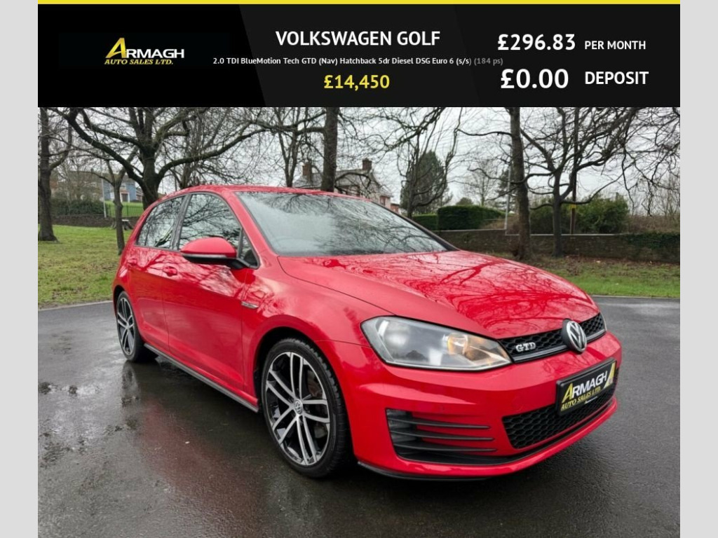 This 2016 Volkswagen Golf 2.0 TDI BlueMotion Tech GTD (Nav) Hatchback 5dr Di Hatchback is currently available for £14,450 in Armagh with Diesel engine and Automatic gearbox. For more information or to arrange a viewing, click here to send us an email using form below.