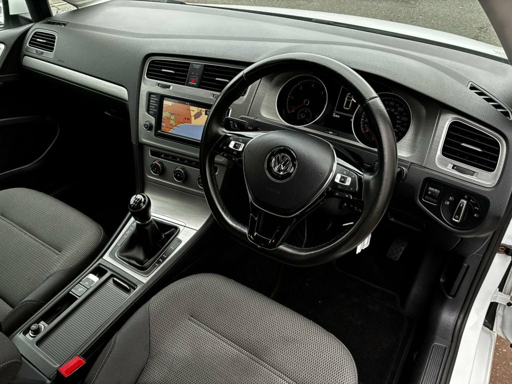 A very rare example of VW's popular Golf Match Tech Edition with the more powerful 150bhp 2.0 litre turbo diesel engine. Finished in beautiful Pure white and upgraded with these gorgeous 19 inch alloys wheels its a superb looking car! This particular car has the been spec'd at the factory to include a winter pack meaning the front seats are heated for your comfort and the headlights have a high pressure wash system removing road dirt and improving night time vision. As standard the Match Tech Edition comes with front and rear parking sensors, multifunction steering wheel, touch screen satellite navigation, Bluetooth connection and adaptive cruise control. The powerful 2.0 litre engine is refined, reliable and fuel efficient and paired with a 6 speed manual gearbox. Supplied by us with a full year MOT this two owner car has only covered 68,000 miles from new and is in fantastic condition both inside and out and because its registered in February 2017 it still benefits from low road tax of just £20 per year. Upgraded 19 inch Alloys shown are optional at £895 or return to originals at no extra cost. Pure White, Winter Pack, 12V Socket - Luggage Compartment, 16in Alloy Wheels - Dover, ABS - Anti-lock Braking System with HBA , Adaptive Cruise Control, Air Conditioning - Manual, Airbags, Alarm, Automatic Coming-Leaving Home Lighting F, Automatic Post-Collision Braking System, Bag Hooks in the Luggage Compartment, Black Front Air Intake and Radiator Gril, Body Coloured Bumpers, Body Coloured Door Handles, Body-Coloured Door Mirrors with Integrat, Brake Pad Wear Indicator, Brushed Dark Silver Decorative Inserts i, Child Security Locks in the Rear Doors, Chrome Plated Air Vent Surrounds, Chrome-Plated Light Switch Surround, Composition Media System, Convenience Pack, Cover for Storage Compart