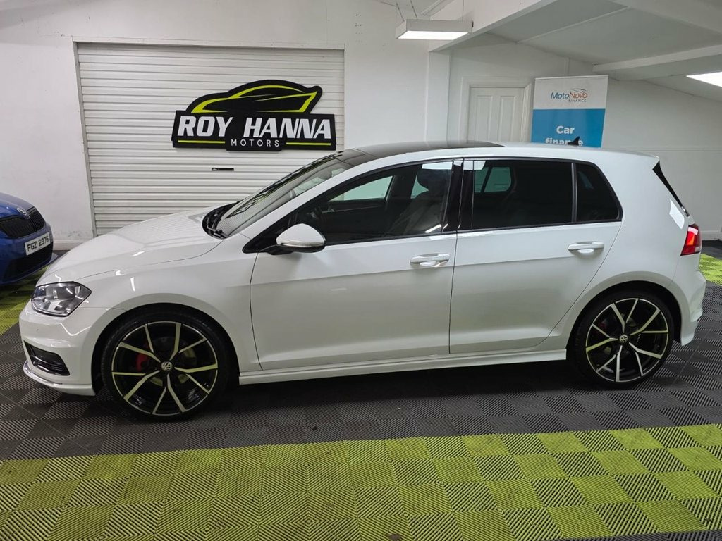 A truly beautiful 2017 Volkswagen Golf R-Line Edition ready for viewing at Roy Hanna Motors! MOT to 17th June 2026. A good service history with records at - ~ 19,921 miles. ~ 39,089 miles. ~ 64,434 miles. ~ 71,809 miles. ~ 84,084 miles. This car will be fully serviced and have a full multi point pre-delivery check for its new owner. *Brand new alloy wheels shown in pictures are an optional extra* * We have a variety of wheels to chose from for each vehicle* Packed full of factory extras like - ~ 8" touch screen. ~ Composition media system. ~ Apple or Android smartphone compatibility. ~ Adaptive cruise control. ~ Multifunction computer. ~ Misfuelling protection device. ~ Rear tinted windows. ~ Front assistant collision mitigation. ~ Automatic Distance Control with Front and Rear Assist. ~ Driver alert system. ~ Bluetooth Telephone preparation. ~ Instrument cluster in white. ~ TFT display screen. ~ DAB digital radio. ~ Daytime running lights. ~ Rain sensor. ~ Isofix. ~ Automatic headlights. ~ Lowered sports suspension ~ Cruise, Climate and traction controls. ~ Steering wheel mounted controls. ~ AUX & USB connectivity. ~ CD/DAB Radio Player. ~ Body Coloured Bumpers. ~ Electric windows. *We Have Many Different Finance HP & PCP Deals Available To Suit Your Budget, You Can Drive Away In Your New Car With £0 Deposit & Pay Nothing For 2 Full Months! *For A Personalised Quote Give Us A PM / Text / Call Or Propose Yourself For Finance On Our Website *All 12V Socket - Luggage Compartment, 18in Alloy Wheels - Marseille, ABS - Anti-lock Braking System with HBA , Adaptive Cruise Control, Air Conditioning - Manual, Airbags, Alarm, Ambient Lighting - White, Ambient Lighting Pack, Automatic Coming-Leaving Home Lighting F, Automatic Post-Collision Braking System, Bag Hooks in the Luggage Compartment, Black Lead Grey Decorative Inserts in Da, Black Rooflining, Body Coloured Bumpers, Body Coloured Door Handles, Body-Coloured Door Mirrors with Integrat, Body-Coloured Roof Spoiler - Rear, Brake Pad Wear Indicator, Carpet Mats, Cherry Red Rear Light Clusters, Child Security Locks in the Rear Doors, Chrome Plated Air Vent Surrounds, Chrome Plated Electric