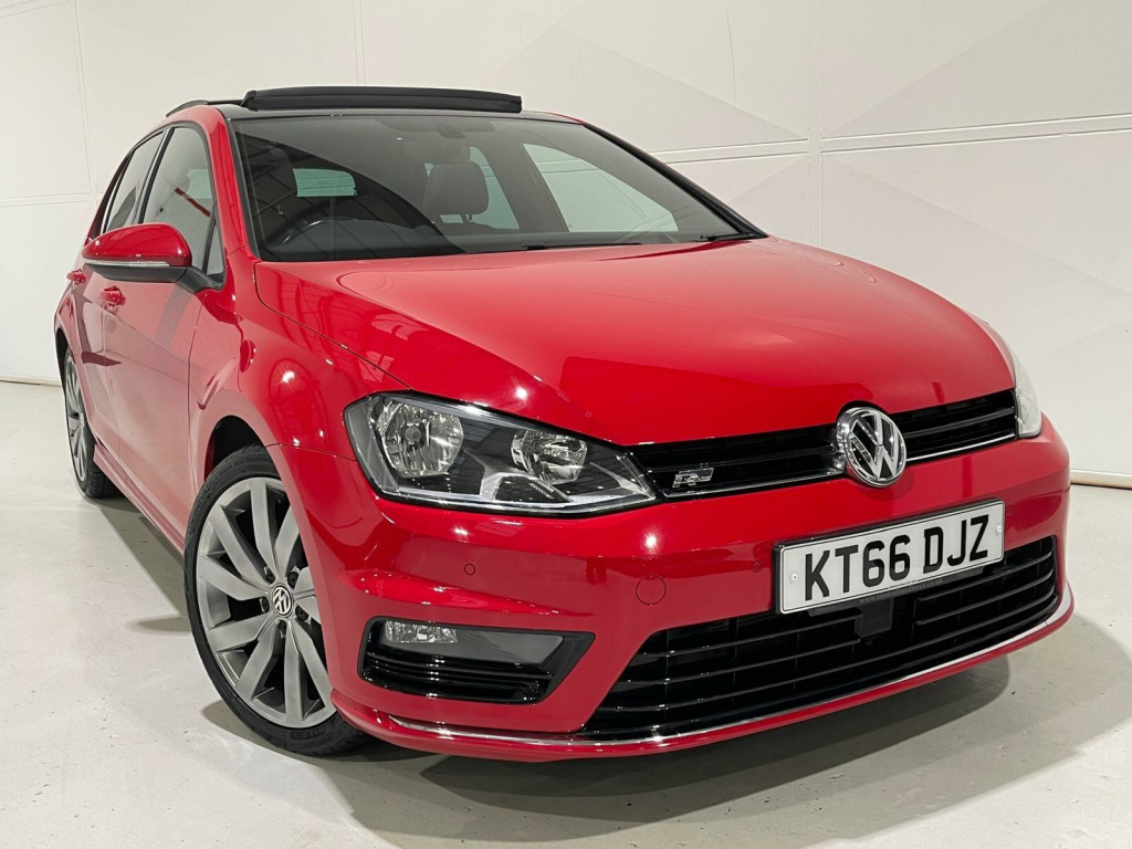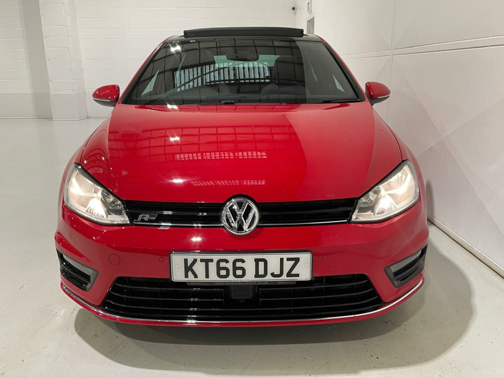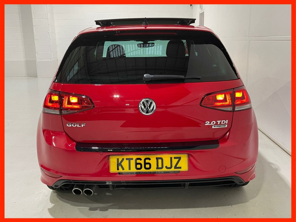 FINANCE & PART EXCHANGE AVAILABLE* - Only 2 registered keepers & 38,605 miles from new, SERVICE HISTORY, 2 KEYS - this FANTASTIC SPECIFICATION VOLKSWAGEN GOLF 2.0 TDI BLUEMOTION TECH R-LINE EDITION AUTOMATIC WITH FULL GLASS PANORAMIC SUNROOF is finished in stunning sports red & is complimented with contrasting 1/2 grey alcantara sports trim and extends itself to the following additional features - VW R-Line Edition Sports styling, full electric tilt & sliding glass panoramic sunroof, on board satellite navigation system, air conditioning, trip computer, adaptive cruise control, leather trimmed multi function steering wheel with paddle shift, front & rear park distance control, Bluetooth telephone prep, DAB digital radio, media input, App Connect - Apple CarPlay / Android Auto / Mirror Link, CarNet, start / stop, drive mode select, driver alert system, privacy glass, lumbar support, front assist, proactive passenger protection, electric folding & heated exterior mirrors, auto headlights, rain sensor, power assisted steering, abs, airbags, electric mirrors, electric windows, remote central locking, head restraints, VW 18'' sports alloy wheels, VW anti theft system. ***FINANCE AVAILABLE - subject to status. T&C's apply.***PART EXCHANGE AVAILABLE***ALL VEHICLES ARE HPI & NATIONAL MILEAGE REGISTER CHECKED***THE AA WARRANTY IS SUBJECT TO TERMS & CONDITIONS AND DOES NOT COVER VEHICLES THAT ARE BEING USED FOR TAXI, PRIVATE HIRE, CHAUFFEURING PURPOSES OR FOR REWARD.***Please note, that the specifications/components/features etc. are generic to that vehicle of the type advertised but may not be included in the specific vehicle that is for sale. It is for the intended purchaser to satisfy themselves of the presence or absence of any specifications/components/features before sale. Please ask if you are uncertain of anything and we will see if we can assist.. 12V Socket - Luggage Compartment, 18in Alloy Wheels - Serron, ABS - Anti-Lock Braking System, ASR - Anti Slip Regulation, Air Conditioning - Manual, Air Vent Surrounds - Chrome Effect, Airbags - Curtain Front, Airbags - Curtain Rear, Airbags - Driver, Airbags - Drivers Knee, Airbags - Front Passenger, Airbags - Front Passenger with Deactivation Switch, Airbags - Front Seat Side Impact, Alarm with Interior Protection, Ambient Lighting - White, Ambient Lighting Pack, Anti-Theft Wheel Bolts, Armrest - Front Centre with Storage Compartment, Automatic Dimming Rear View Mirror, Automatic Post-Collision Braking System, Bluetooth Audio Connection, Bluetooth Telephone Preparation, Body Coloured Bumpers, Body Coloured Door Handles, Body Coloured Rear Spoiler, Body-Coloured Door Mirrors with Integrated Indicators, Brake Pad Wear Indicator, Branded Points of Interest for Sat Nav, Bumpers - R-Line Design, Car Information Display, Car-Net Guide and Inform, Car-Net Guide and Inform (3 Year Subscription From New), Carpet - Black, Carpet Mats - Front and Rear, Central Locking - Remote with 2 Remote Keys, Centre Console - Gloss Black Decorative Inserts, Cherry Red Rear Light Clusters, Child Locks in Rear Doors, Chrome Plated Electric Mirror Adjustment Switch Surround, Chrome Plated Electric Window Button Surrounds, Chrome Trimmed Front Air Intake Grille Surround, Chrome-Plated Light Switch Surround, Colour Touch Screen - 6.5in, Composition Media System, Convenience Pack, Cruise Control - Adaptive, Cup Holders - Front x2, Cup Holders - Rear Armrest x2, DAB - Digital Radio Reception, Dashboard - Black Lead Grey Decorative Inserts, Daytime Running Lights, Discover Navigation Touch-Screen Navigation Radio System, Door Mirrors - Electrically Adjustable-Heated and Folding, Door Mirrors - Puddle Lights, Door Mirrors - Reverse Activated Kerb View Adjustment on Passengers, Door Panels - Black Lead Grey Decorative Inserts, Driver Alert System, Driver Profile Selection, Dust and Pollen Filter, ESP - Electronic Stability Programme, Electric Windows - Front and Rear, Electronic Engine Immobiliser, Electronic Parking Brake with Auto Hold Function, European Mapping Data, Exhaust Tailpipes - Chrome Twin, First-Aid Kit and Warning Triangle - Holder Only, Footwell Illumination - Front x2, Front Assist including City Emergency Braking, Front Fog Lights with Cornering Lights, Front Seat Back Storage Pockets, Gear Shift Indicator, Glovebox - Illuminated - Cooled - Lockable, Grab Handles - Front x2 Rear x2 with Coat Hooks, HBA - Hydraulic Brake Assist, Head Restraints - Front Whiplash Optimised, Head Restraints - Front with R-Line Logo, Headlight Range Adjustment, Headlights - Coming-Leaving Home Function, Headlights - Dusk Sensor - Automatic Driving Lights, Headlights - Halogen Clear - Range Adjustable, Heated Rear Windscreen, Height and Reach Adjustable Steering Column, Height-Adjustable Front Three-Point Seat Belts with Tensioners, High Level 3rd Brake Light - LED, ISOFIX Child Seat Preparation for 2 Rear Seats, Instrument Lighting - White Adjustable Panel Illumination, Interior Lighting Delay, Keys - Folding x 2, LED Rear Number Plate Lights, Leather Trimmed Gear Knob, Light Strips Below Trim in Front Doors, Lights in Front Door Armrests, Lights on Warning Buzzer, Load Lashing Points x4 in Luggage Compartment, Load-Through Provision, Load-through Provision Converts to Table Function, Luggage Compartment - Hooks, Luggage Compartment Cover, Luggage Compartment Light, Luggage Compartment Storage Area on Right, MDI - Multi Device Interface with USB - iPod Connection Cables, Map View - 2D and 3D, Mirror Pack, Misfuel Prevention Device, Multifunction Computer - 3.5in Display, Optical Parking Display via Vehicles Audio System, Panoramic Sunroof, Parking Sensors - Front and Rear, Parking Sensors - Rear, Pedals - Stainless Steel, Power Assisted Steering - Speed Sensitive, Pre-Crash Preventive Occupant Protection, R-Line Exterior Badge, Radar Sensor Controlled Distance Mo.